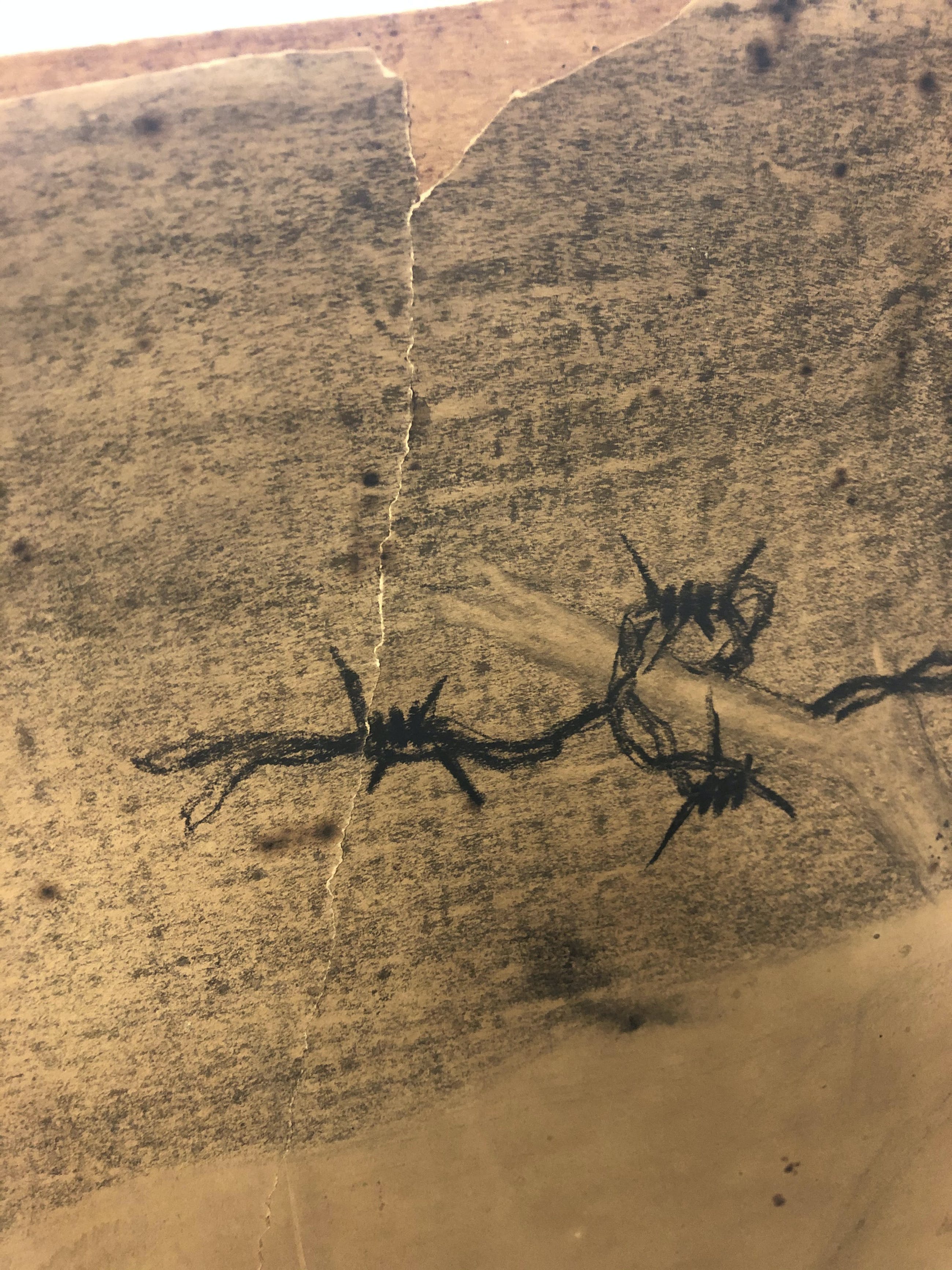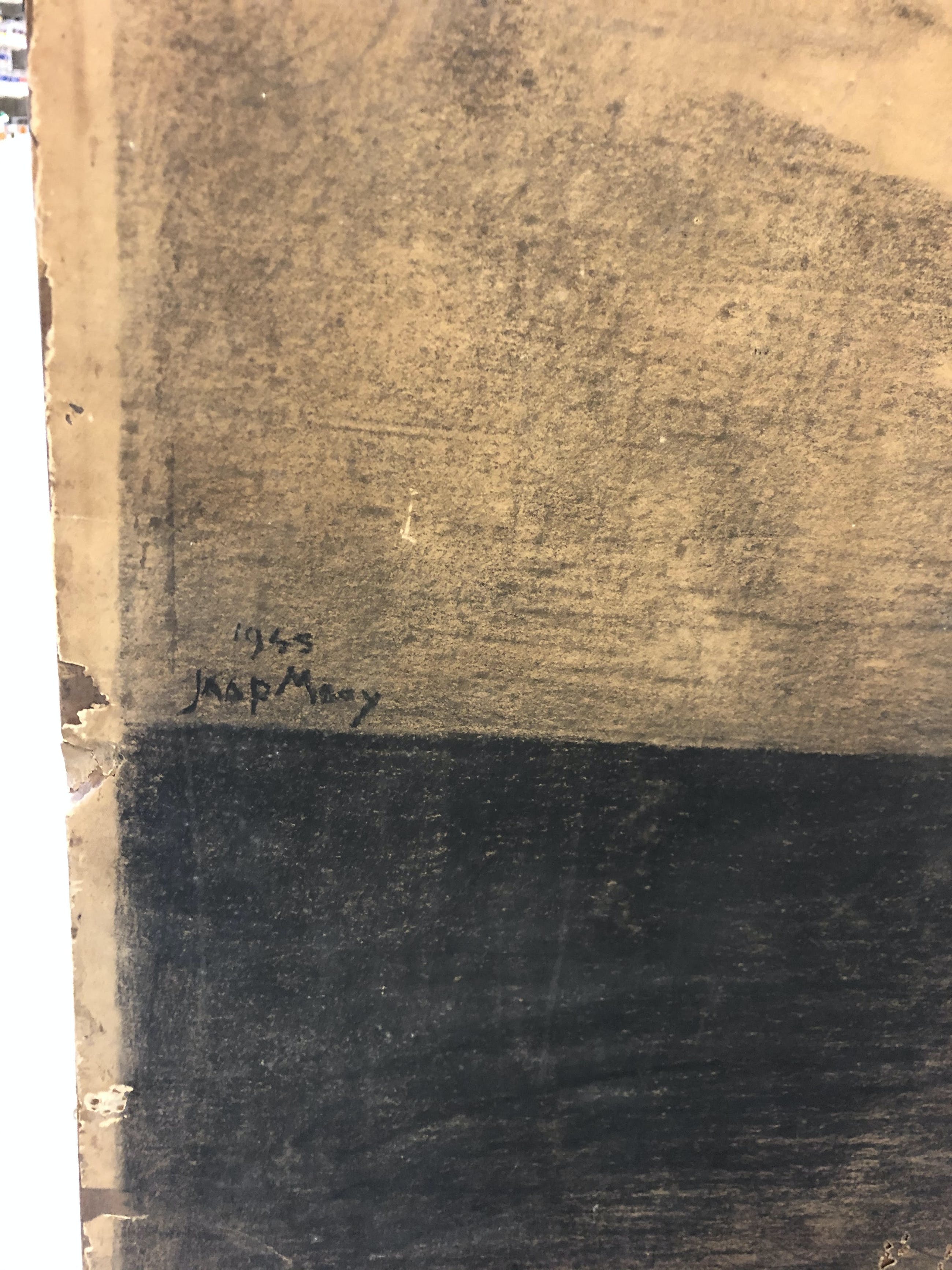 Het is een unieke houtskool tekening uit begin periode van Jaap Mooy. De oorlog speelt een belangrijke rol en de invloed van Charley Toorop . Zijn vroege tekeningen geven de ellende van de bezettingstijd weer. De dode gespleten boomstronk . prikkeldraad en een naakte vrouw met twee hoofden symboliseerden het nieuwe leven . Zie ook blz 283 Noord west /jaap Mooy /Zuid west en het boek Jaap Mooy blz 13