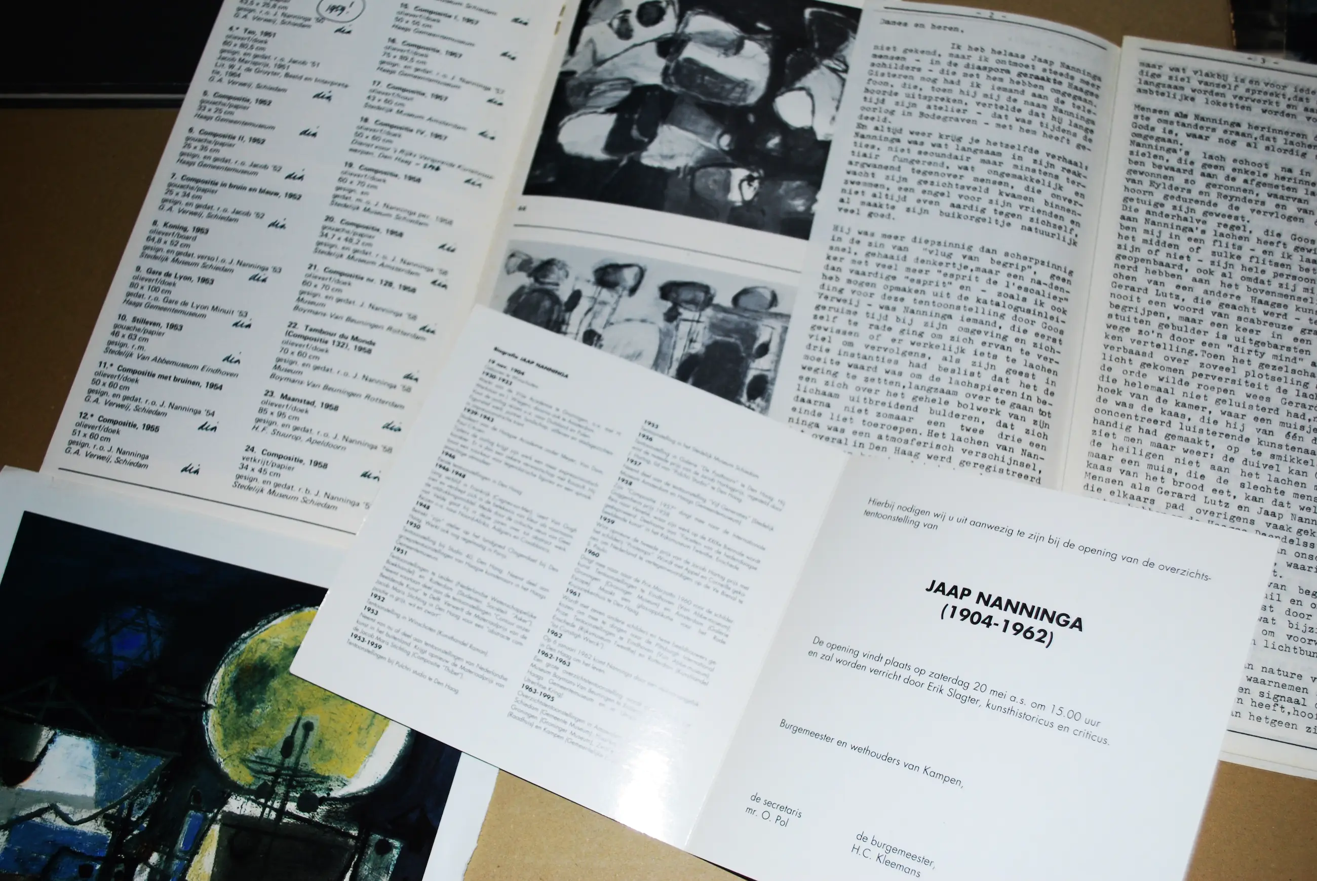 - Uitgave t g v de overzichtstentoonstelling Gemeentemuseum Den Haag. Hardcover met omslag. - Franse uitgave Meulenhoff 1964 (naam voorin). - Cat. uitgave de Librije 1977. Met uitgetypte openingsrede. Staat vol met pers. aantekeningen in pen. - Cat. Haags Gemeentemuseum 1958. Uitklapbaar glanspapier. - Uitnodigingskaart Tent. 1995 Kampen & losse A4 met afbeelding.