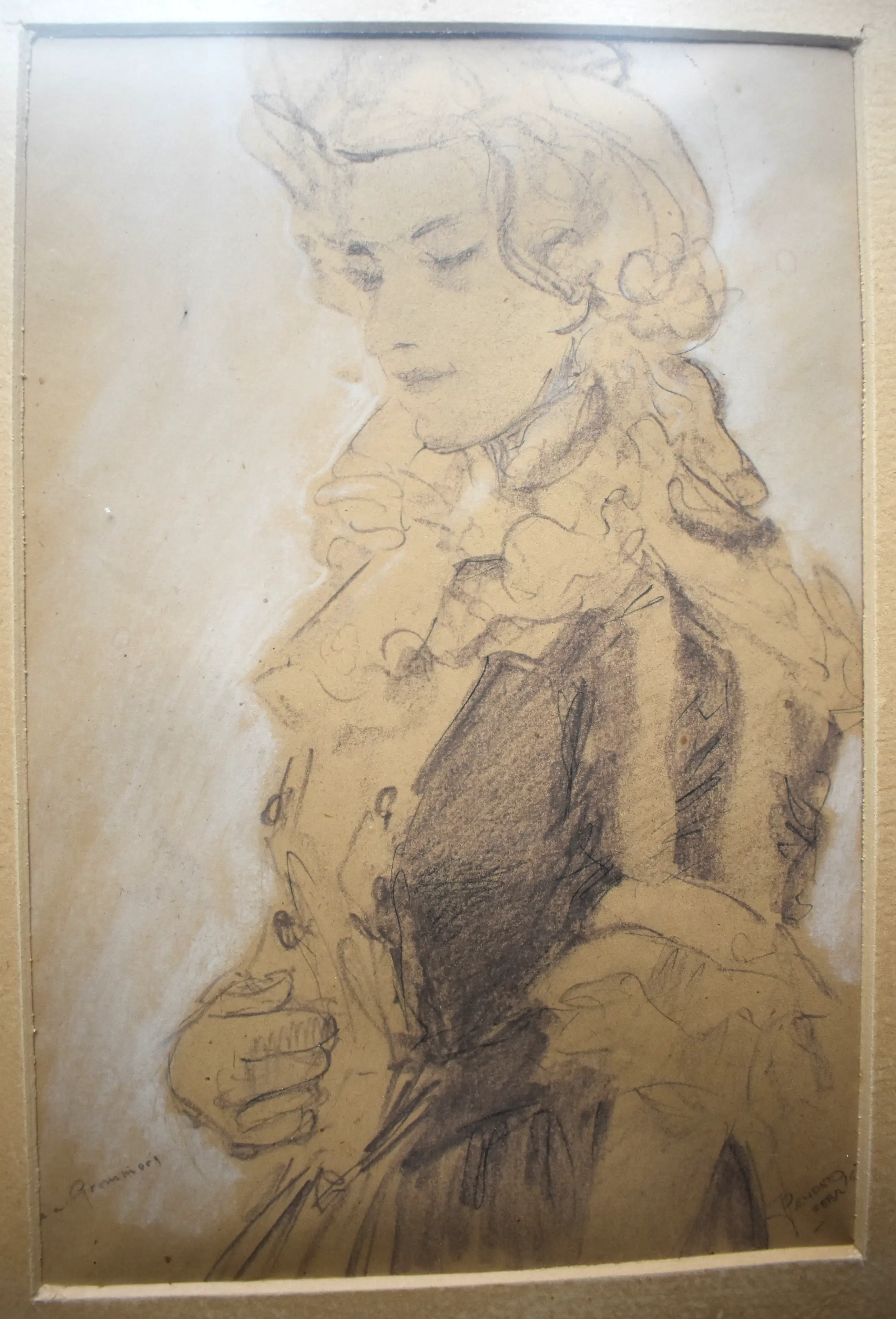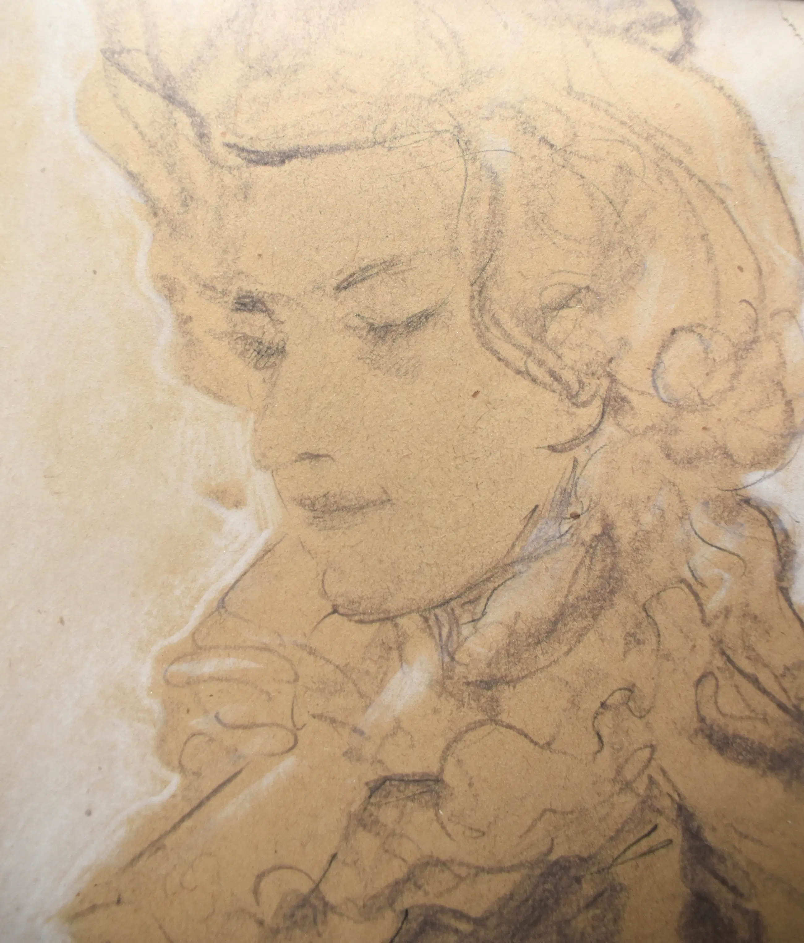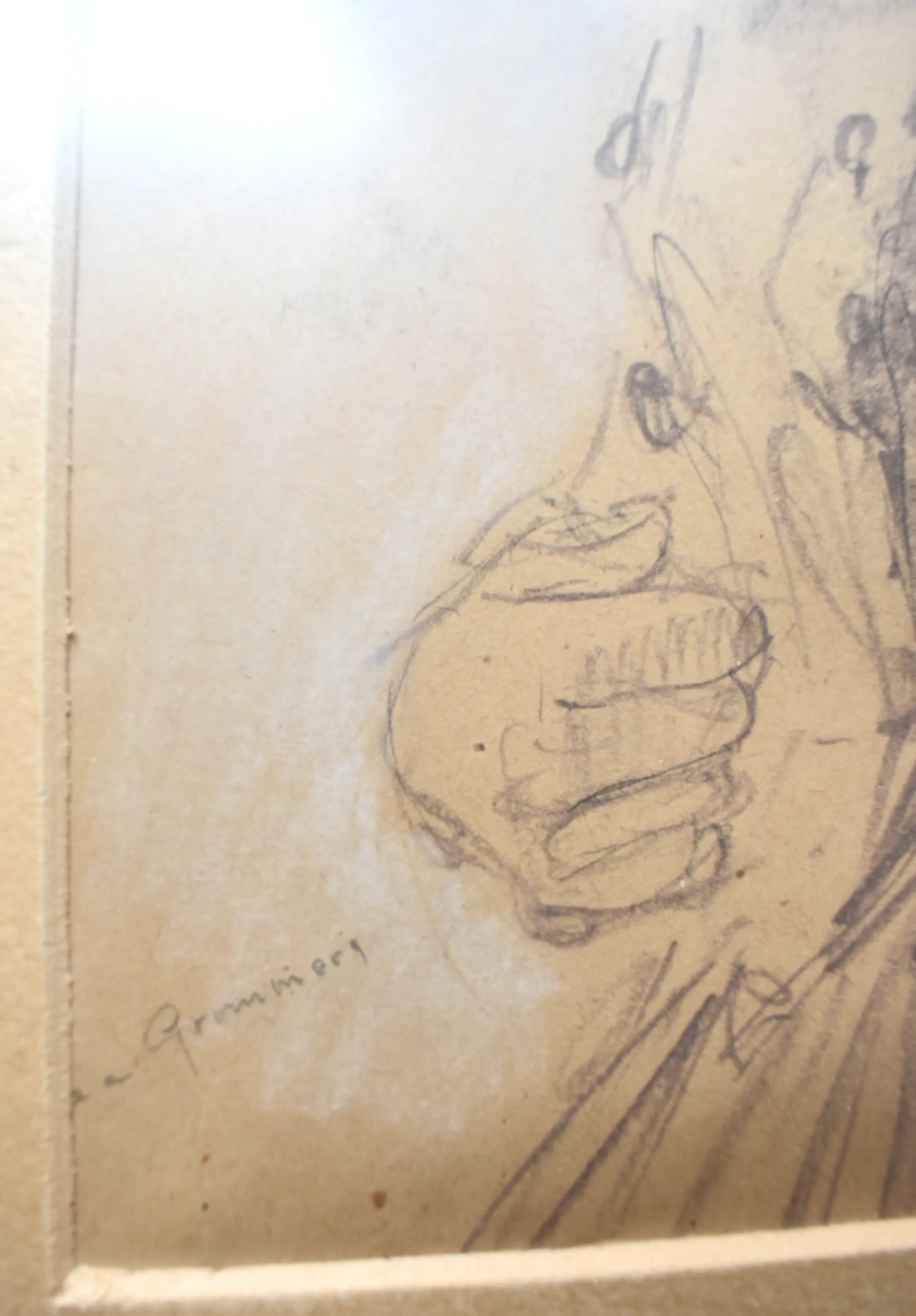 Jaap Pander, geboren in Tietjerksteradeel in 1911 verbleef het belangrijkste deel van zijn artistieke tijd in Haarlem. Hij was lid van "Kunst zij ons doel" en werkkte met meerdere Haarlemse kunstenaars samen. Hij ontwierp o.a. postzegels, reclame objecten en affiches. Ook tekende hij vele portretten. In dit geval van Lia( Ria?) Grommers. De tekening in potlood-krijt, vertoont rechtsboven en linksonder een miniem scheurtje.