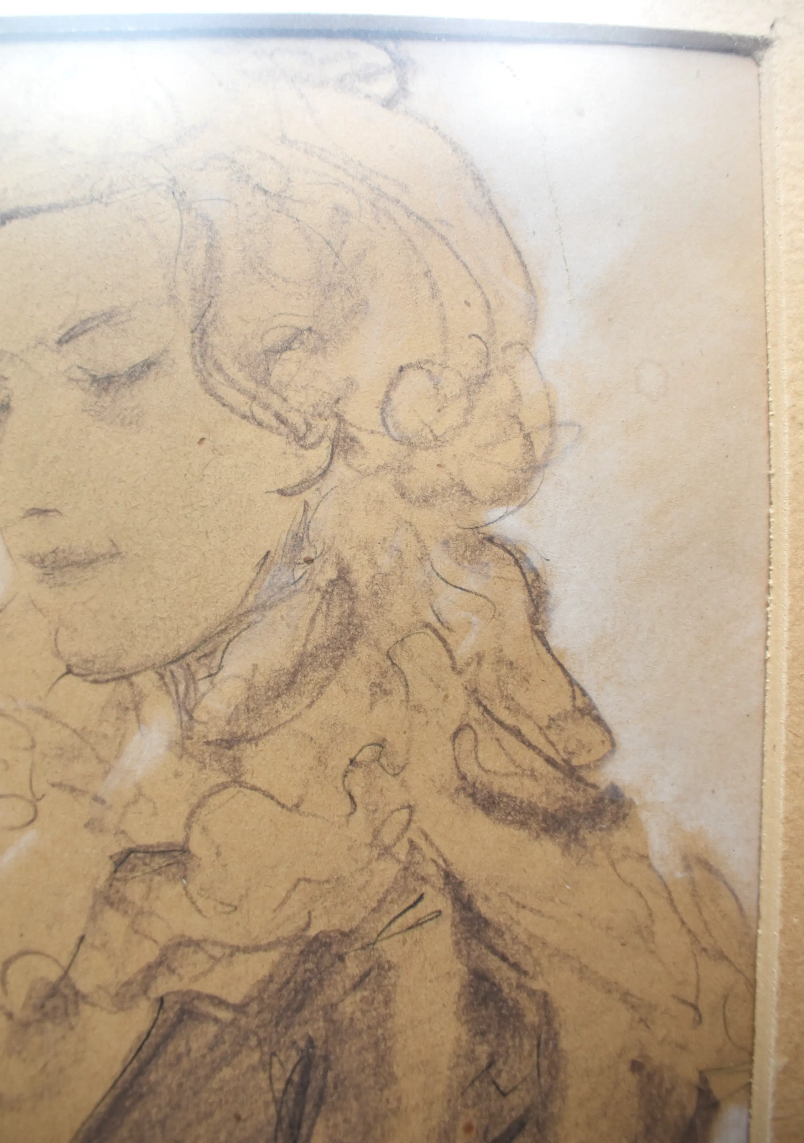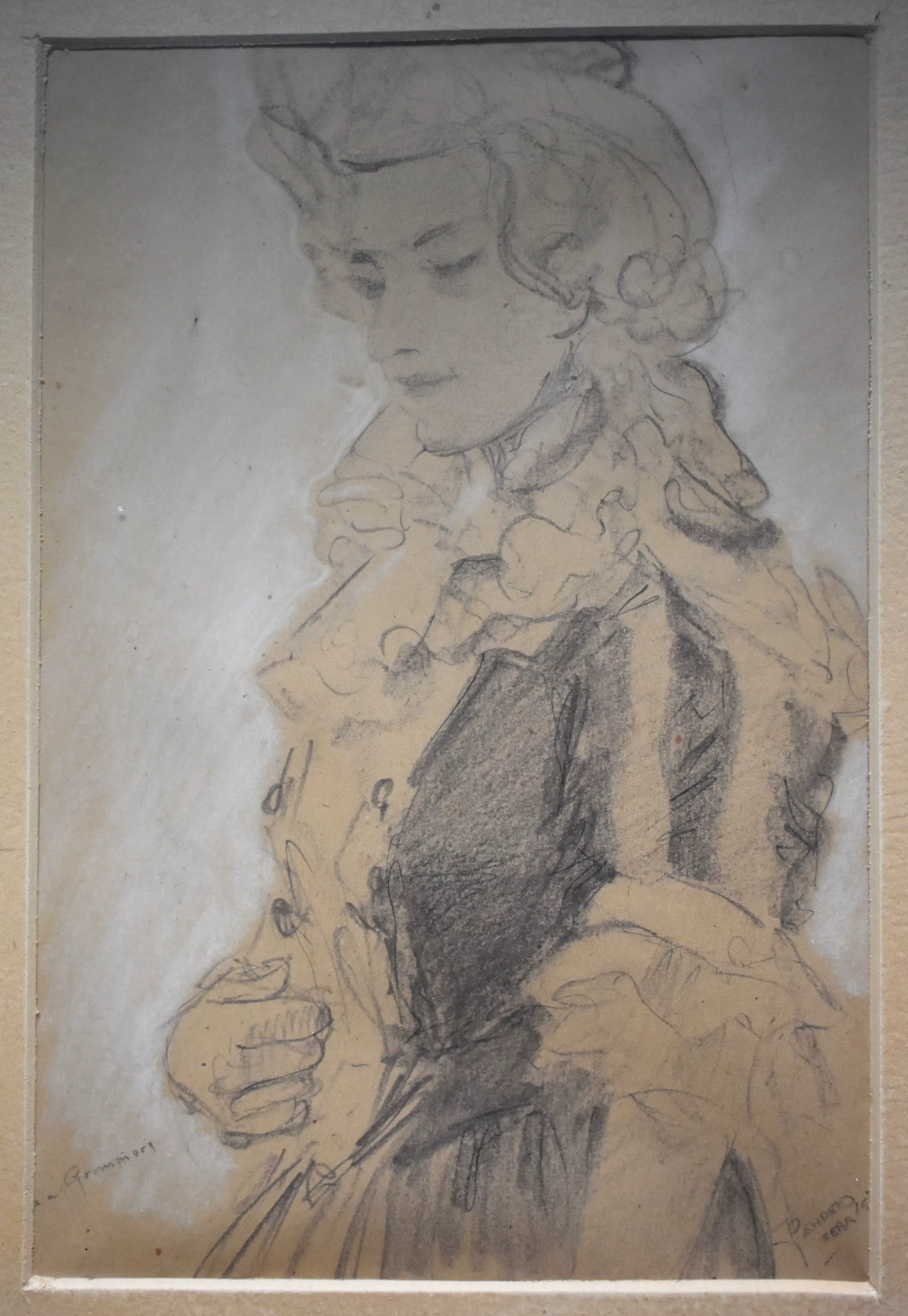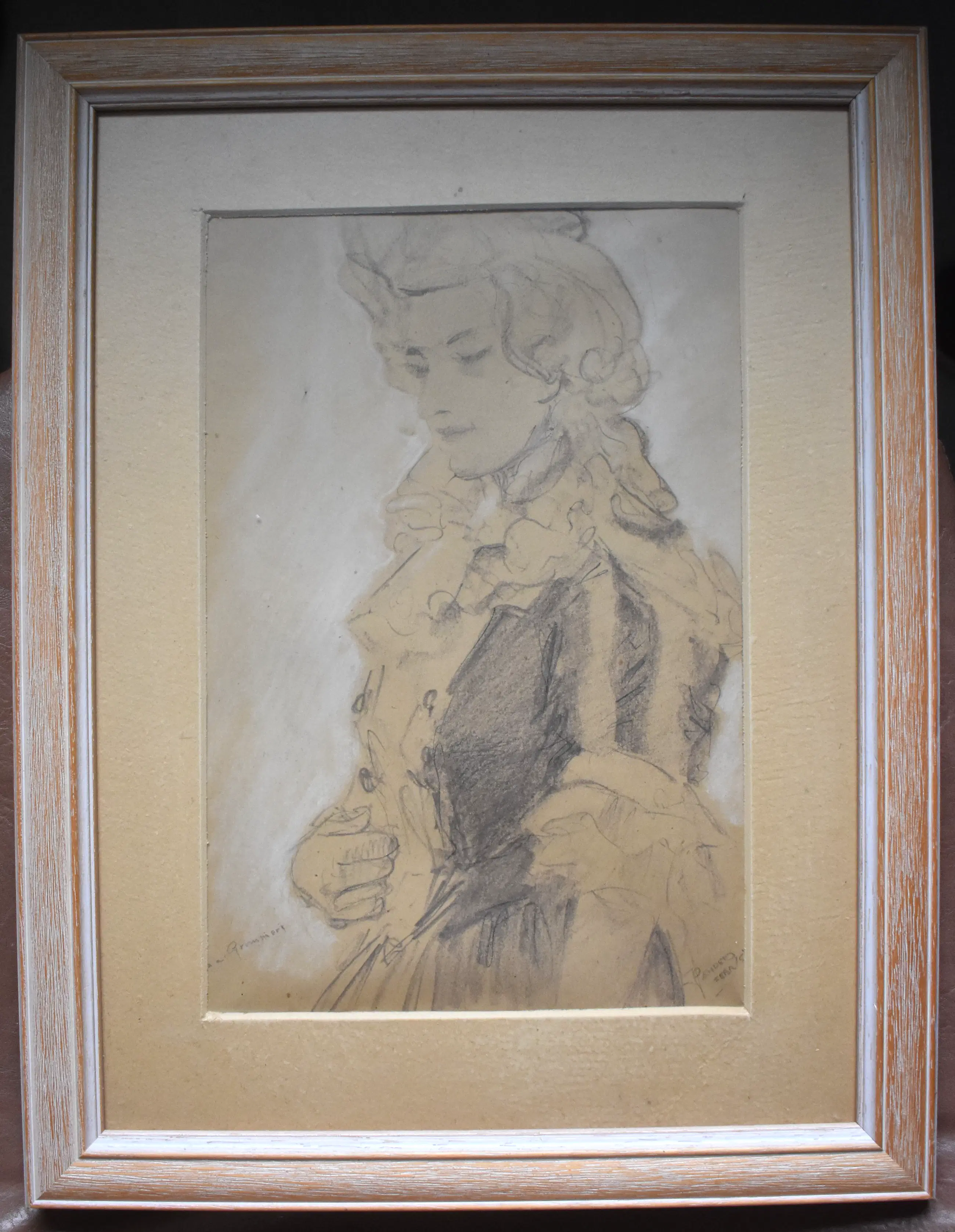 Jaap Pander, geboren in Tietjerksteradeel in 1911 verbleef het belangrijkste deel van zijn artistieke tijd in Haarlem. Hij was lid van "Kunst zij ons doel" en werkkte met meerdere Haarlemse kunstenaars samen. Hij ontwierp o.a. postzegels, reclame objecten en affiches. Ook tekende hij vele portretten. In dit geval van Lia( Ria?) Grommers. De tekening in potlood-krijt, vertoont rechtsboven en linksonder een miniem scheurtje.