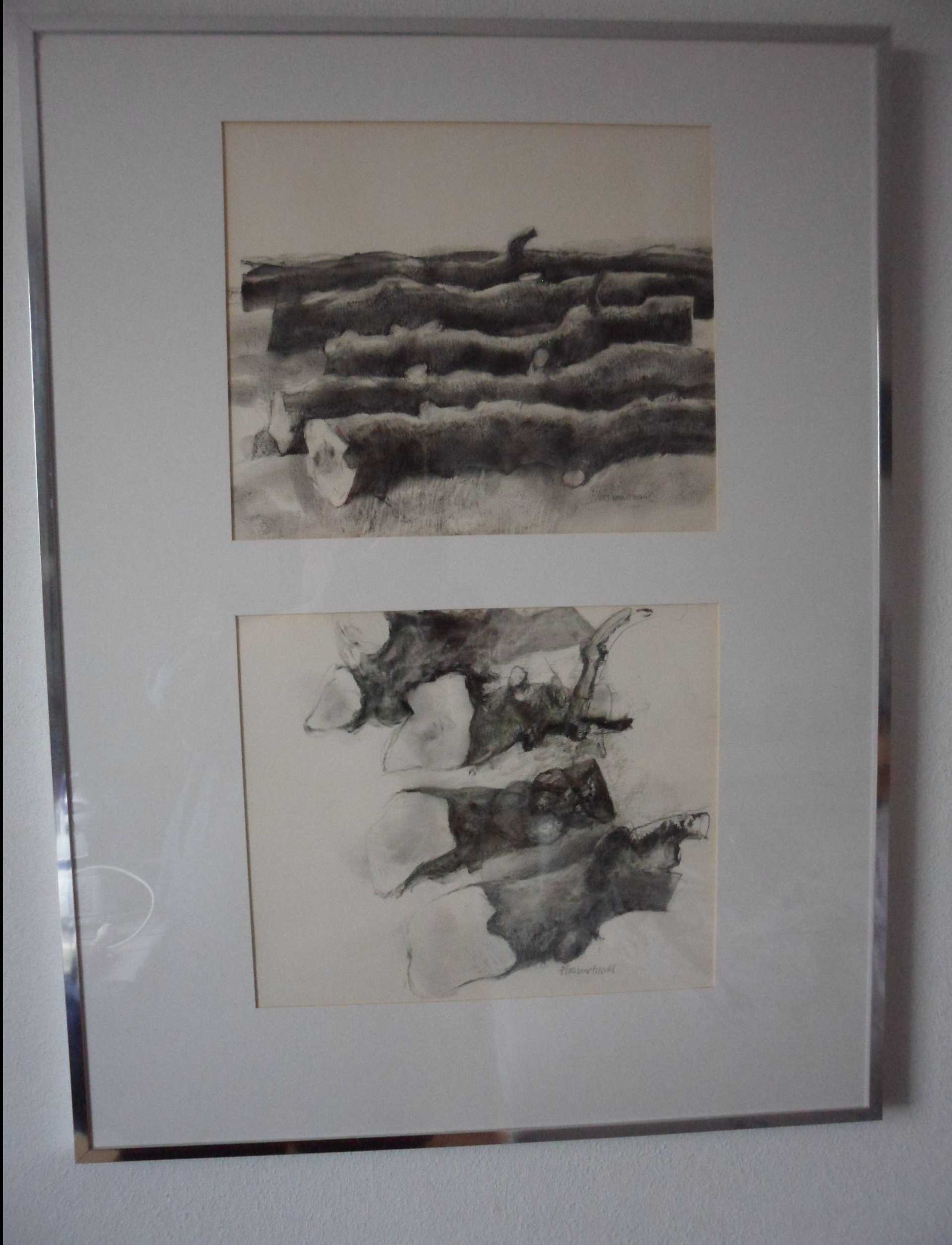 zwart-wittekeningen (in gemengde techniek) en aquarellen van