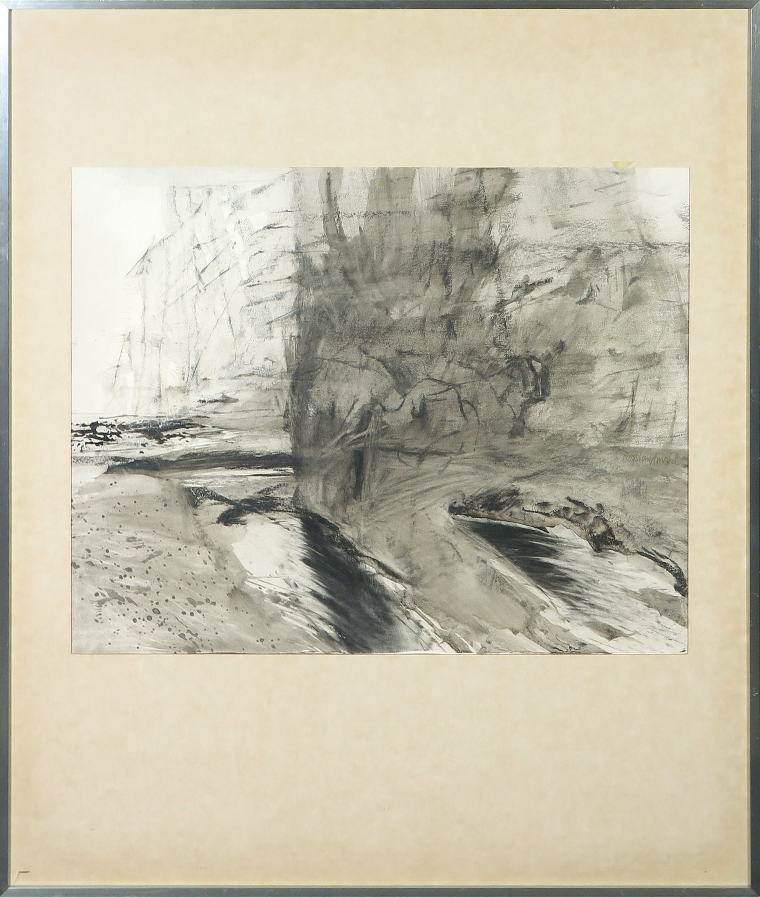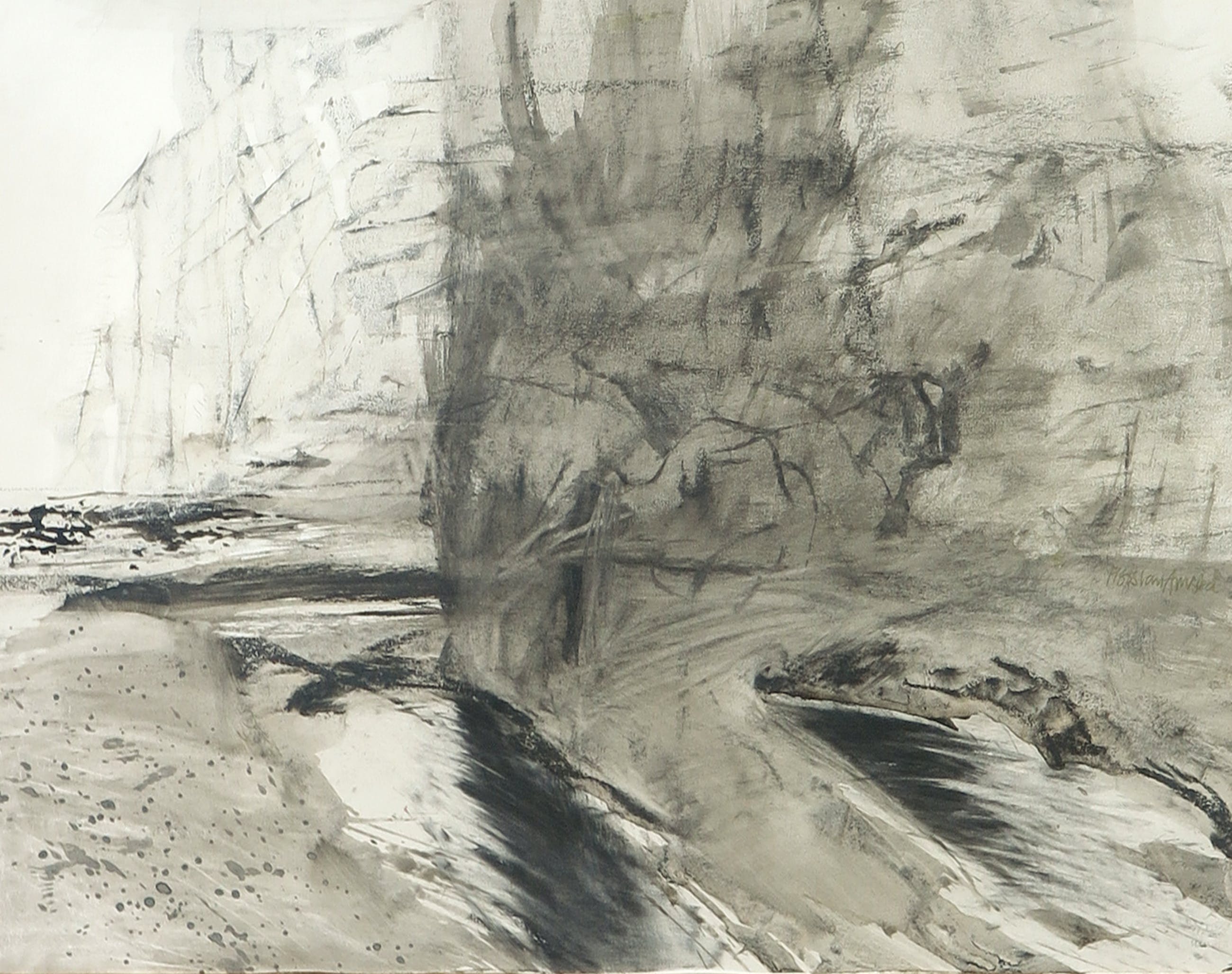 Gemengde techniek: krijt/houtskool en aquarel op papier.