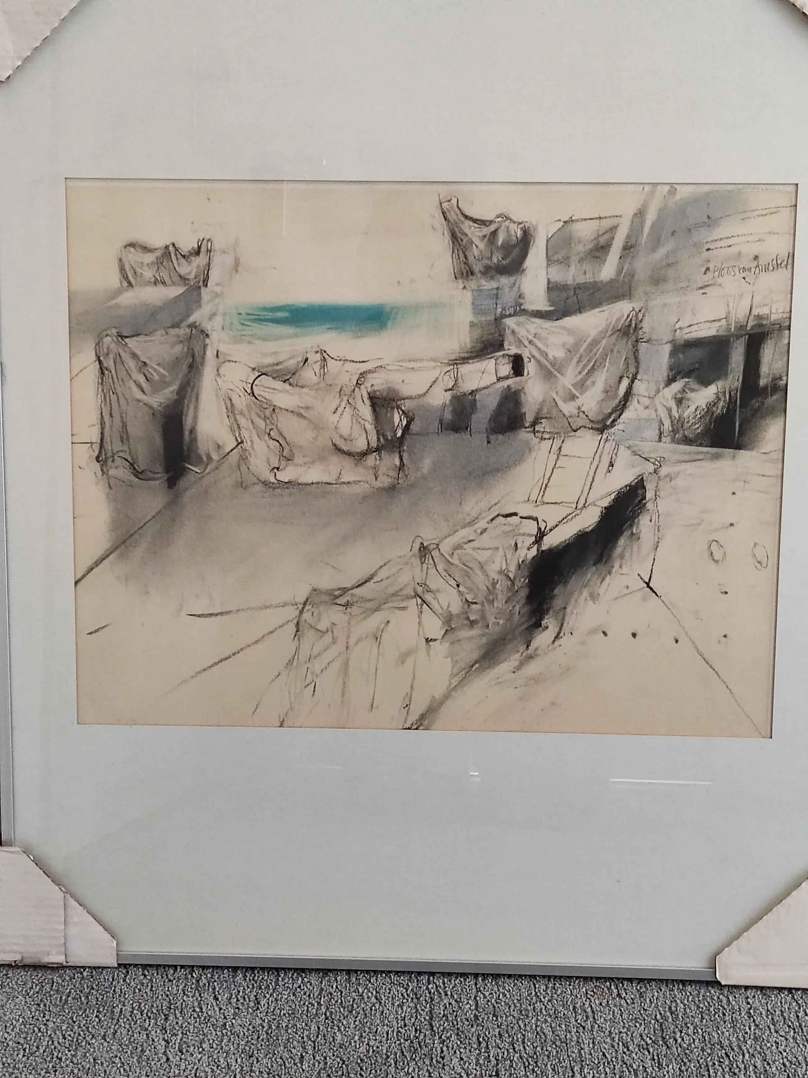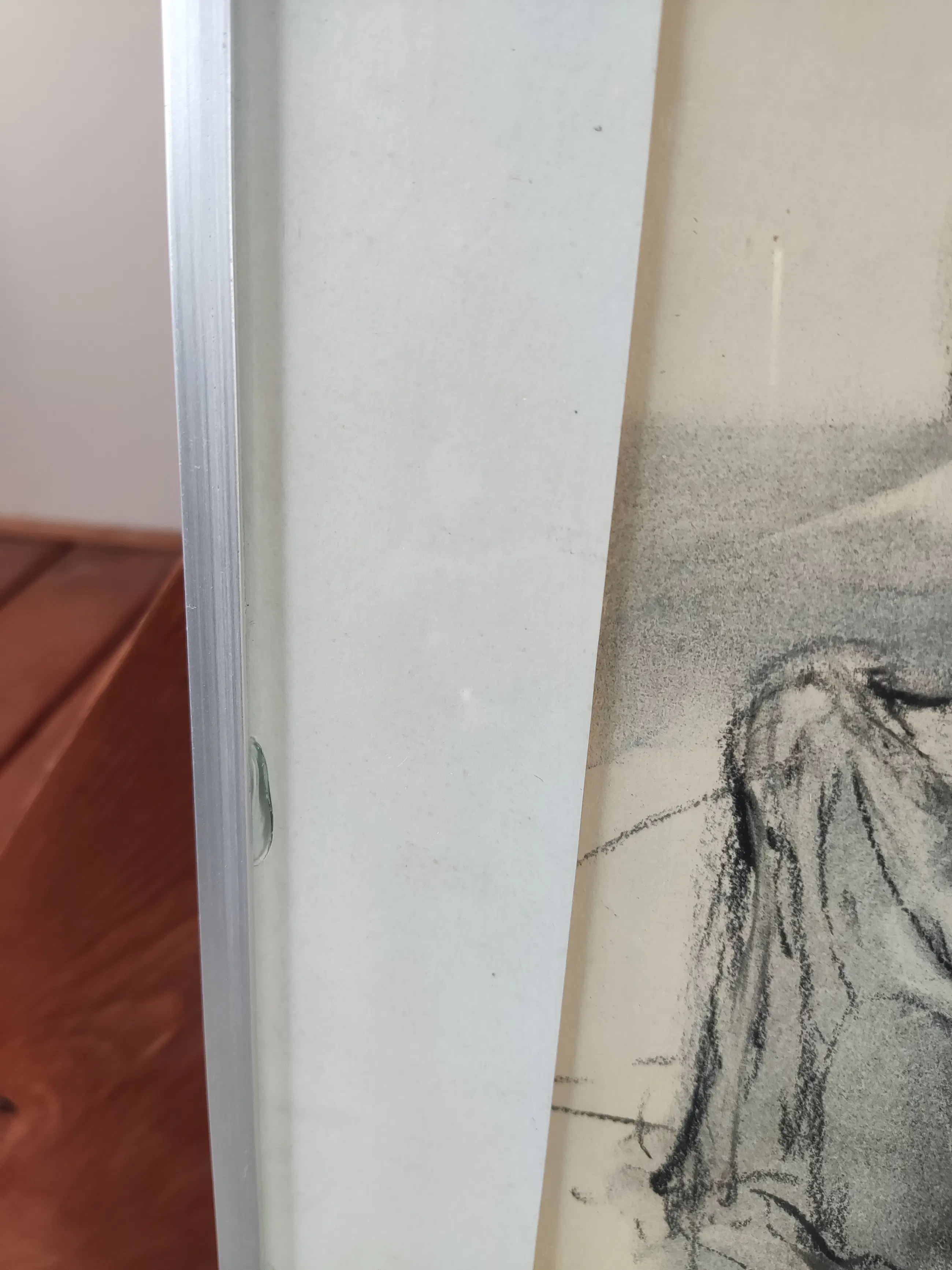 Artwork is ingelijst maar kleine beschadeging aan glas (foto 4). Lijst kan evt. wel gratis meegeleverd worden.