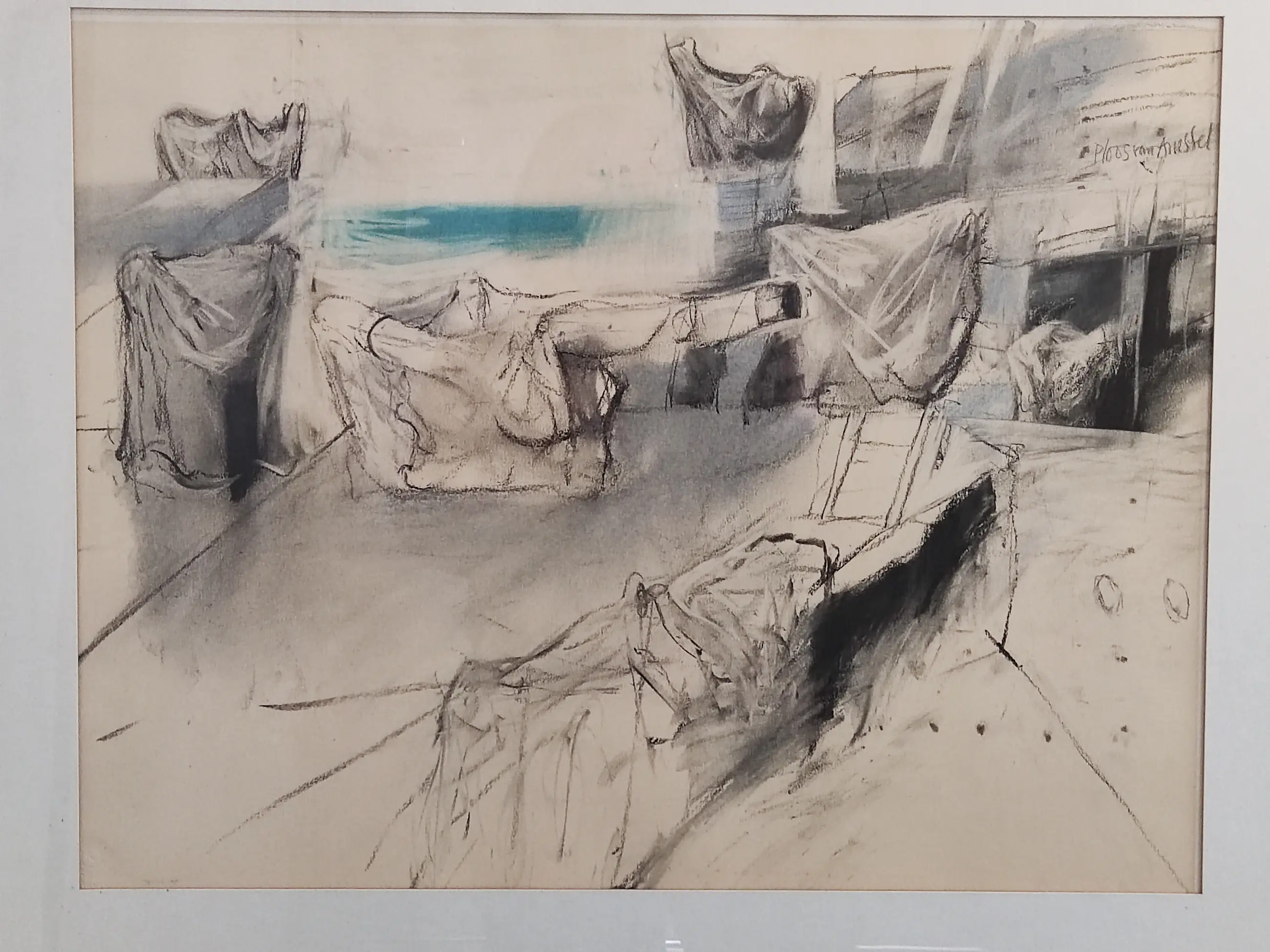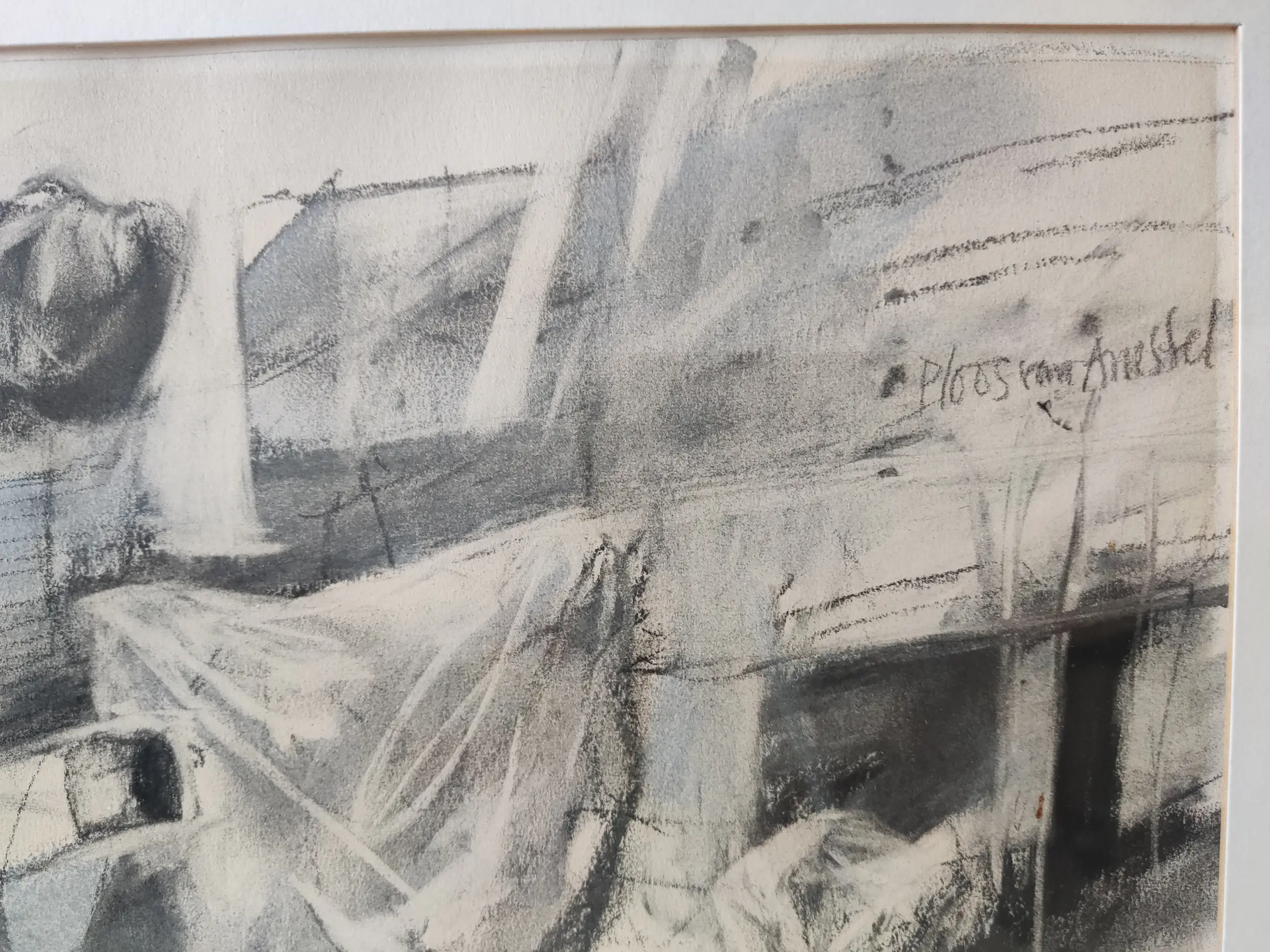 Jaap Ploos van Amstel - Jaren 60 gemengde techniek - "Ingepakt geschut" - gesigneerd