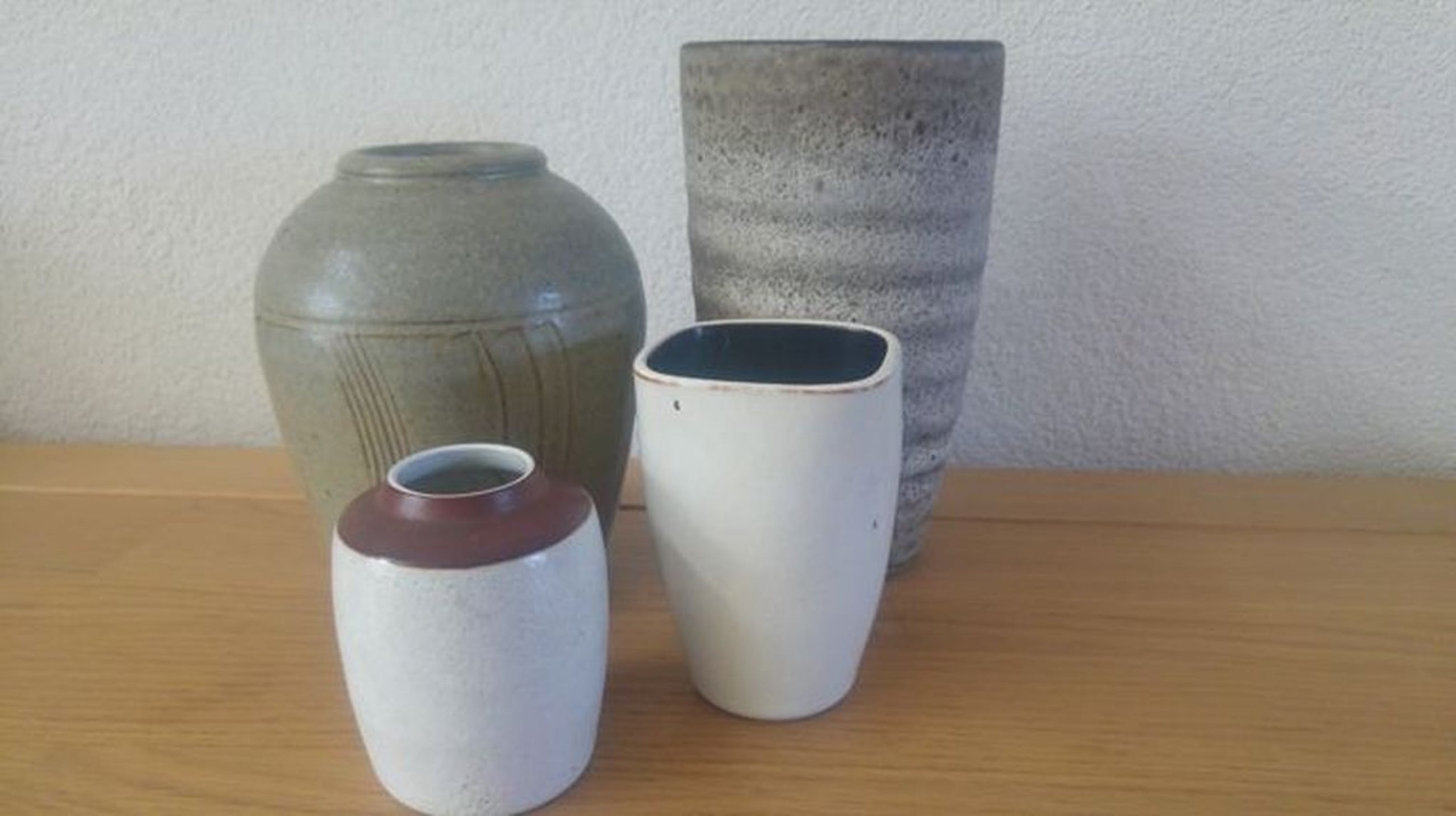 4 aardewerk vazen door Jaap Ravelli, gemaakt in de fabriek in Valkenburg (in de buurt van Leiden).