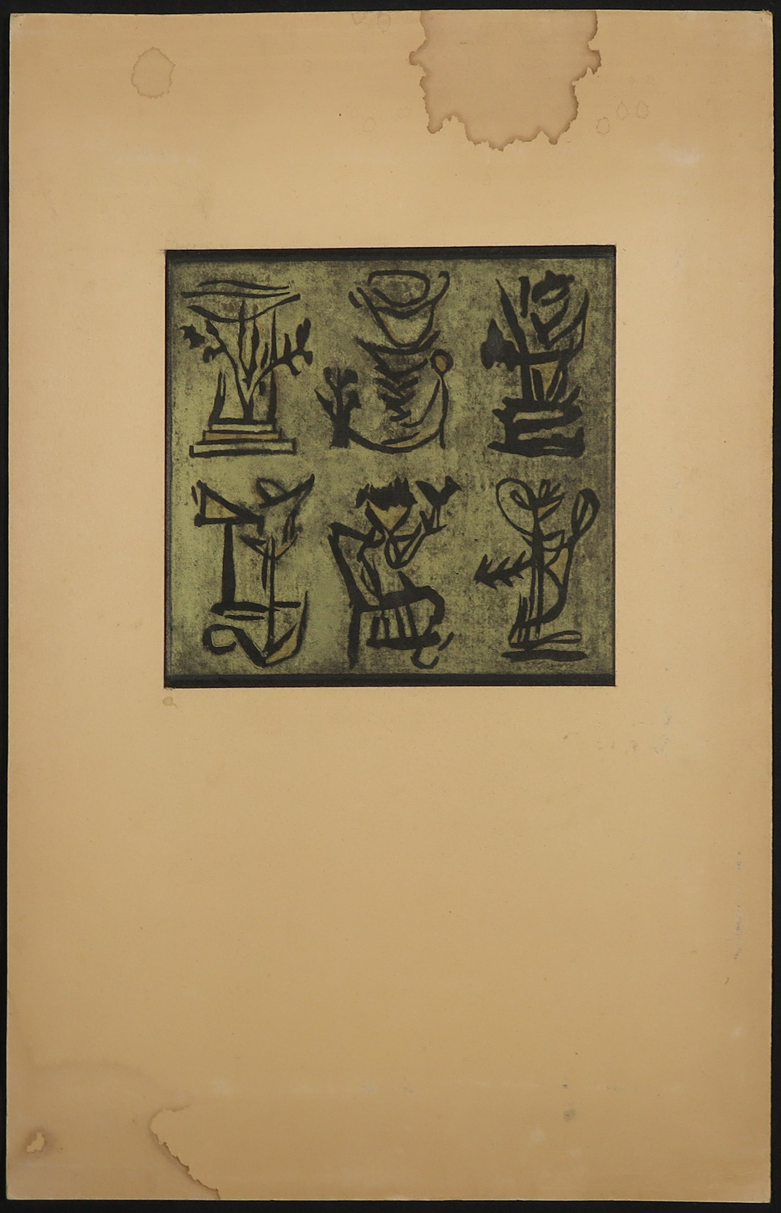 | Wat verkleuring en vouwtjes in de bladen, passe-partouts verkleurd en wat vlekken. | |||