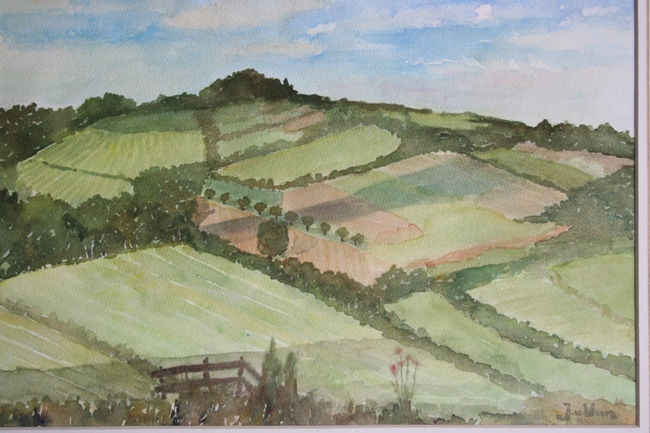 Deze aquarel is voorzien van een passe partout. Afbeelding is 44 x 30 cm. Met passe-partout 60 x 50 cm.