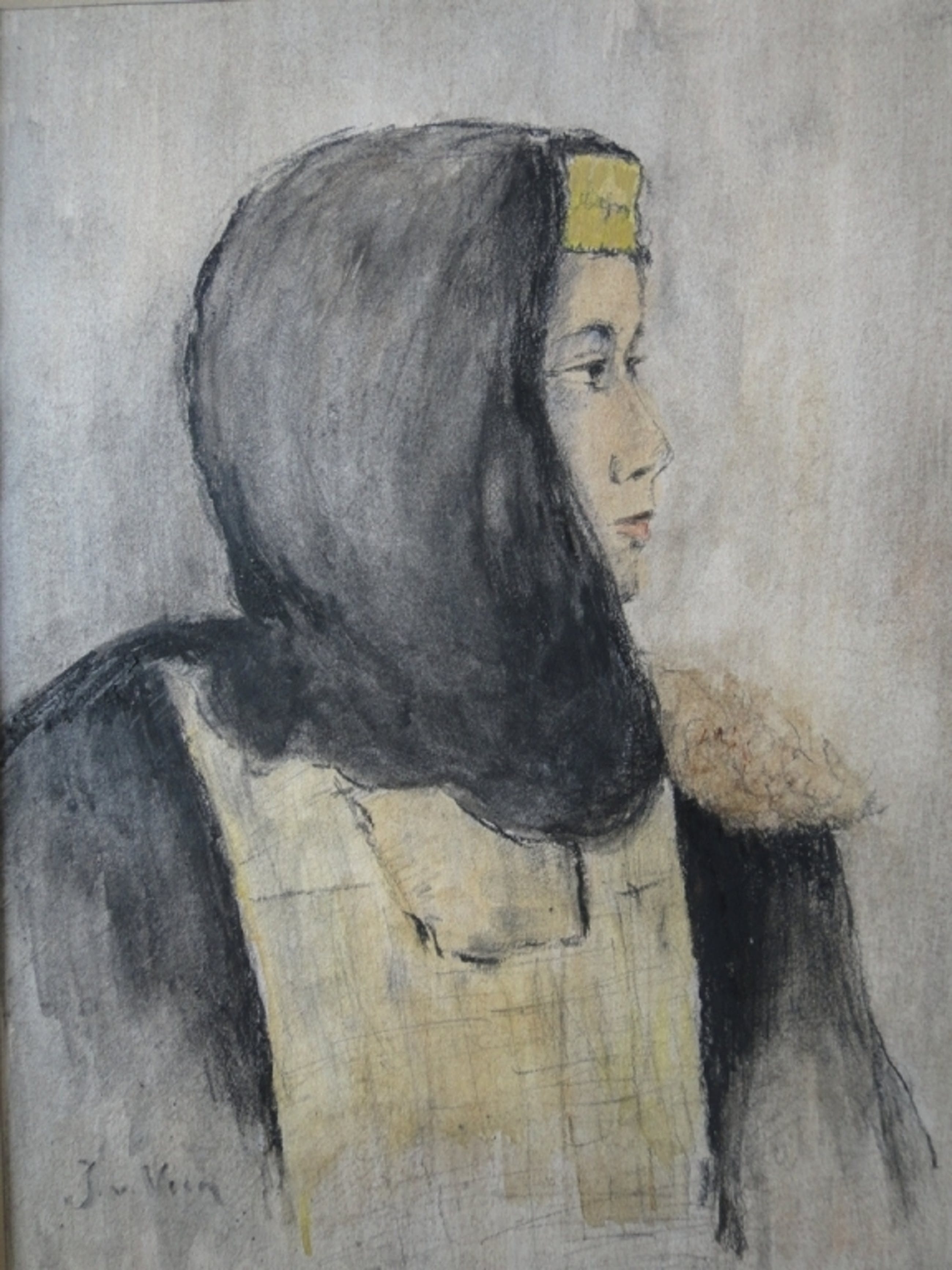 Jaap van Veen is niet alleen vermaard om zijn vele landschappen en (bloem) stillevens, maar hij kon ook trefzeker portretten maken. Vooral mensen uit de (theater)kunst waren een geliefd onderwerp.