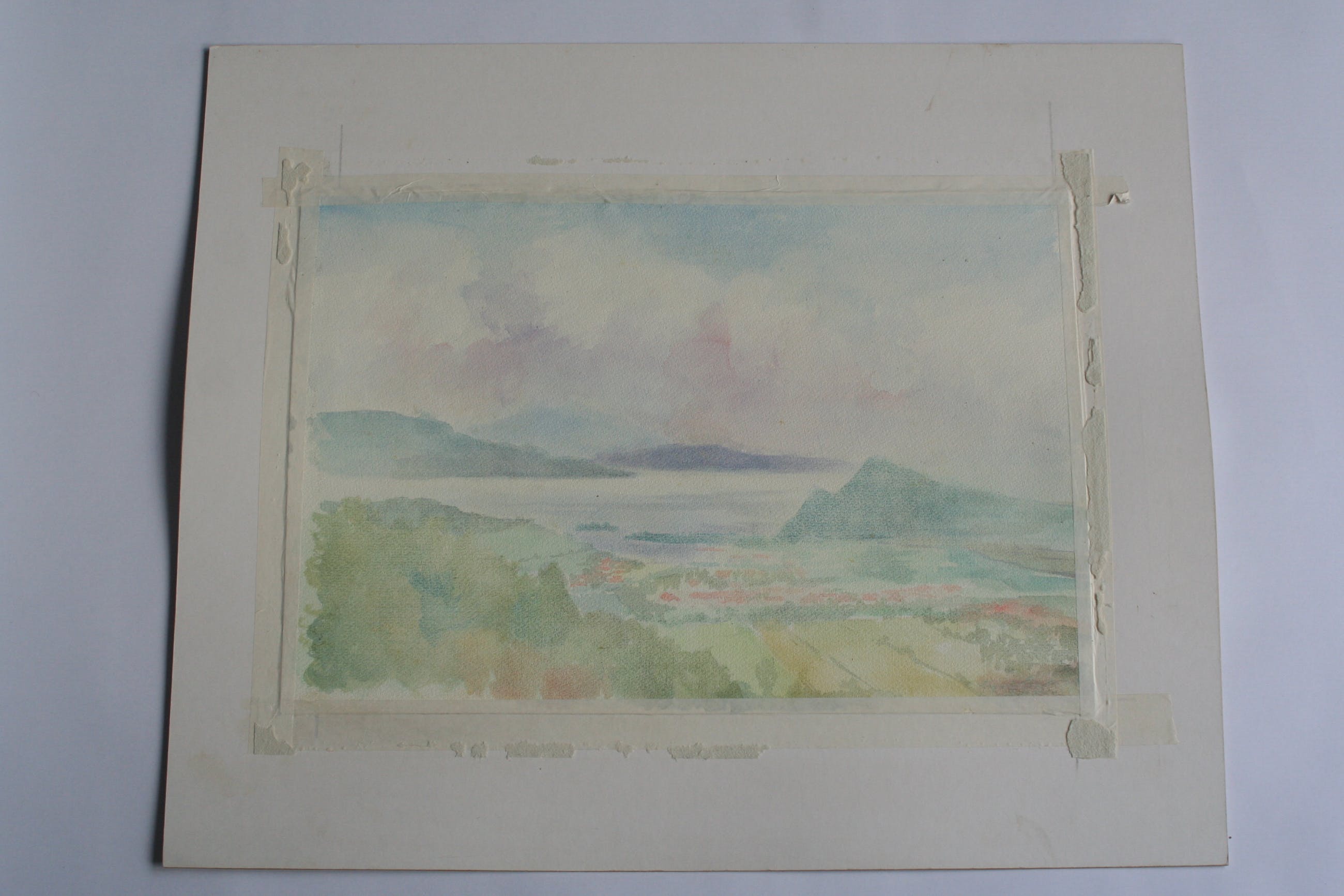 Aquarel van Jaap van Veen onder passe partout. Aan de achterzijde een opzet voor een andere aquarel. Wordt plat verzonden.