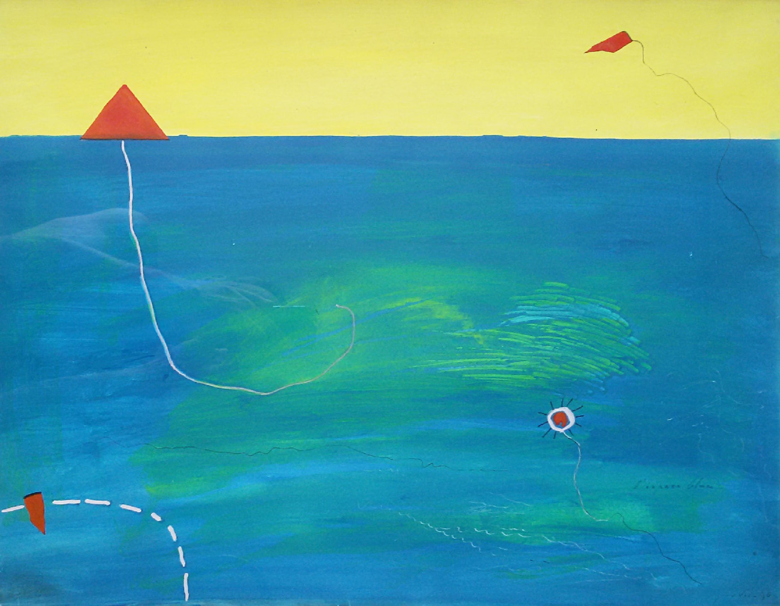 Strakke, kleurrijke compositie van Jaap van Veen. Acrylverf op papier, gesigneerd, getiteld en gedateerd (’78) rechtsonder. Prachtig ingelijst, achter glas en met passe-partout, alles in uitstekende conditie. De inlijsting van dit werk heeft al een veelvoud van de vraagprijs gekost.