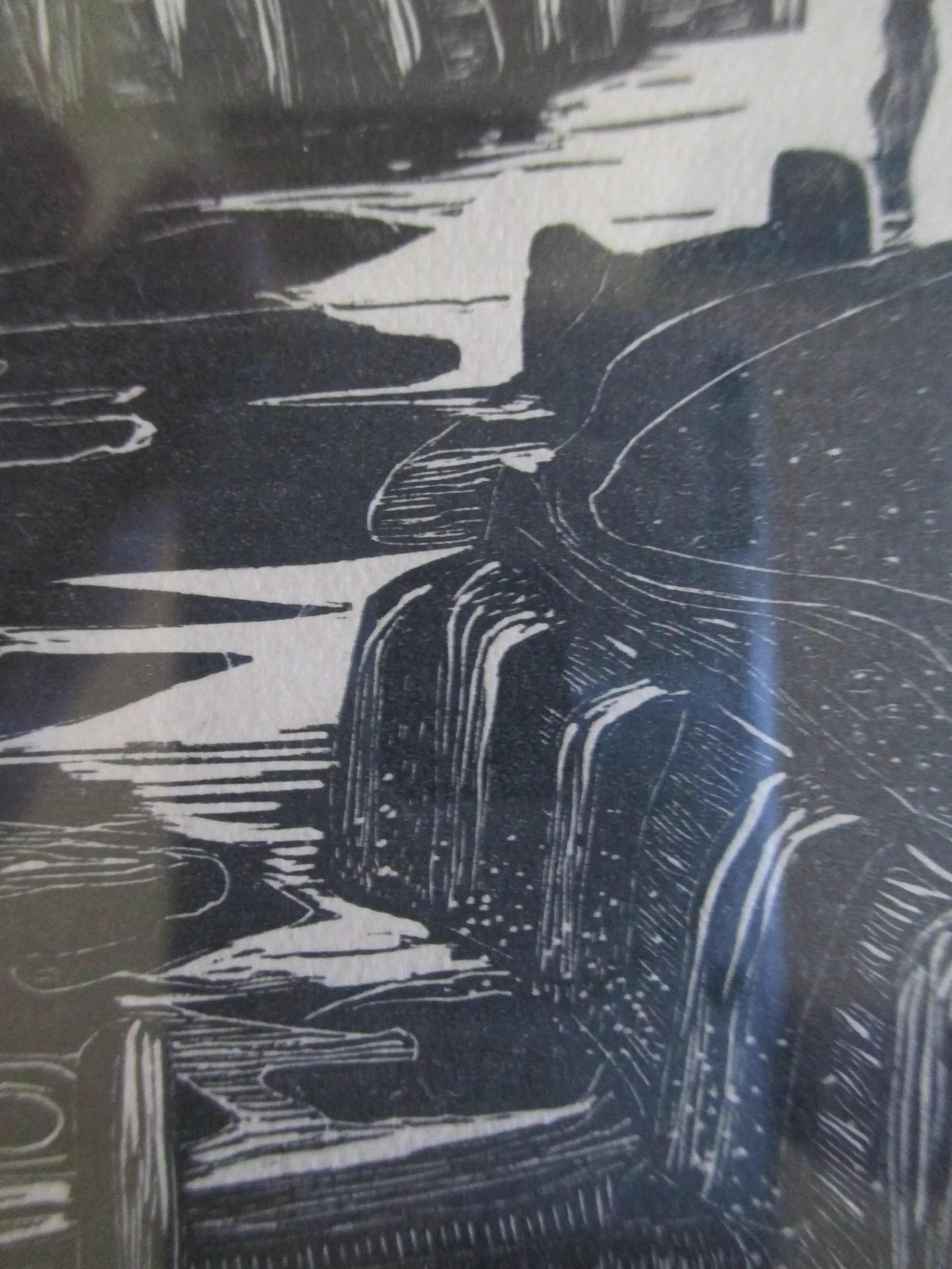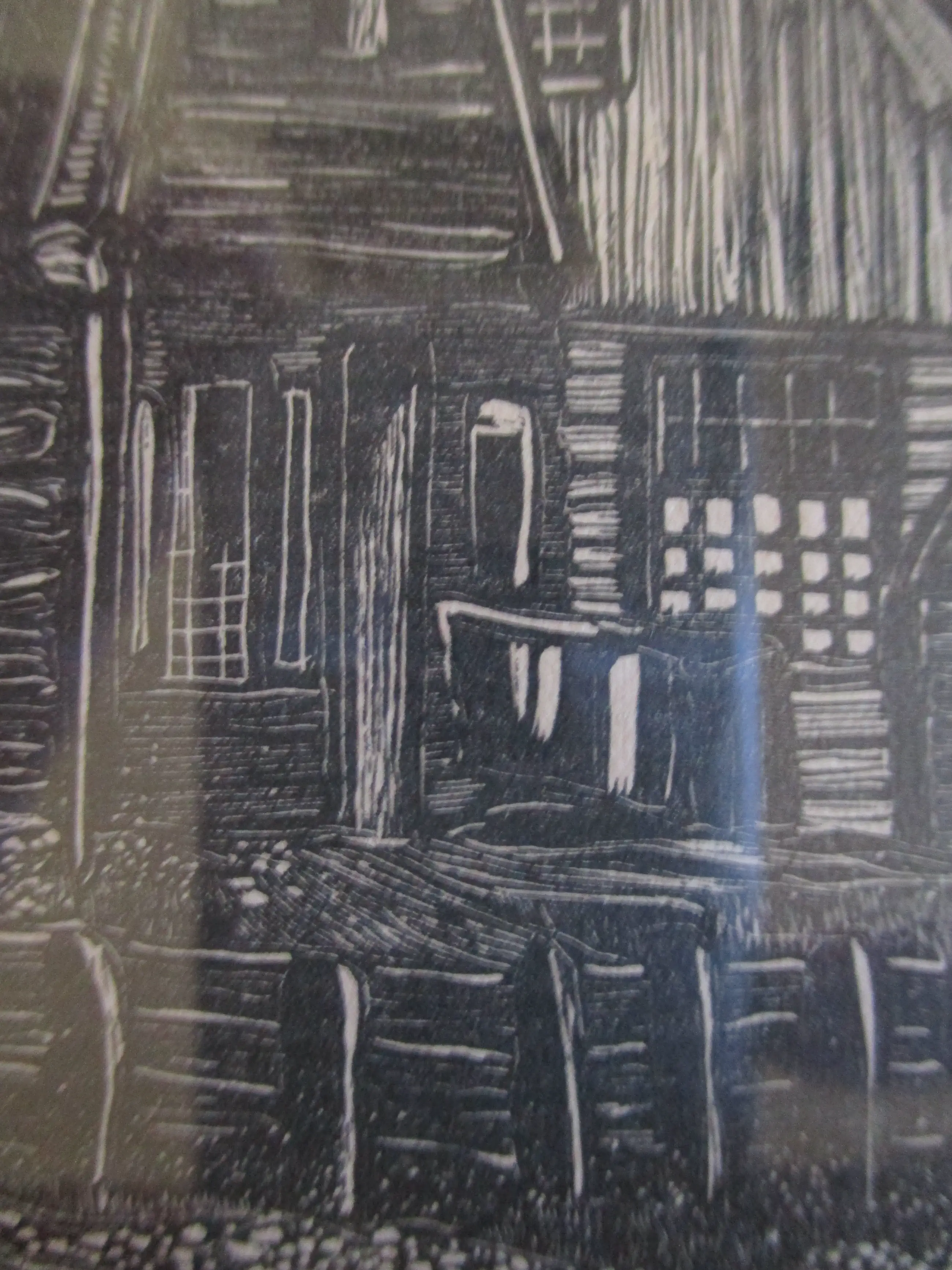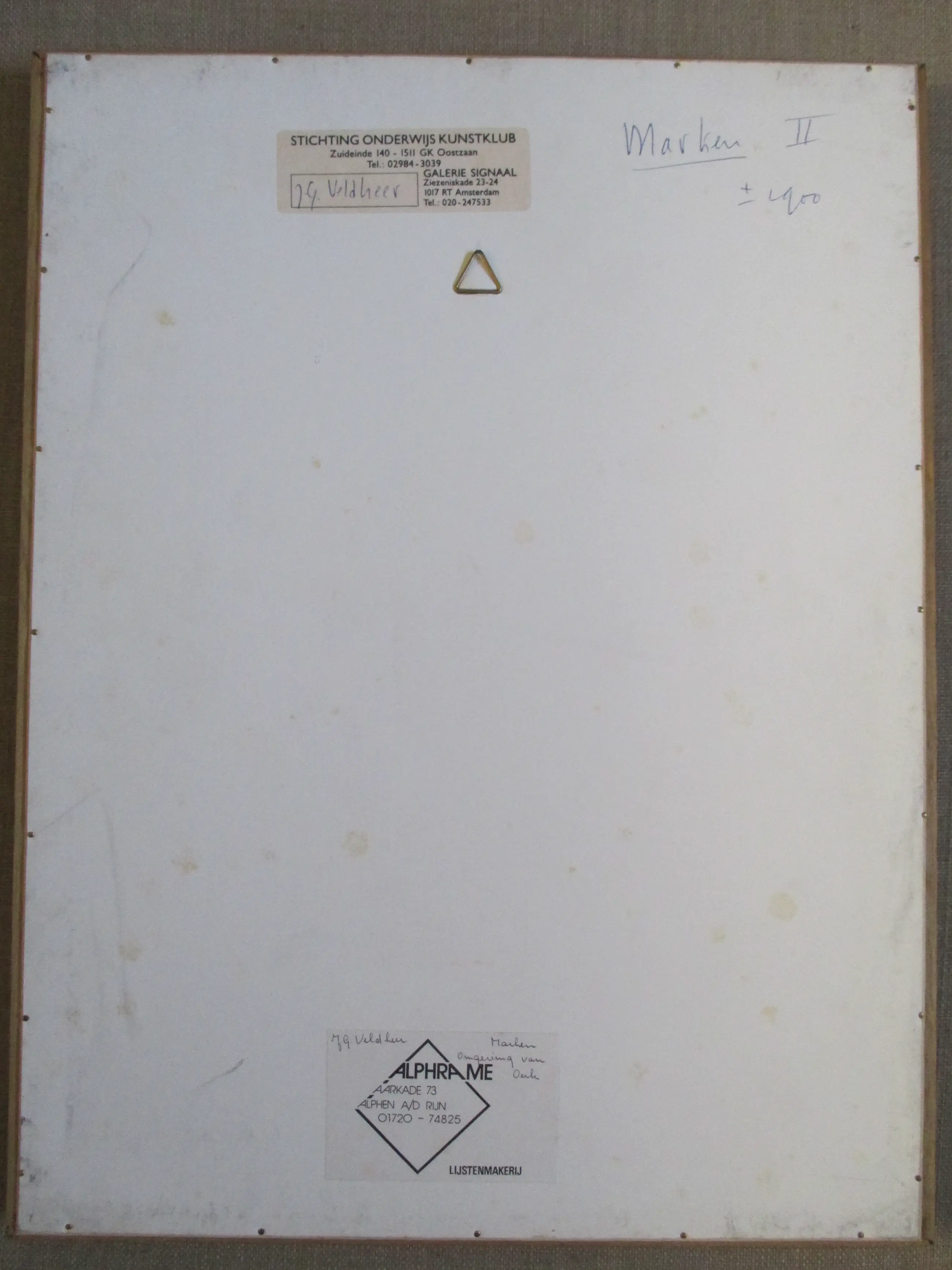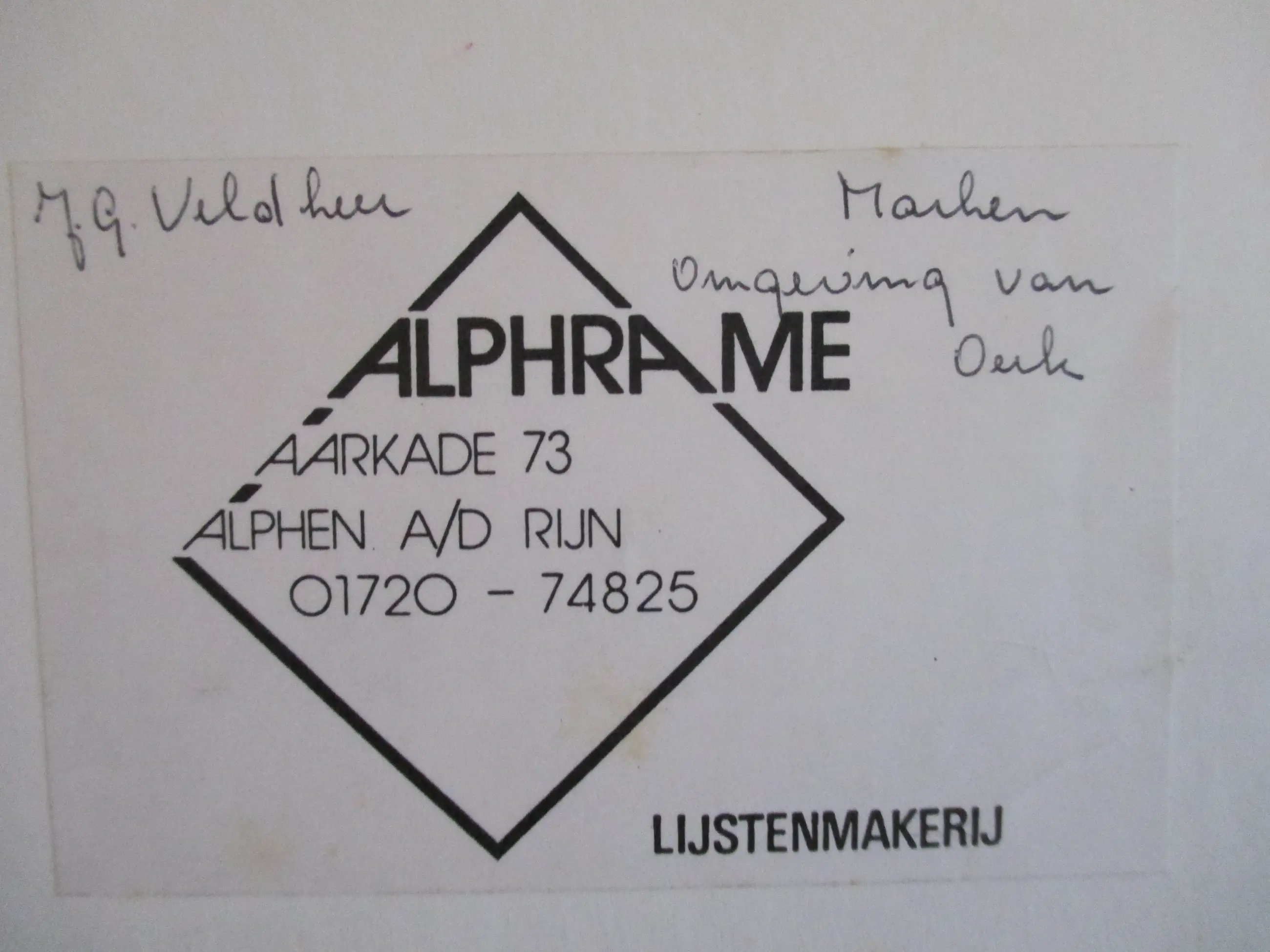 Houtsnede van Jaap Veldheer, verso getiteld Marken II. Ingelijst achter glas in een eenvoudige lijst. Afm. beeld 15x21 cm. Verzending 8 euro, aangetekend 9,65