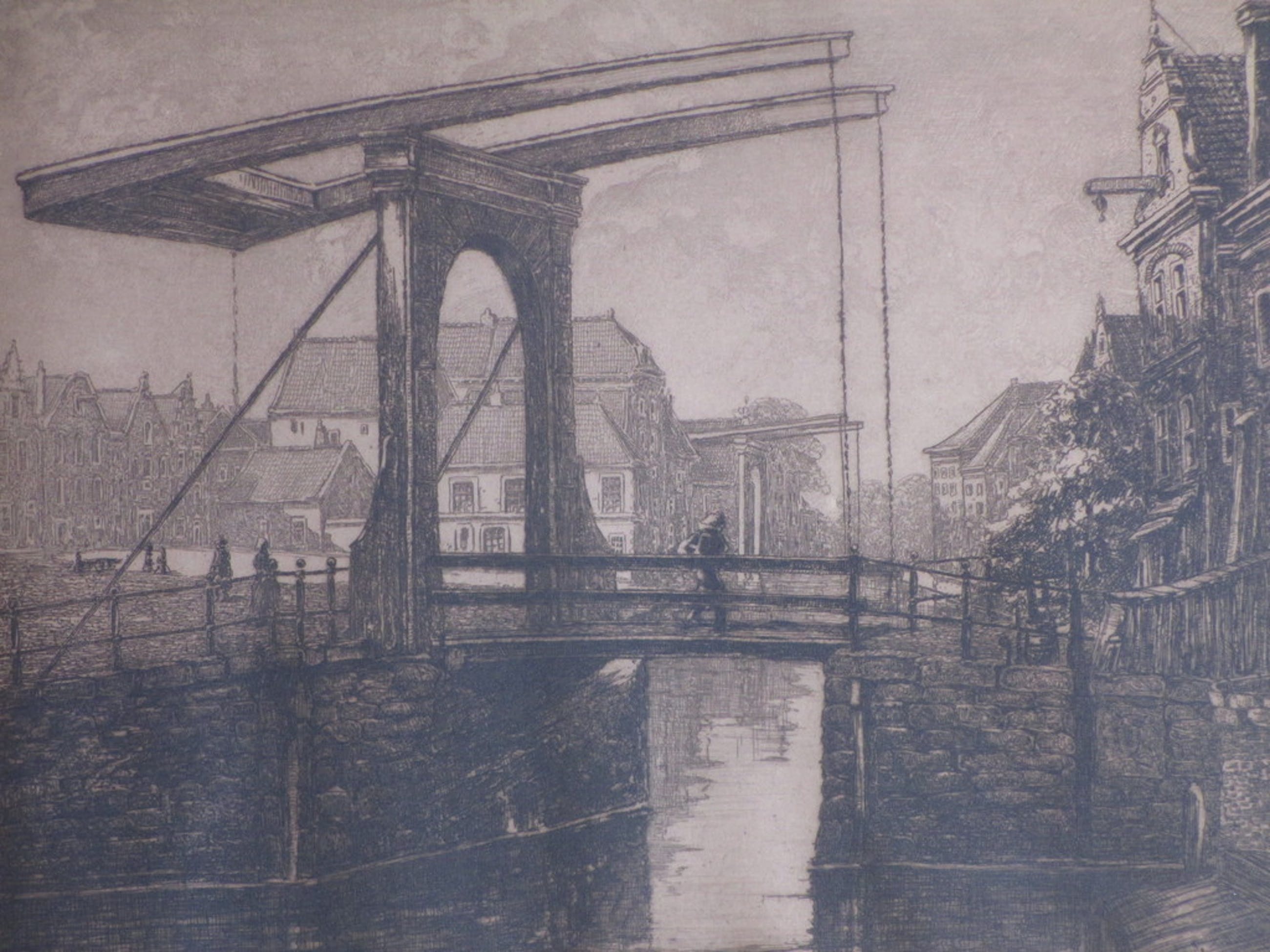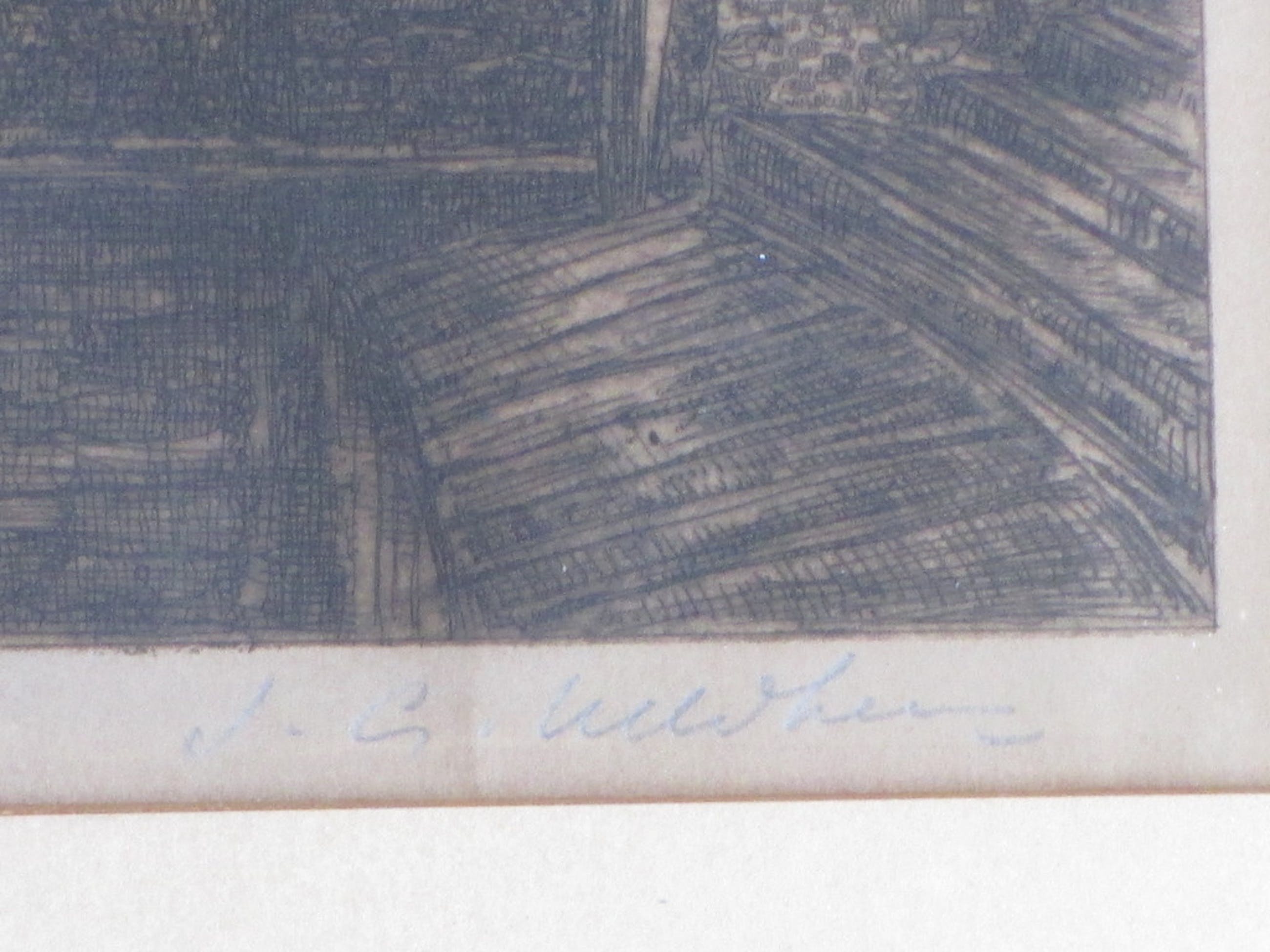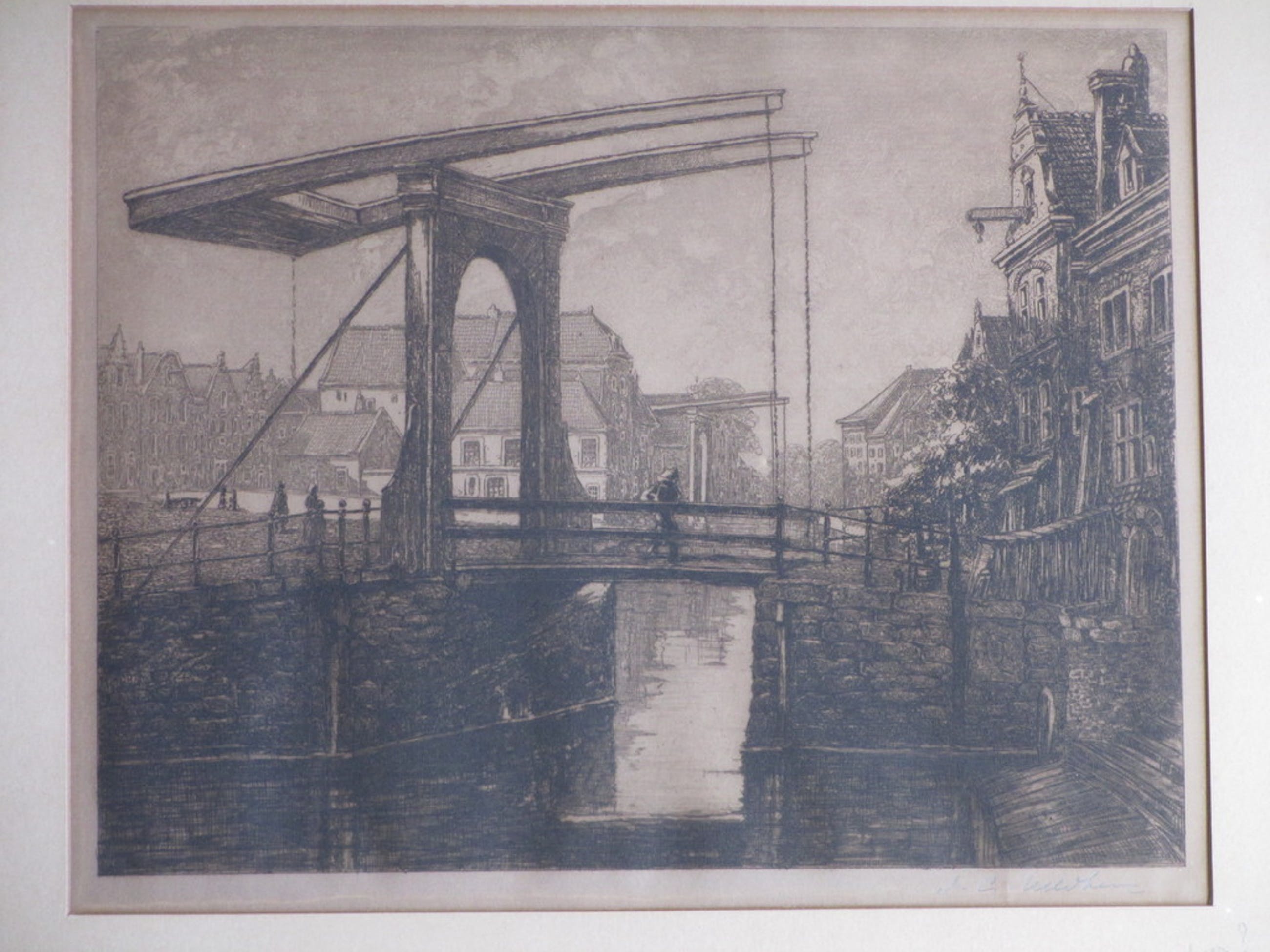 Ets onder passepartout, beeldmaat 22x28, p.p.maat 37x42
