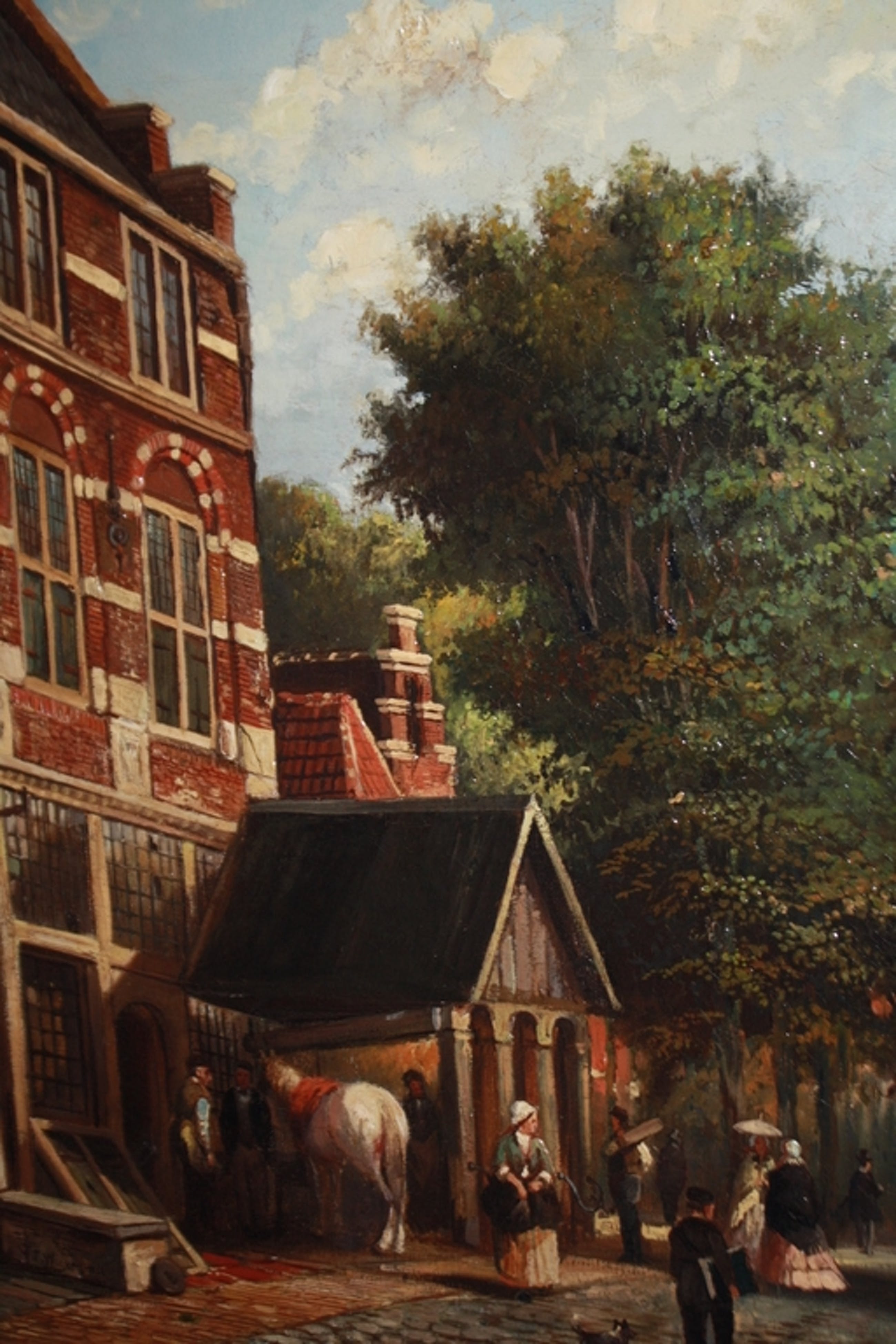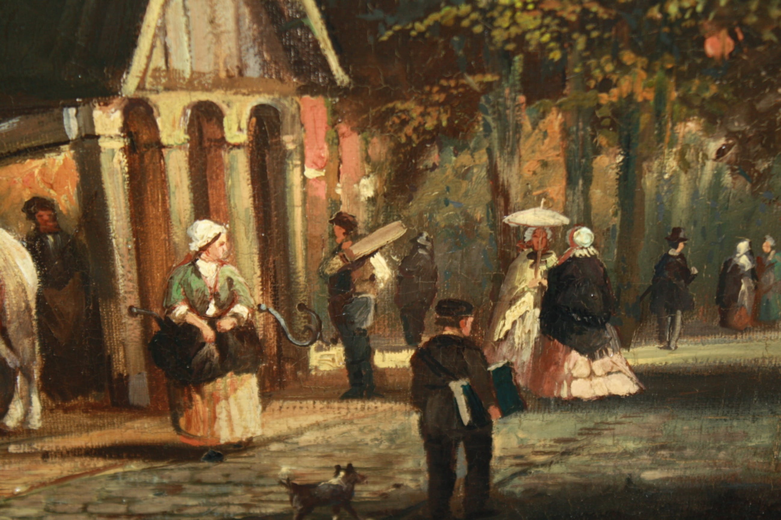 STADSGEZICHT MET PERSONEN waarschijnlijk Haarlem