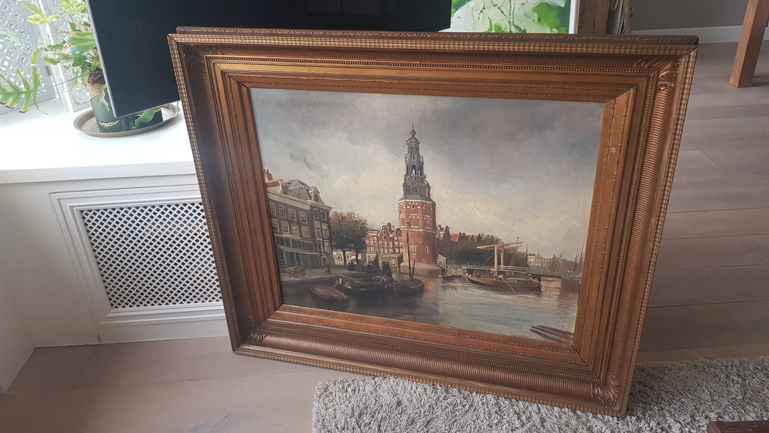 Status: Goed, beetje craquele. Prachtige oude zware houten lijst.