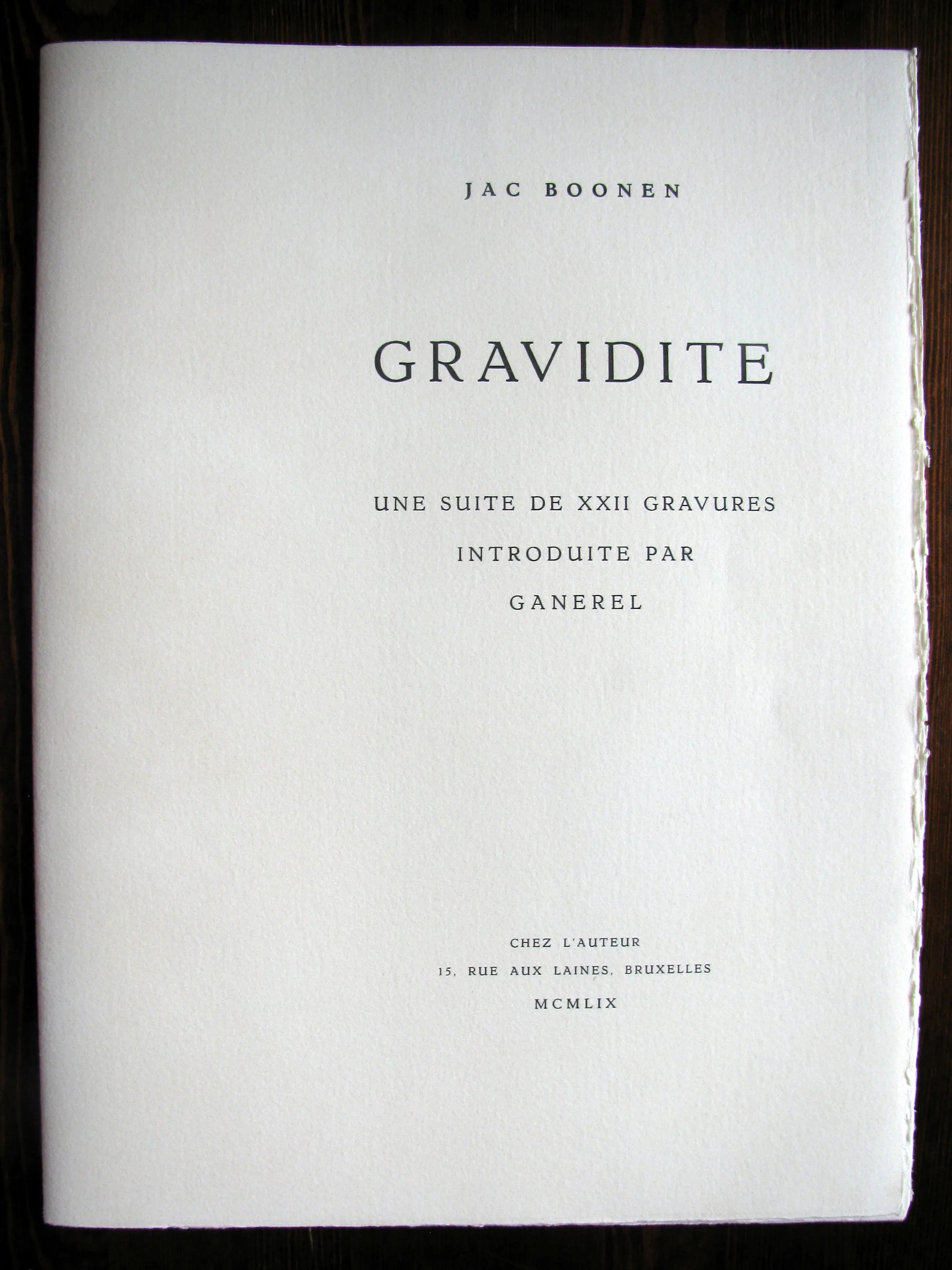 Prachtige ets van één van onze beste etsers, Jac Boonen, met potlood genummerd 6/57 en gesigneerd. De ets komt uit het album Gravidité uit 1959, een suite van 22 etsen gewijd aan de (zwangere) vrouw. Afmetingen (van de etsplaat, niet van het blad!) : 22 x 15 cm; in metalen lijst ingelijst: 43 x 35 cm. Het album werd gedrukt op 60 exemplaren, genummerd van 1 tot 57, en daarnaast nog drie exemplaren 'genummerd' A, B en C.
