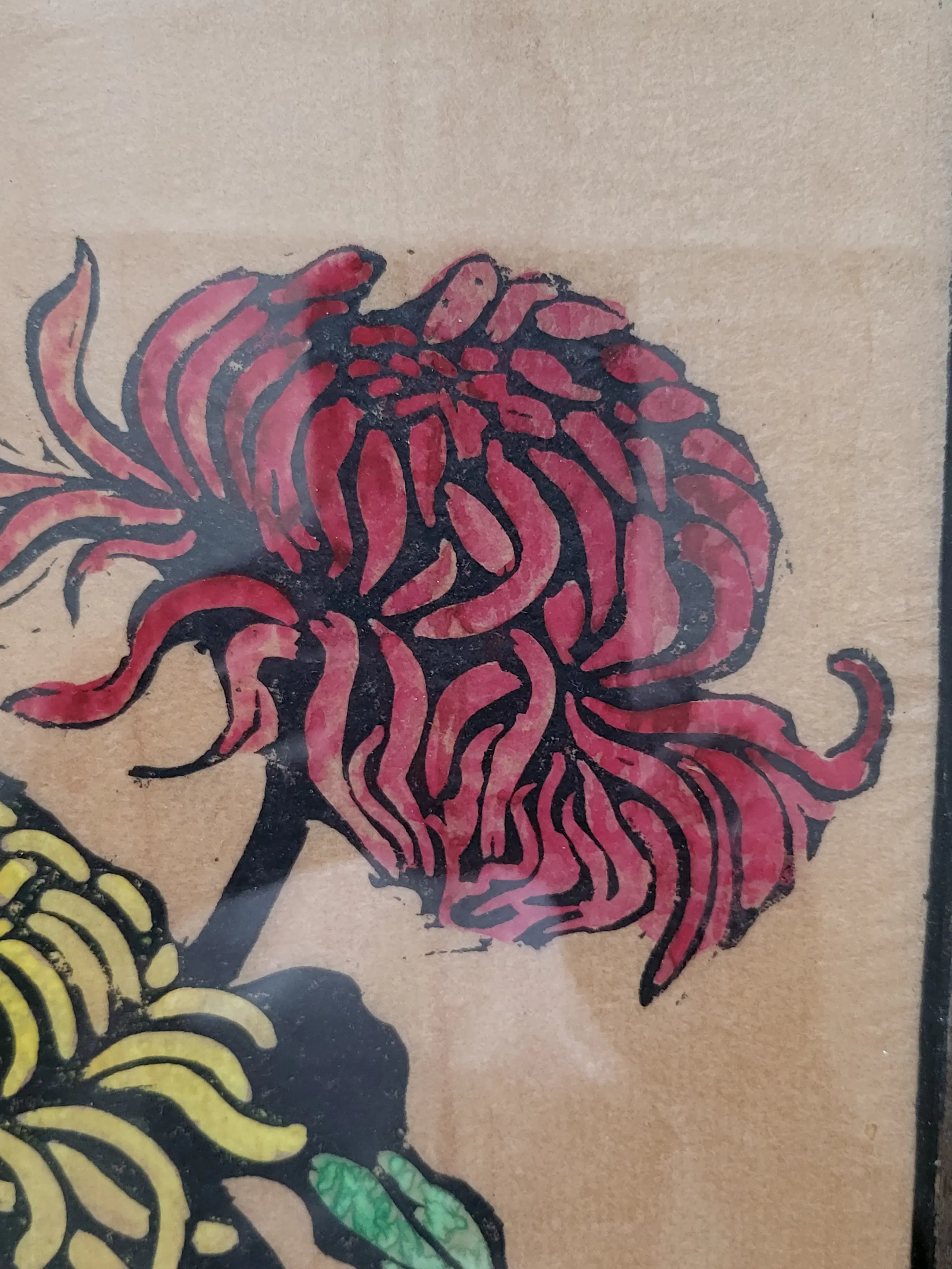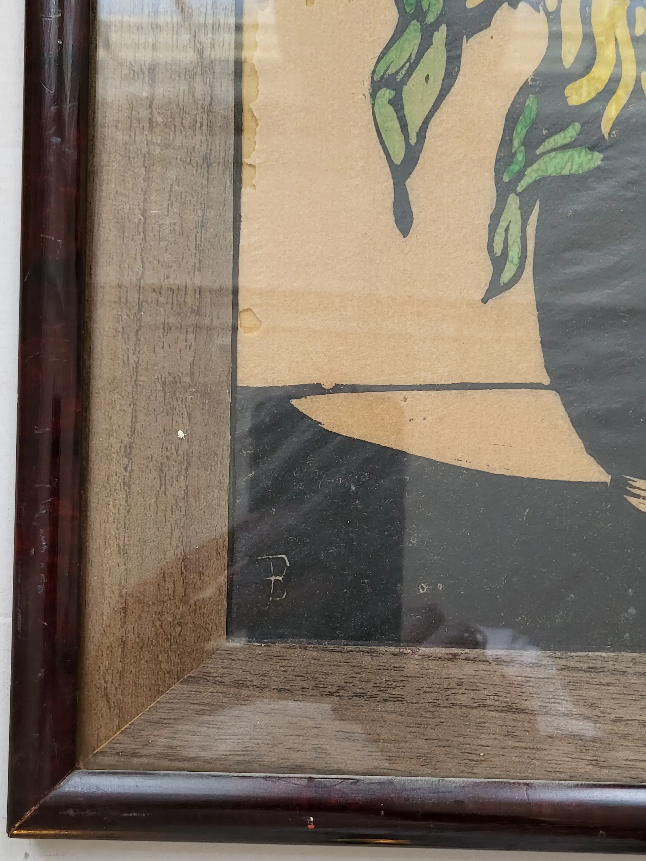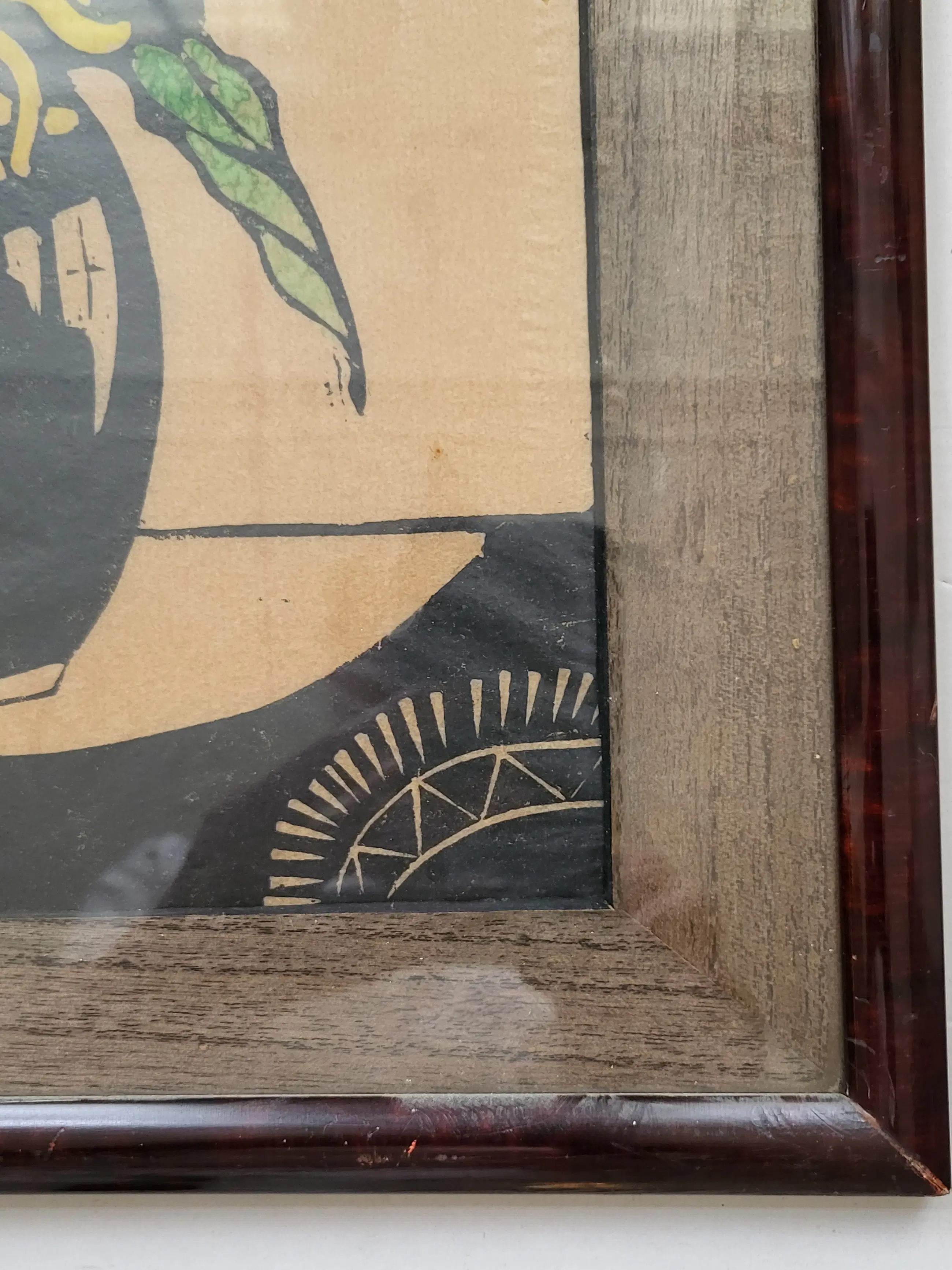 Fraaie ingelijste houtsnede van Jac de Beer (1888-1946), afgedrukt op dun Japans 'rijstpapier'. Het werk is linksonder gesigneerd met een grote B.