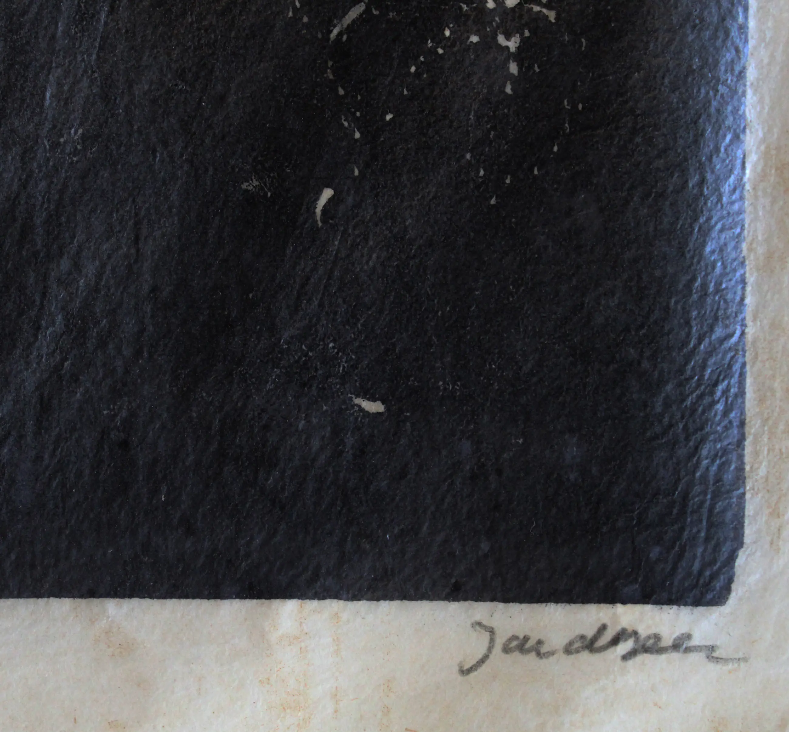 Zeer fraaie houtsnede van Jac. de Beer. Ingelijst met zuurvrije materialen. De houtsnede is opnieuw strak gemaakt. Beeldmaat: 26,5 x 14,5 cm. Bladmaat: 33 x 21 cm. Ingelijst in een zwarte lijst met passepartout. Buitenmaat lijst: 37 x 26,5 cm. Gesigneerd met potlood rechtsonder. Betiteld linksonder. De houtsnede wordt ook aangeboden als ingekleurde versie.