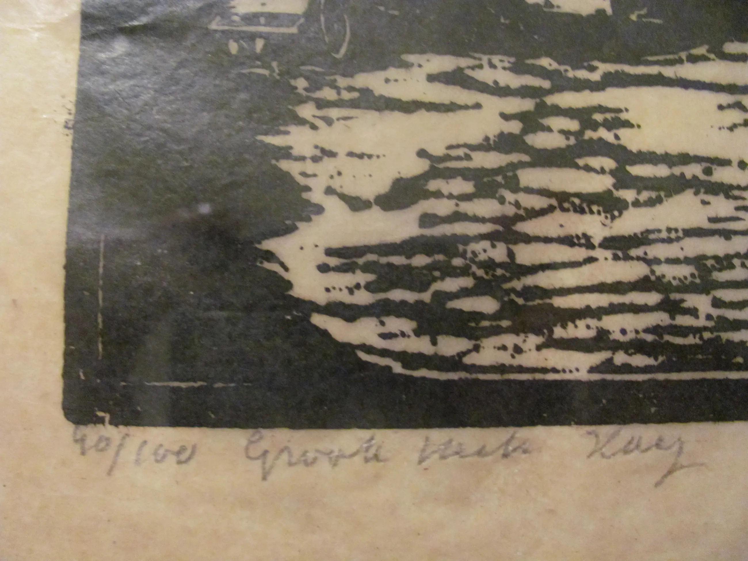 De houtsnede is gedrukt op dun rijstpapier, voor 1940.Minimale vouwtjes, geen verkleuringen.
