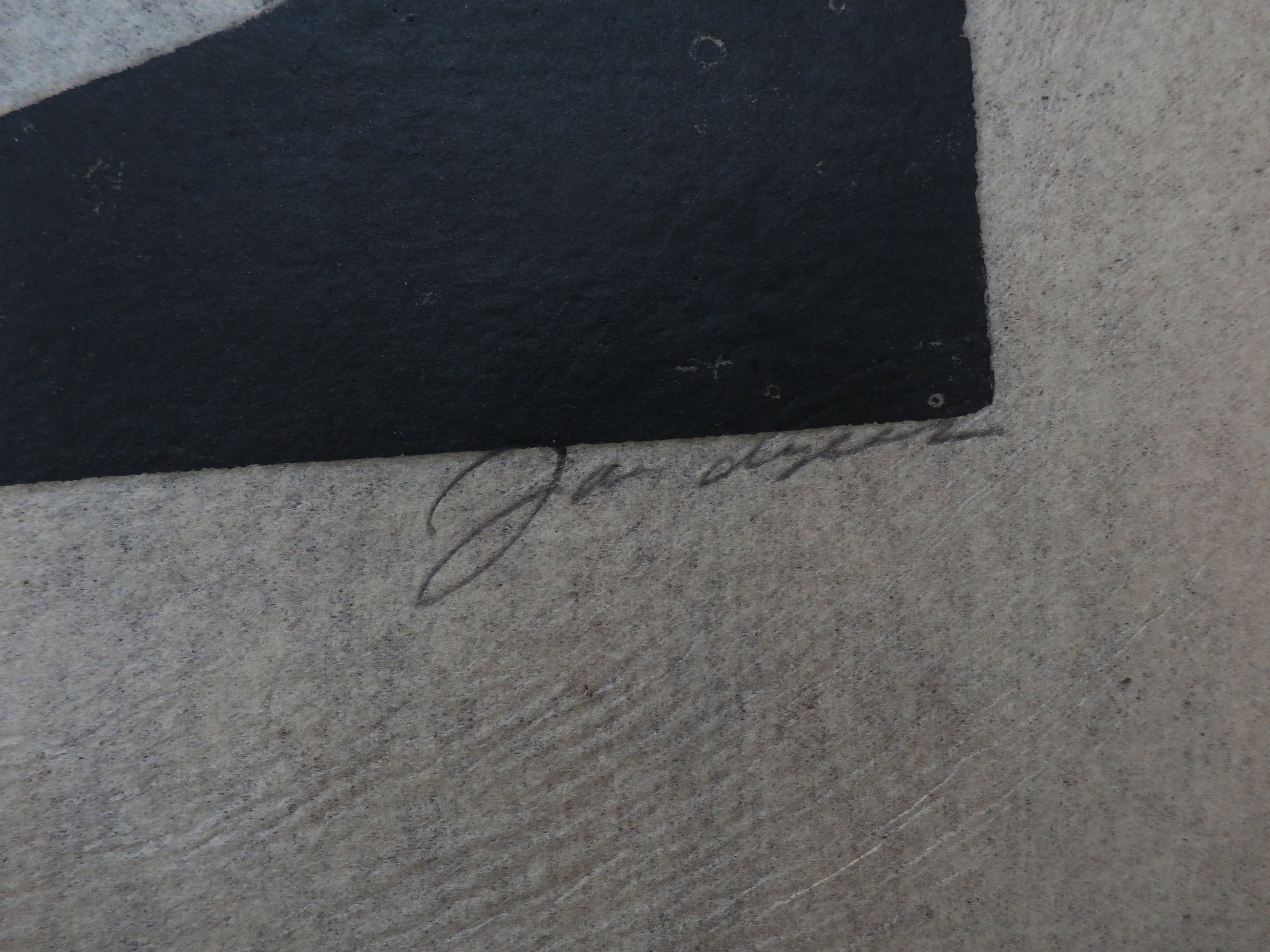 Rechts bovenin de hoek is er een klein stukje van het papier af. Goed ingelijst, valt dit in de lijst/onder het passepartout