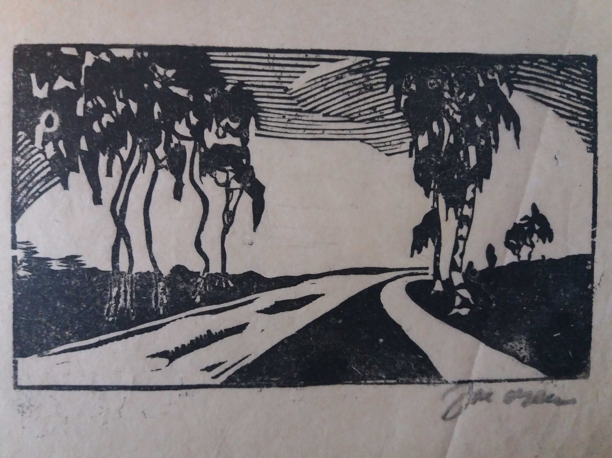 De houtsnede is een klein werk. De buitenmaten zijn 22 x16. De binnenmaat van het eigenlijke werk is 16 x 10 cm. Handgesigneerd met potlood. Komt uit een map gedateerd 1946.