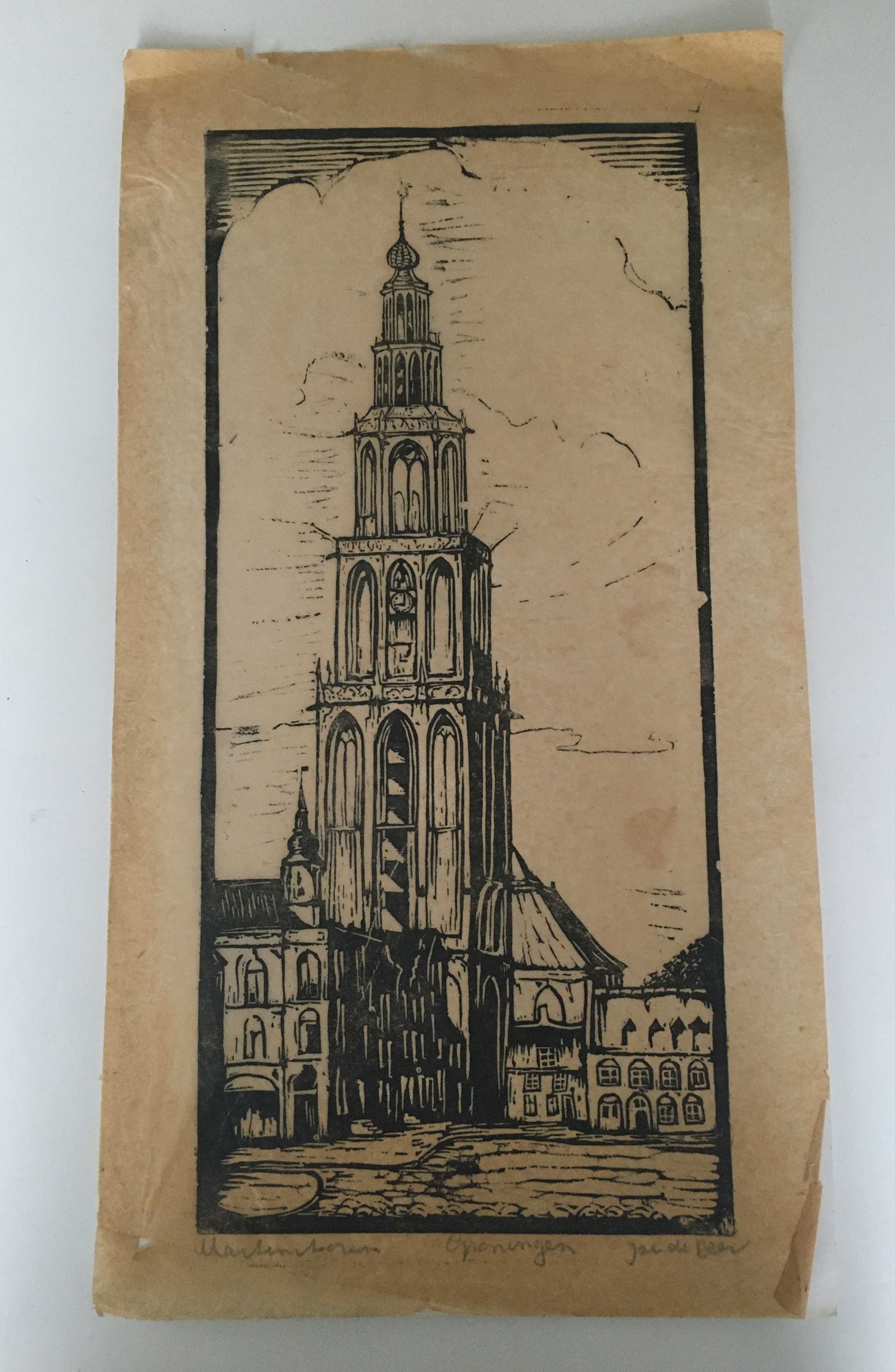 Karakteristieke houtsnede van Jac de Beer, Friese graficus. Was gespecialiseerd in voorstellingen van dieren, dorpsgezichten, landschappen, stadsgezichten en stillevens. Gebruikte als techniek houtsnede/linoleumsnede. Zijn werk is opgenomen in de collectie van het Scheepvaartmuseum te Sneek. Zie ook de andere aanbiedingen.