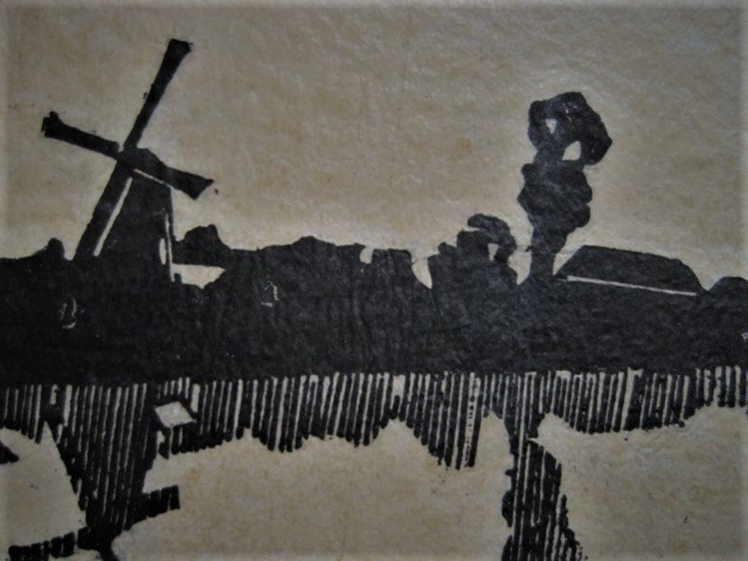 Jac de Beer (1888-1946) was een Fries kunstenaar die in de eerste helft van de vorige eeuw vanuit Sneek werkte. Het Fries Scheepvaartmuseum in Sneek heeft een kleine, maar interessante collectie van zijn houtsneden. Deze, door ons aangeboden houtsnede is afgedrukt op rijstpapier en rechtsonder gesigneerd.