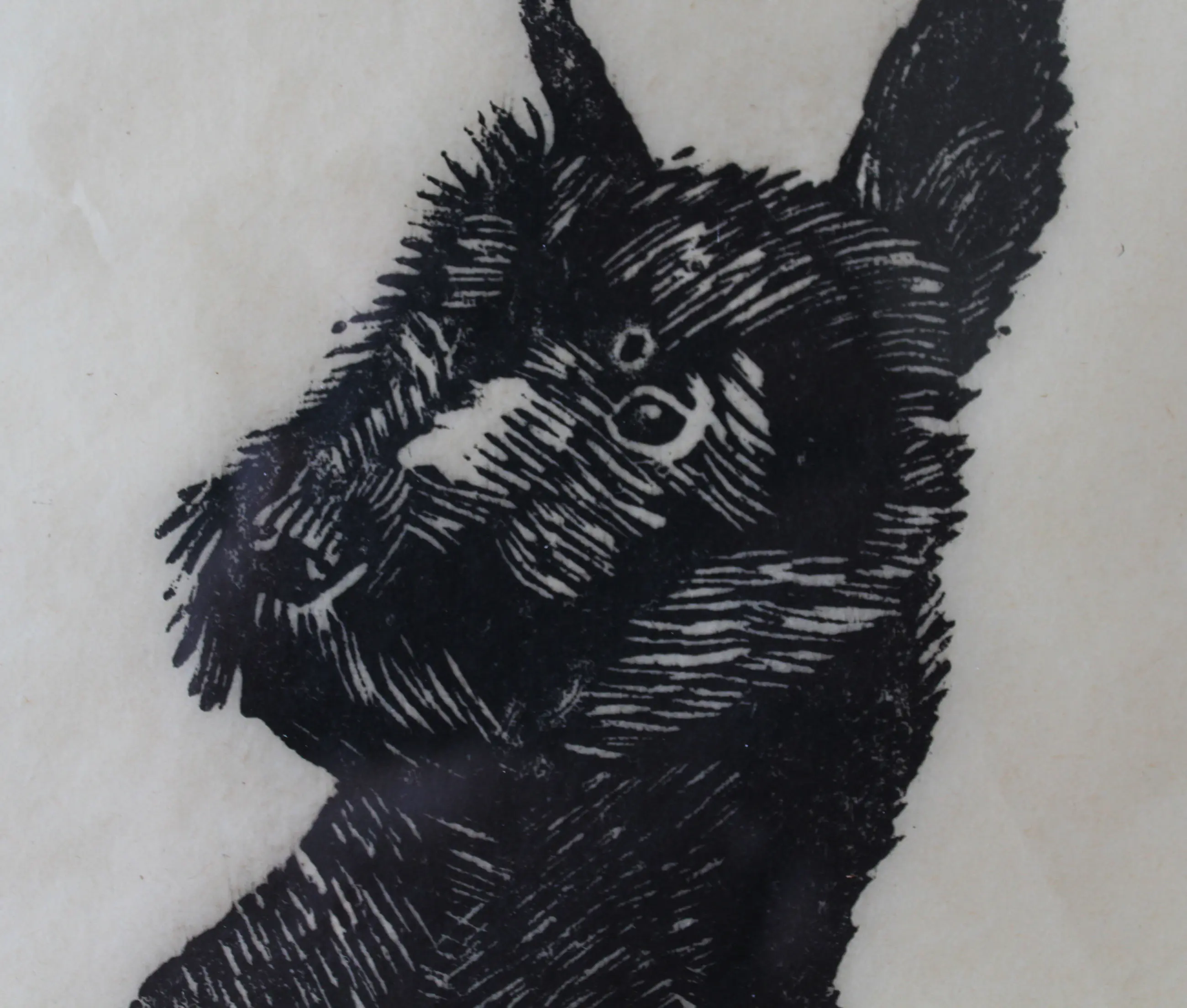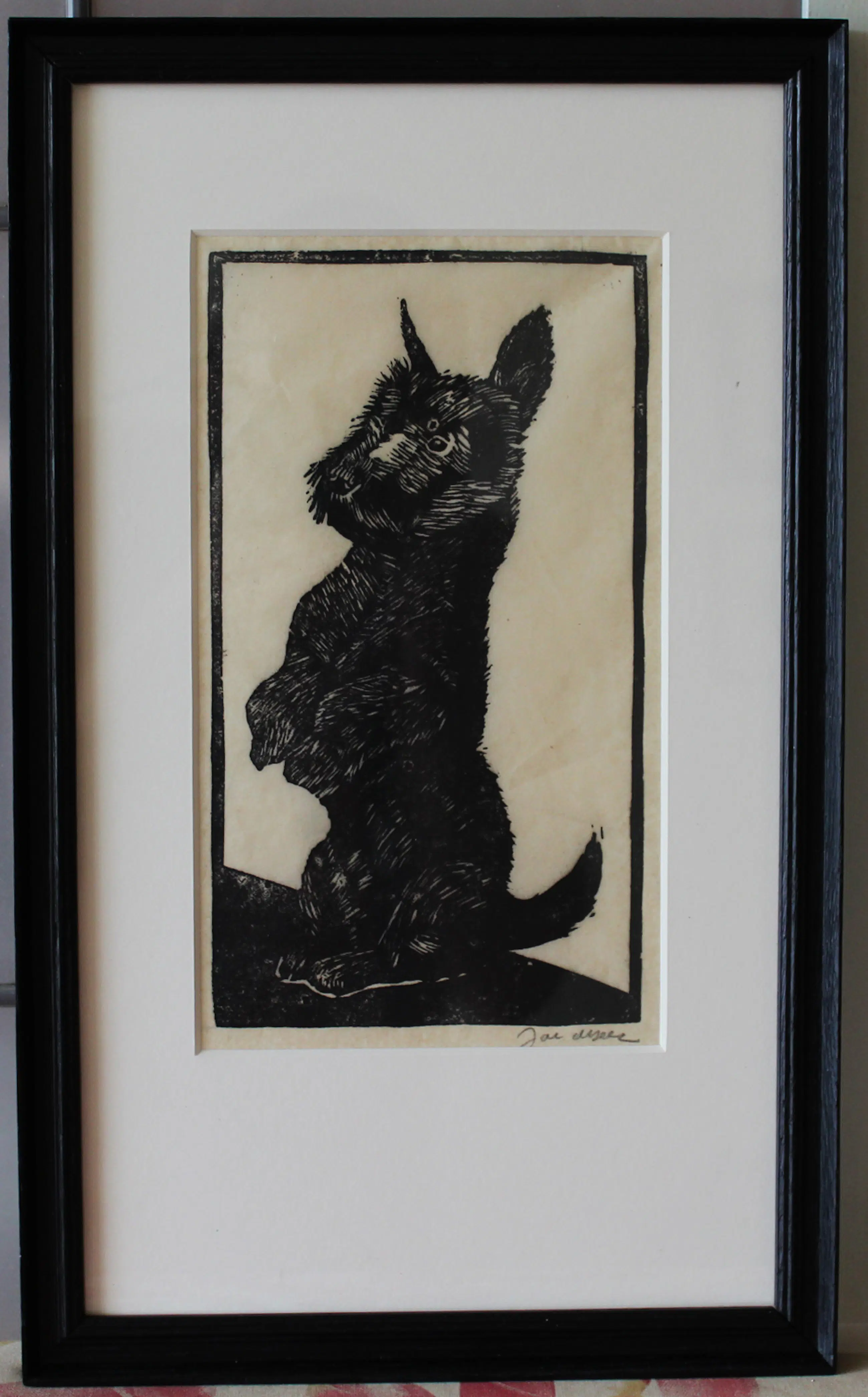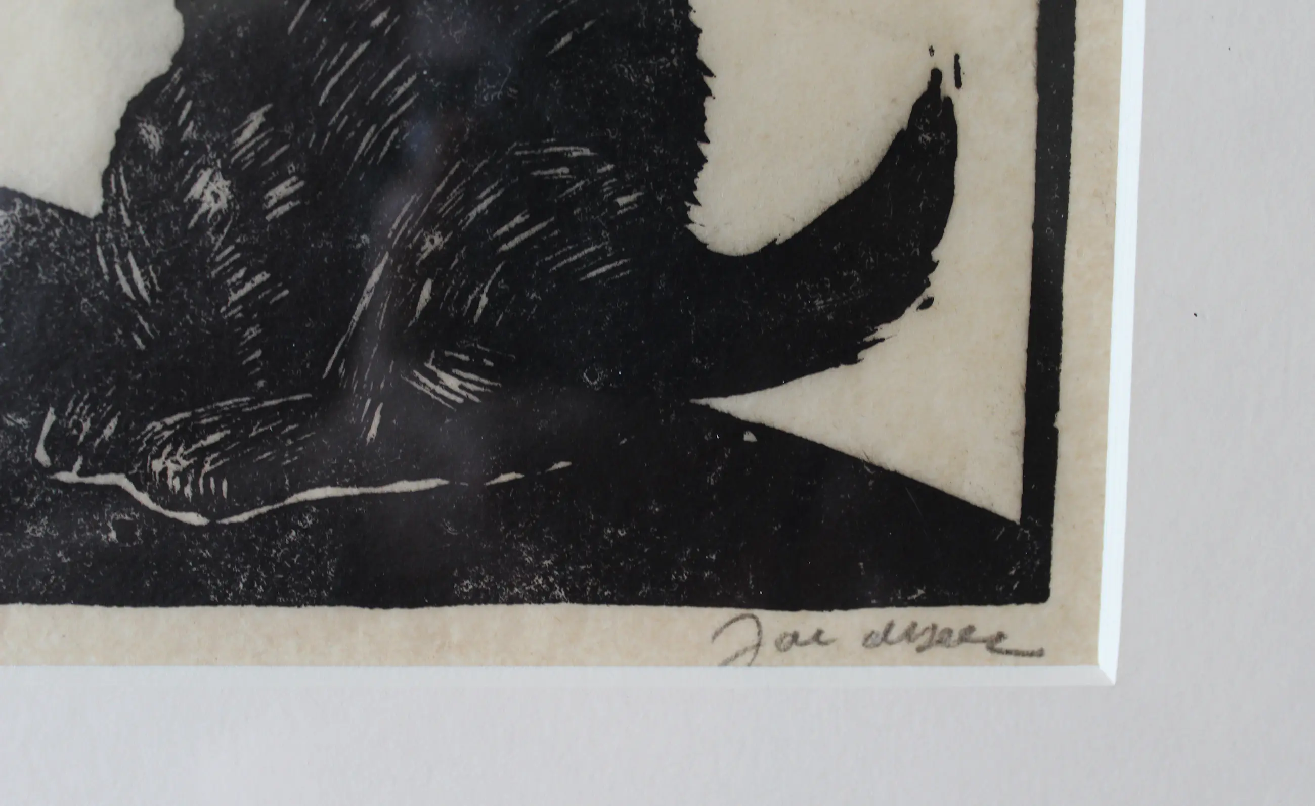 Zeer fraaie houtsnede van Jac. de Beer. Ingelijst met zuurvrije materialen. De houtsnede is opnieuw strak gemaakt. Beeldmaat: 24 x 14 cm. Bladmaat: 33 x 21 cm. Ingelijst in een zwarte lijst met passepartout. Buitenmaat lijst: 42,5 x 25,5 cm. Gesigneerd met potlood rechtsonder.