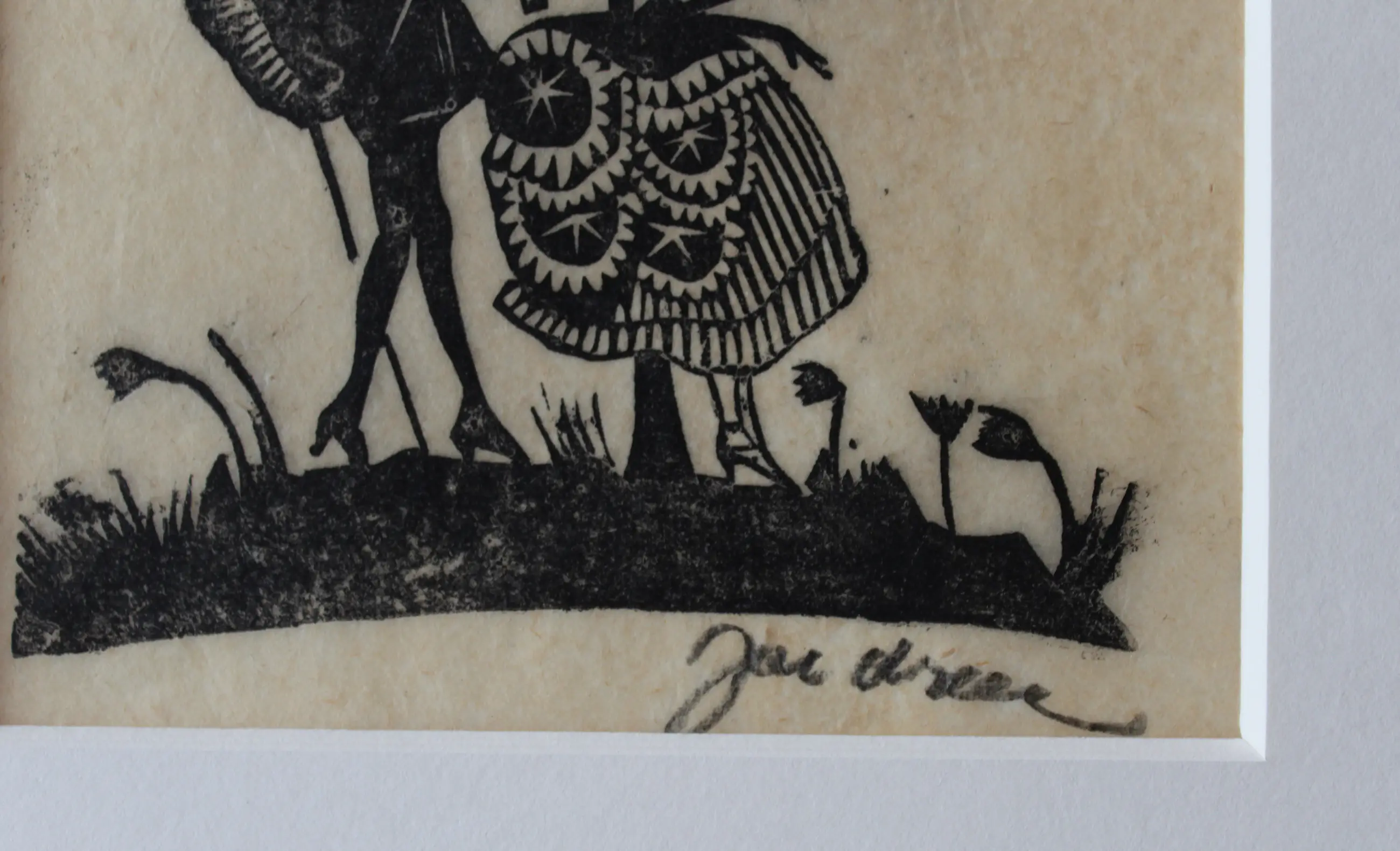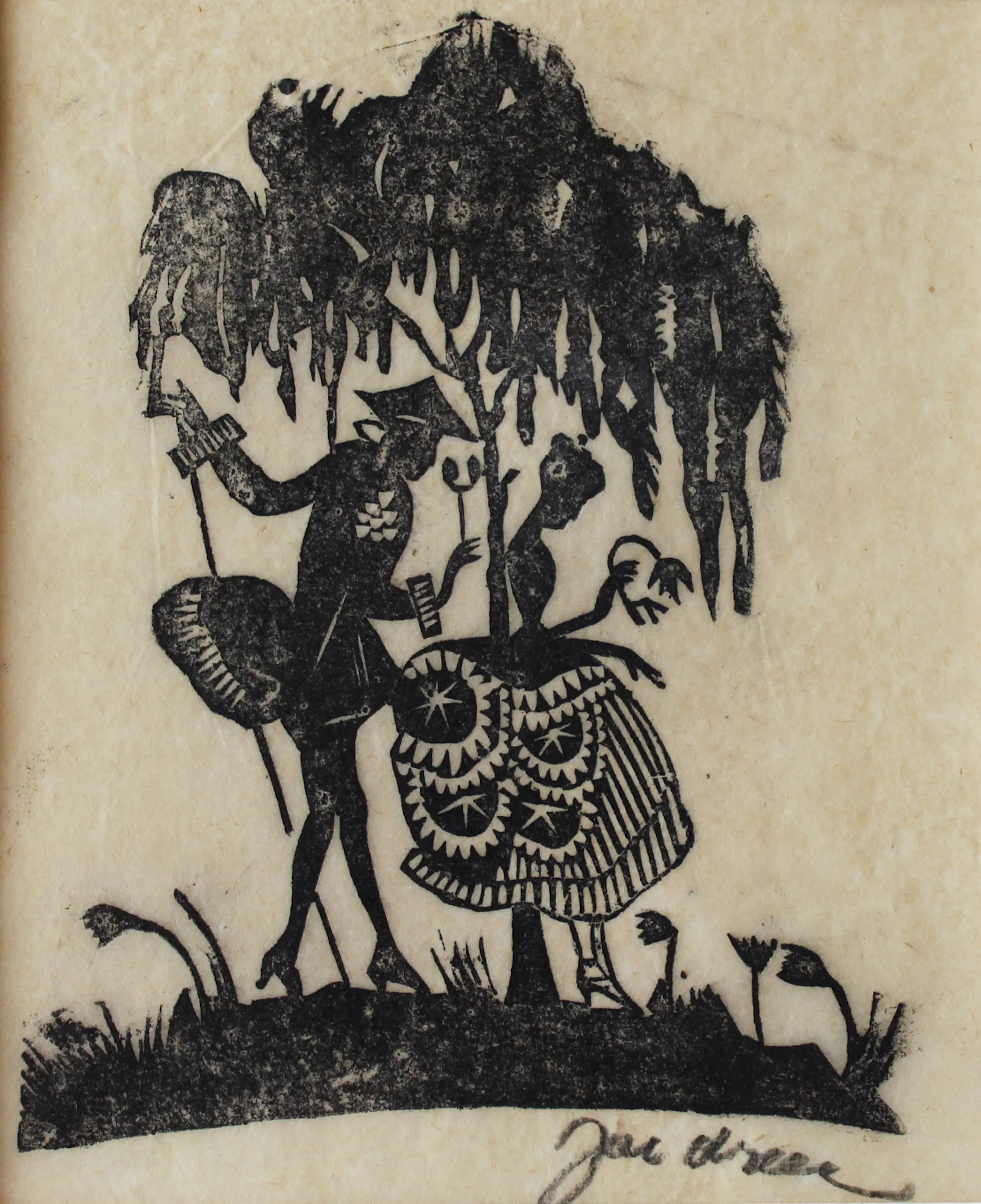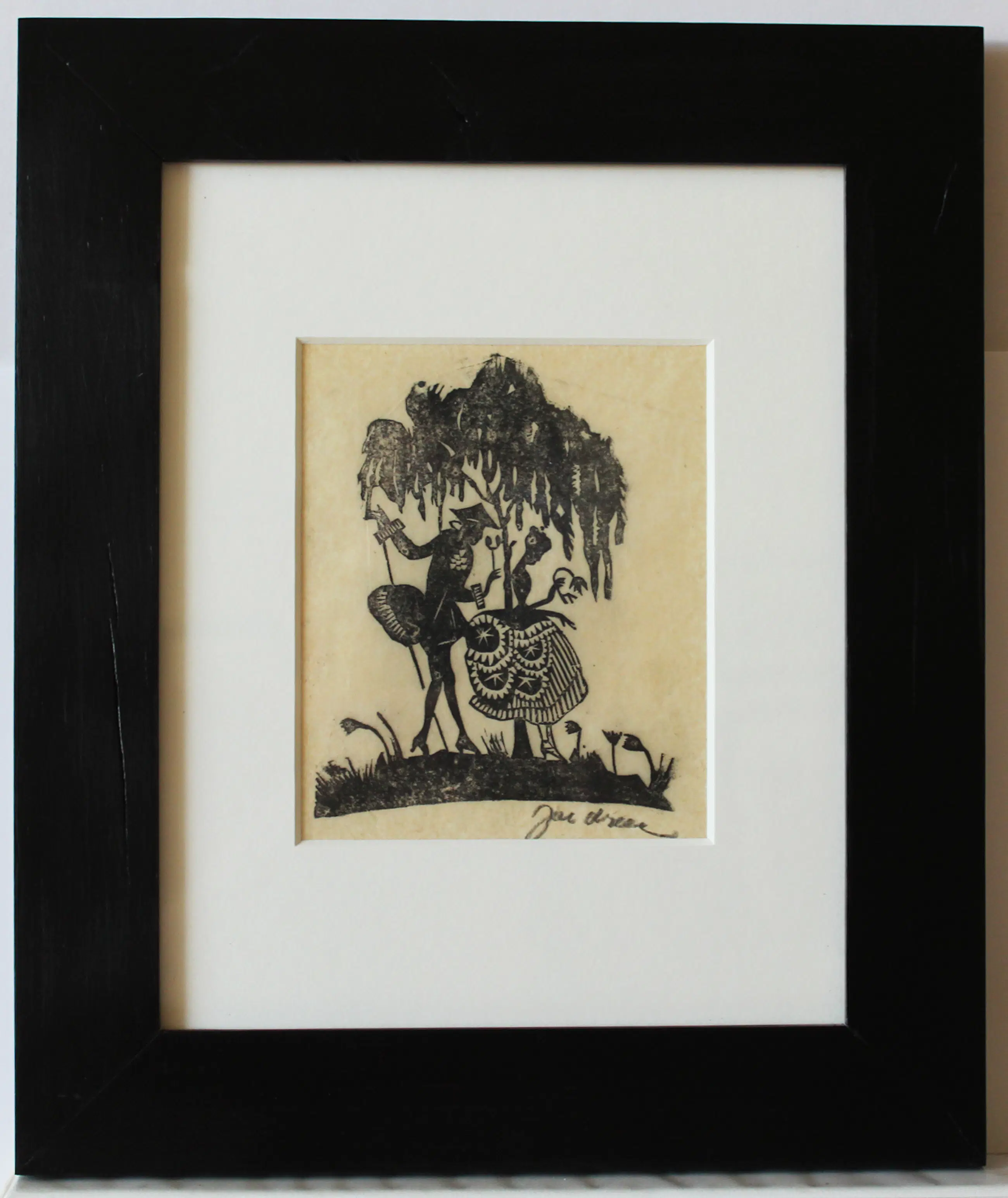 Zeer fraaie houtsnede van Jac. de Beer. Ingelijst met zuurvrije materialen. De houtsnede is opnieuw strak gemaakt. Beeldmaat: 14 x 11,5 cm. Bladmaat: 21,5 x 17 cm. Ingelijst in een zwarte lijst met passepartout. Buitenmaat lijst: 32,5 x 27 cm. Gesigneerd met potlood rechtsonder.