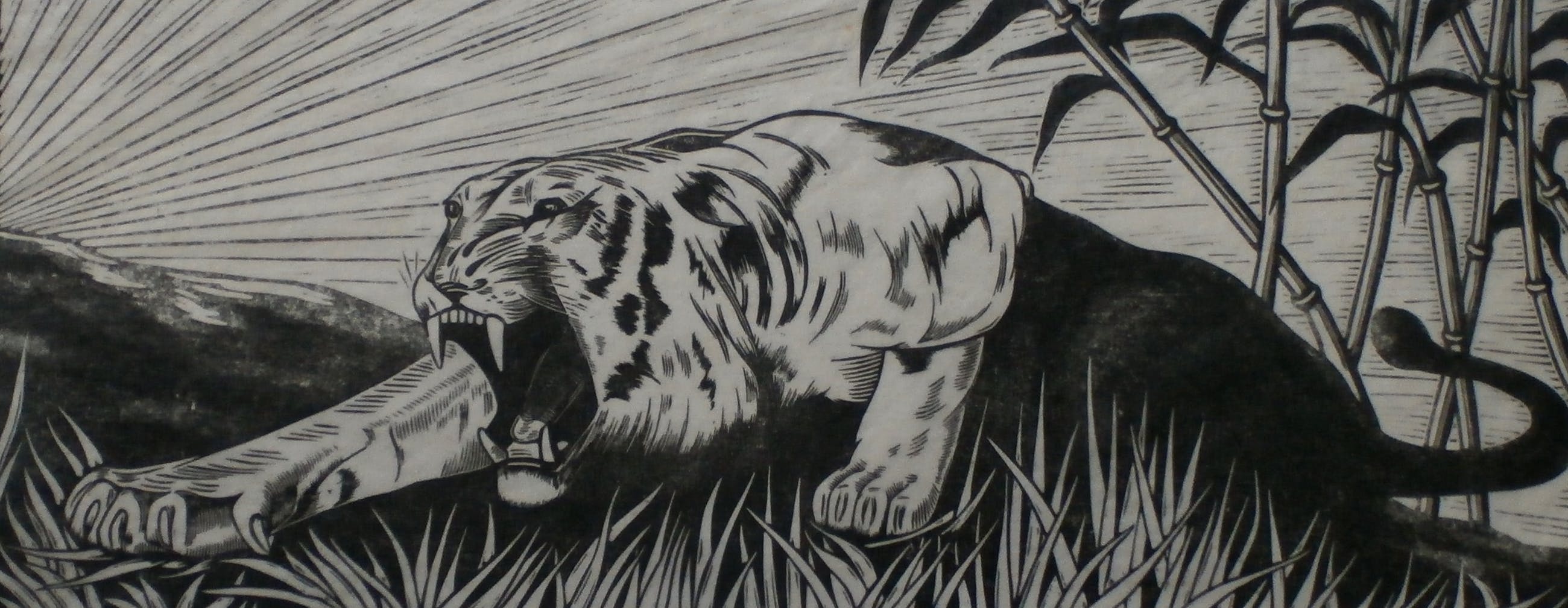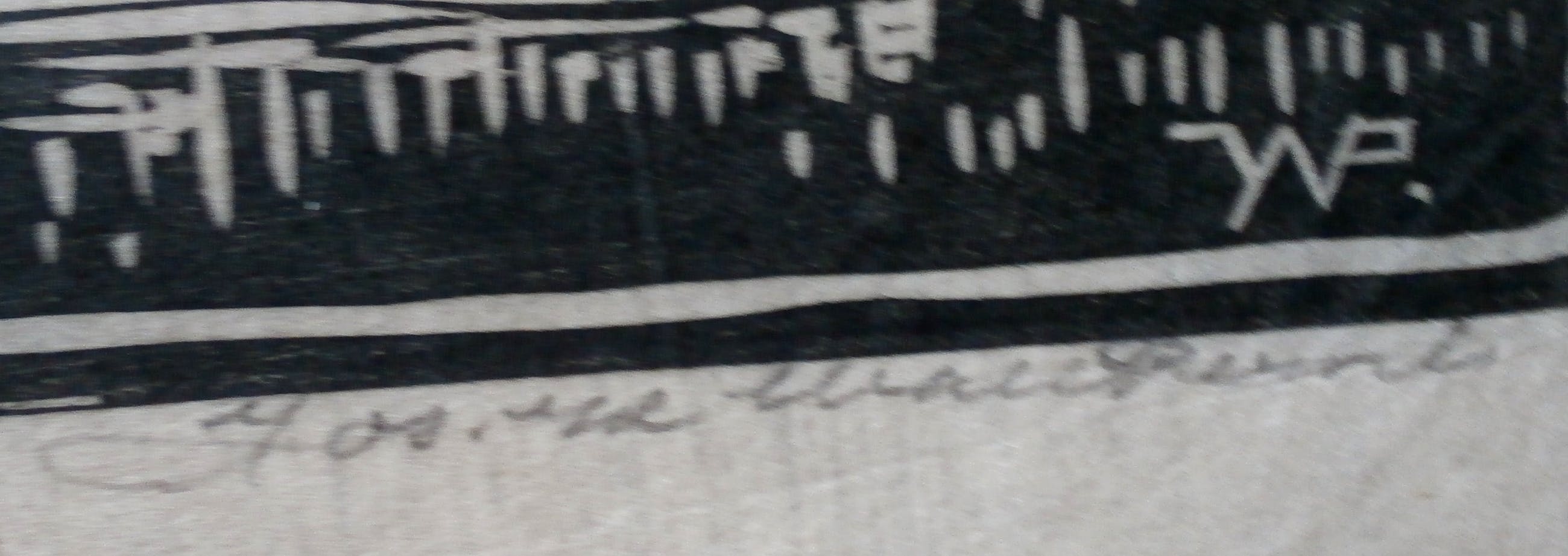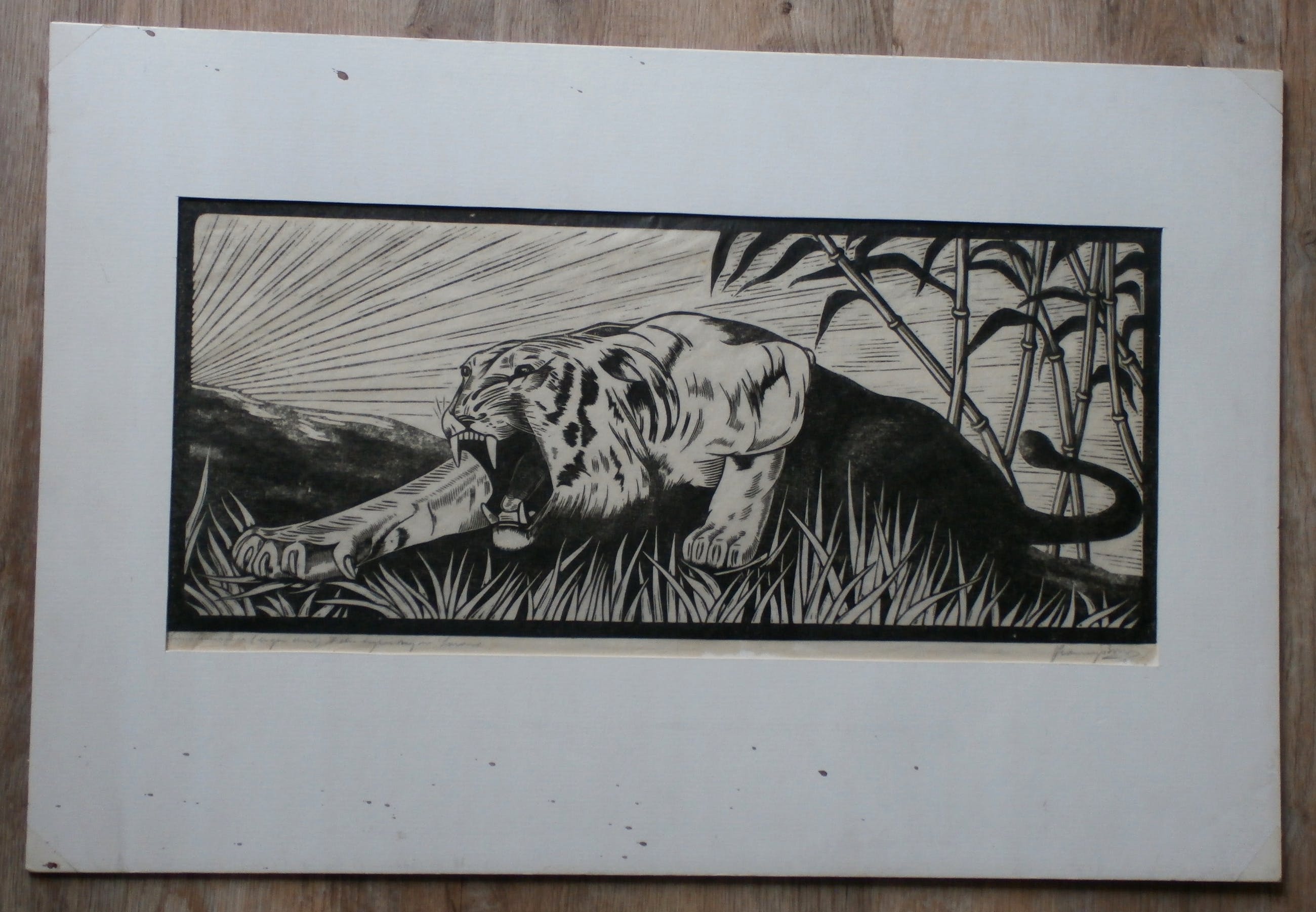 Houtsnede van Jac. de Beer. Titel: onbekend. Afmetingen blad: H47 x B70 cm. Afmetingen voorstelling: H25 x b55 cm. Het werk is, rechtsonder, met potlood gesigneerd. De authenticiteit van het aangeboden werk wordt voor 100% gegarandeerd. Een certificaat van echtheid kan, op aanvraag, worden meegestuurd. In goede conditie.