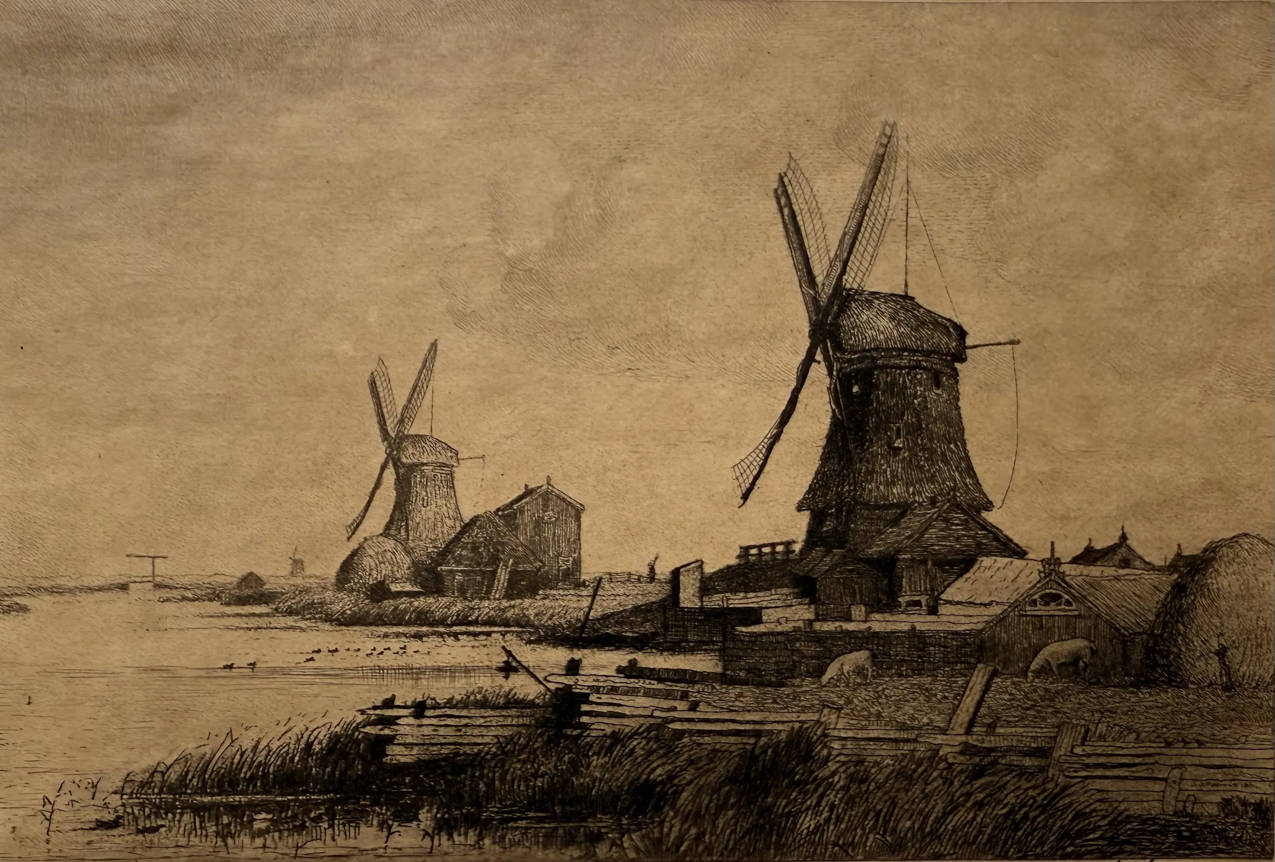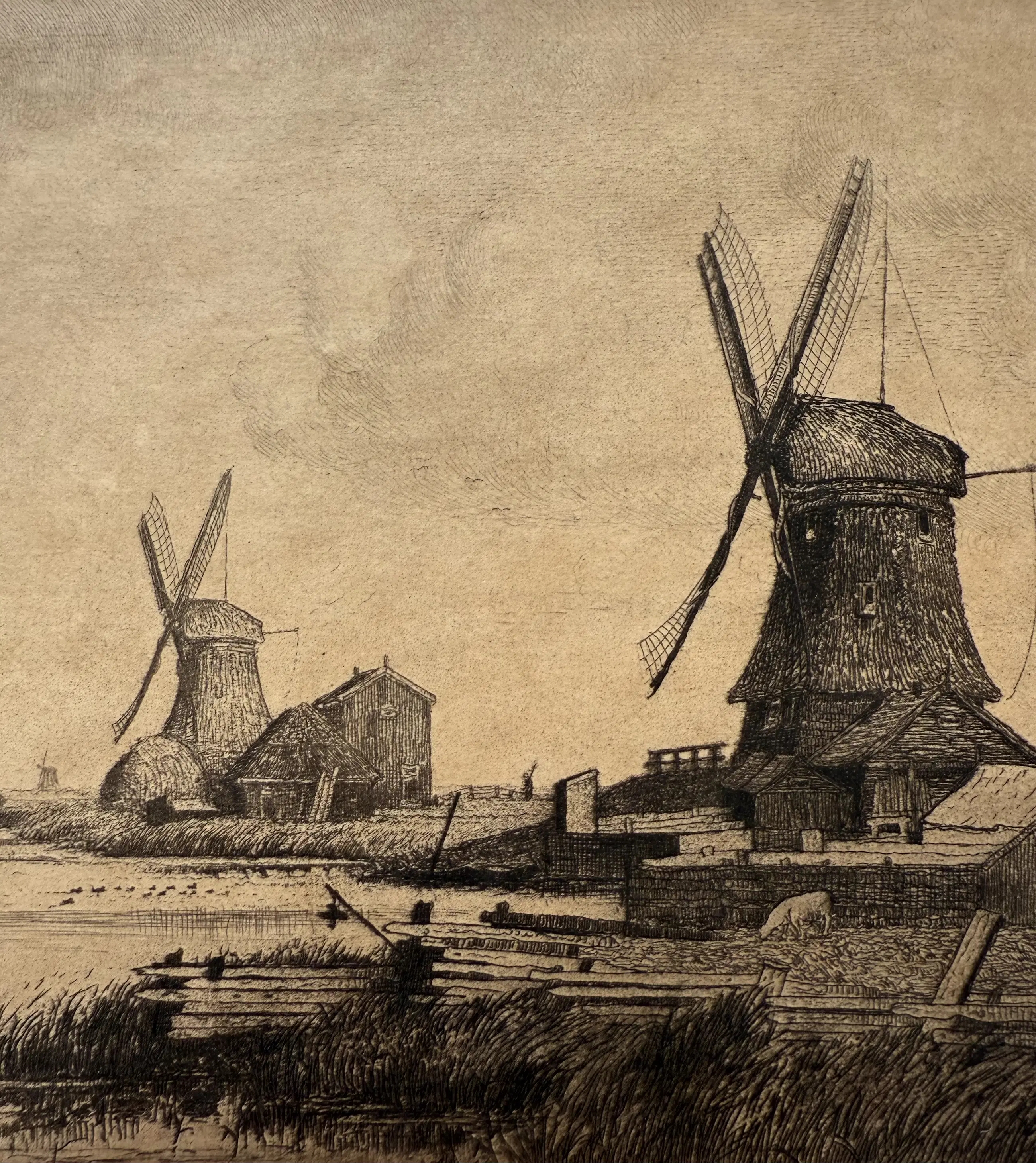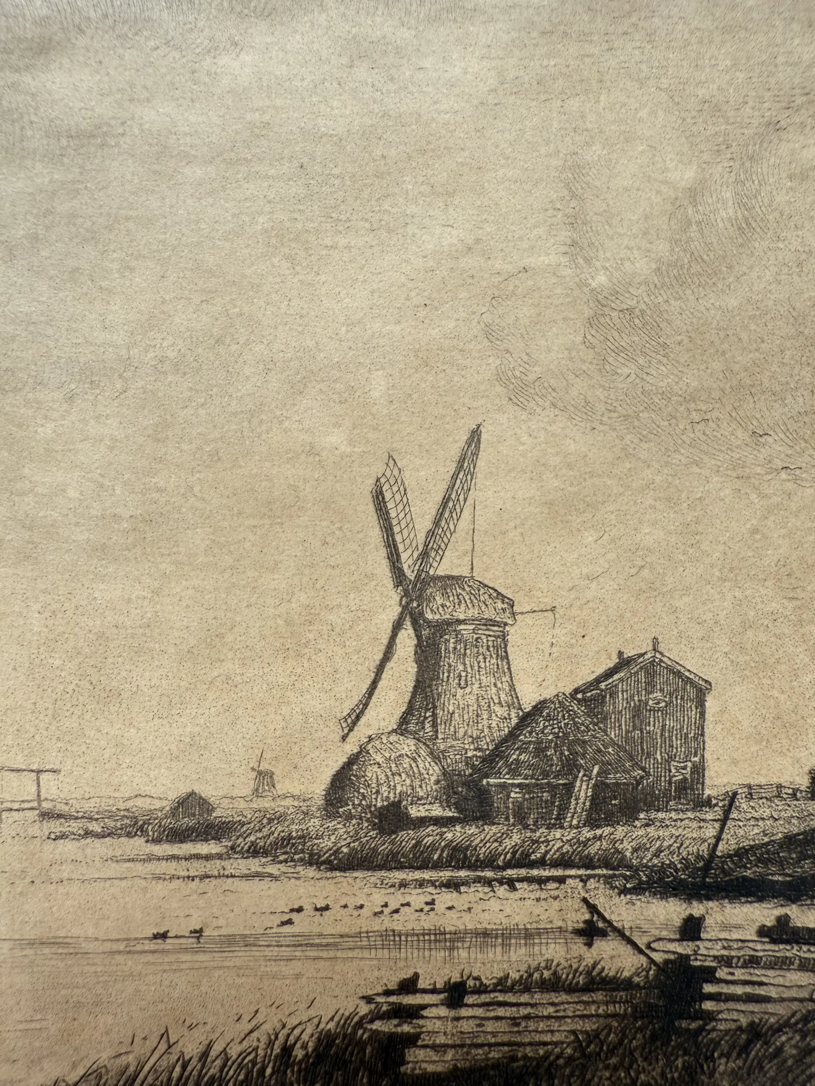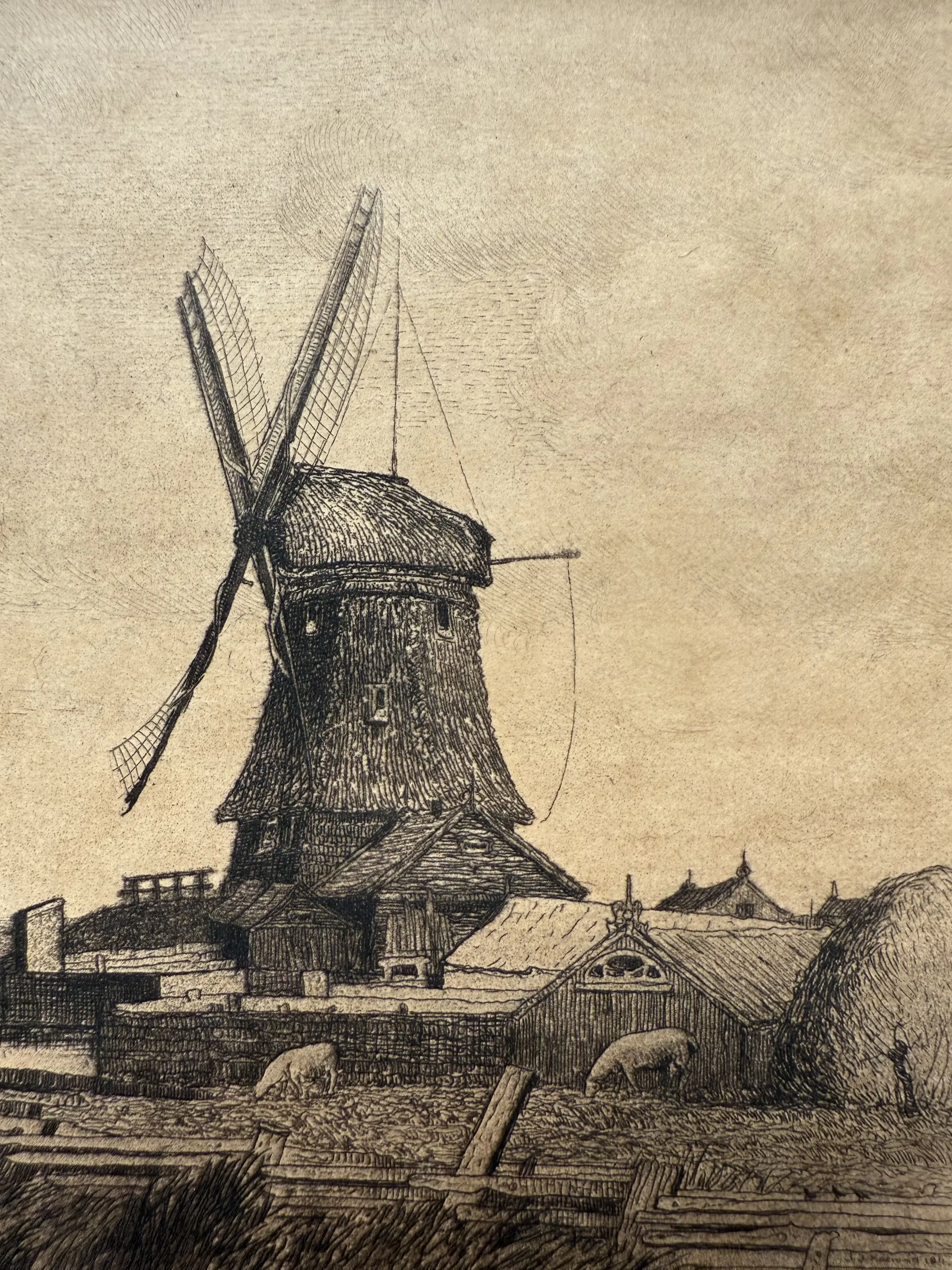 Jac. J. Koeman - handgesigneerde ets | 'Molens in waterland bij Edam'
