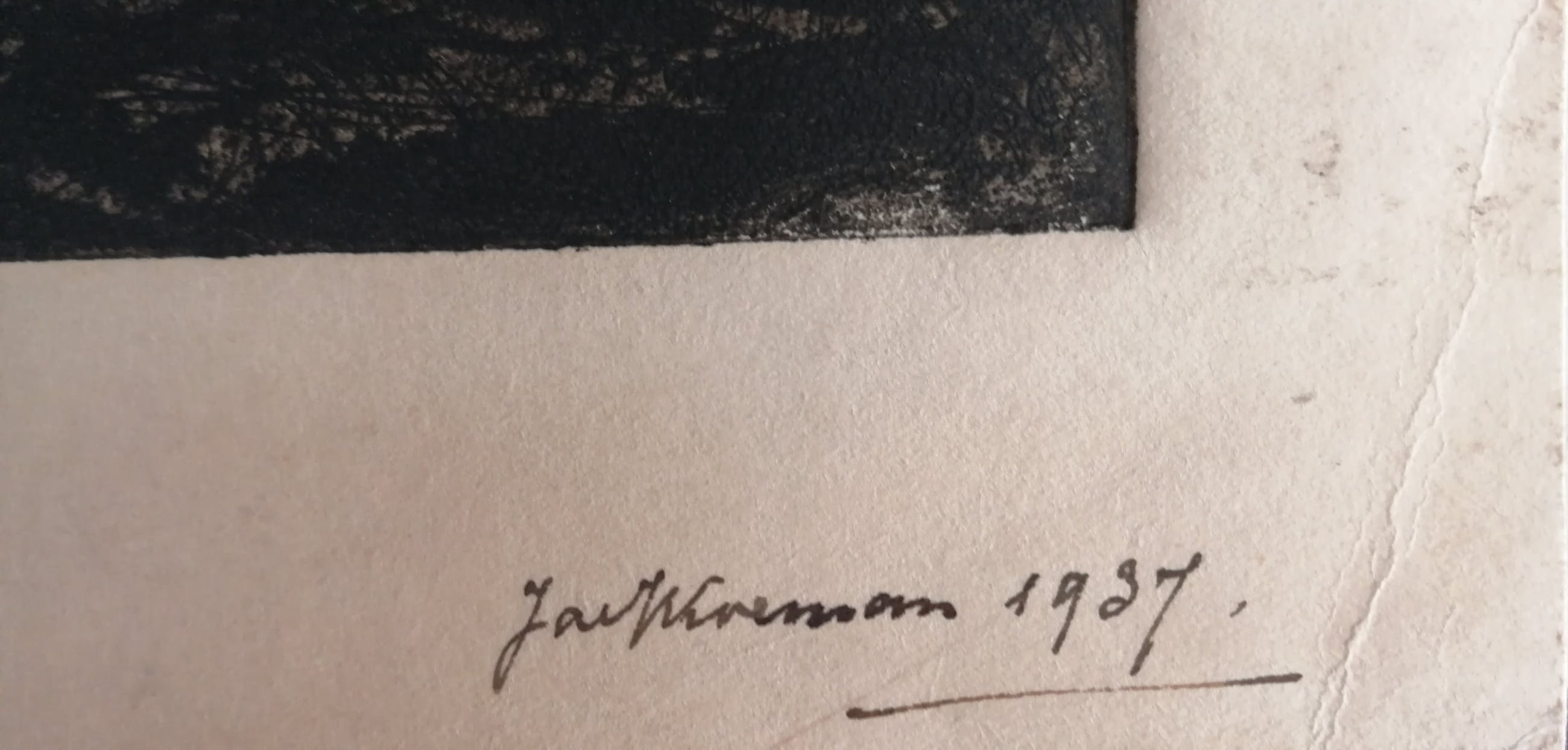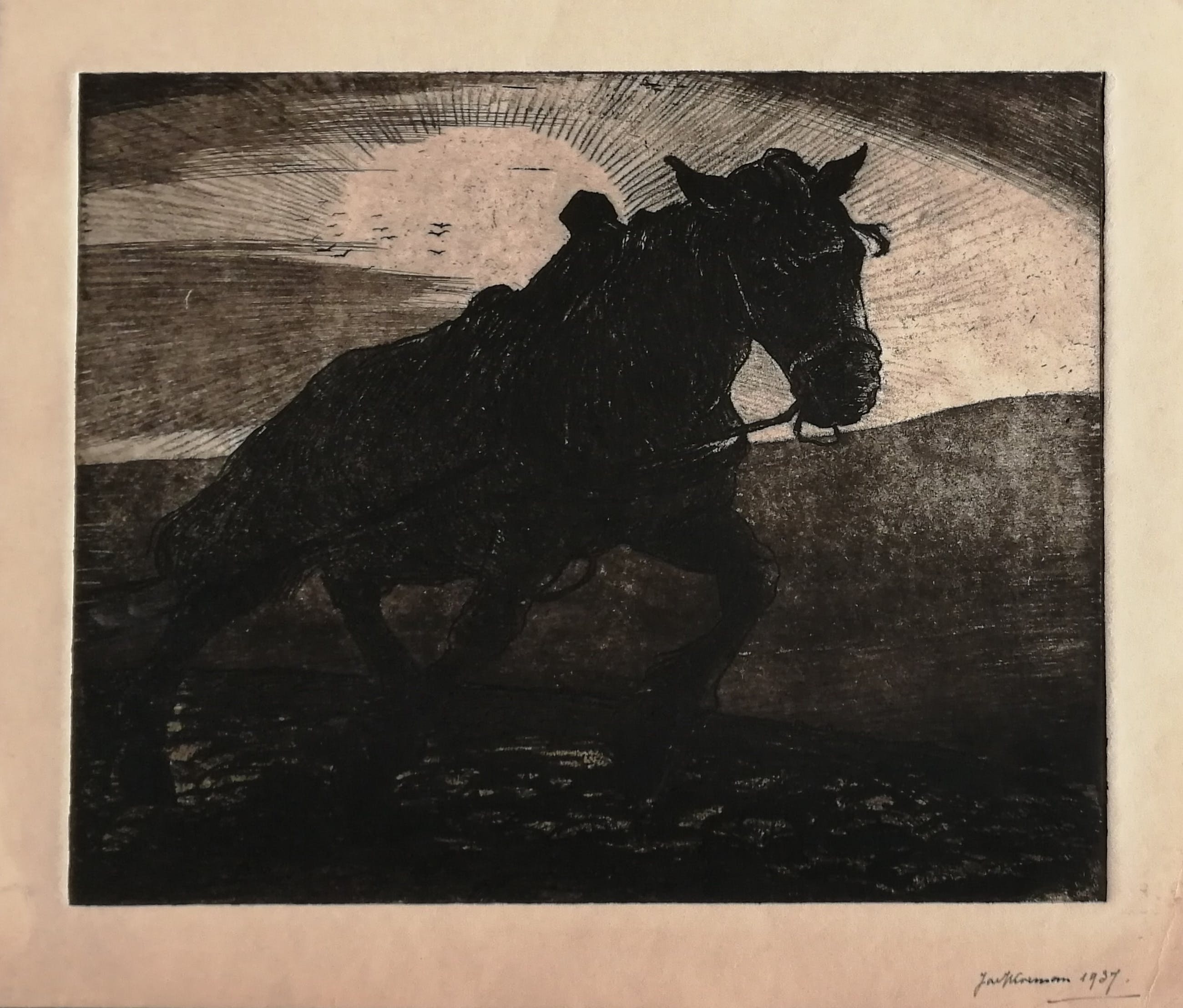 Ets uit 1937.Inkt gesigneerd en gedateerd rechtsonder.Beeldmaat 26,5x32,5 cm.Bladmaat 32,5x38 cm.Losbladig.