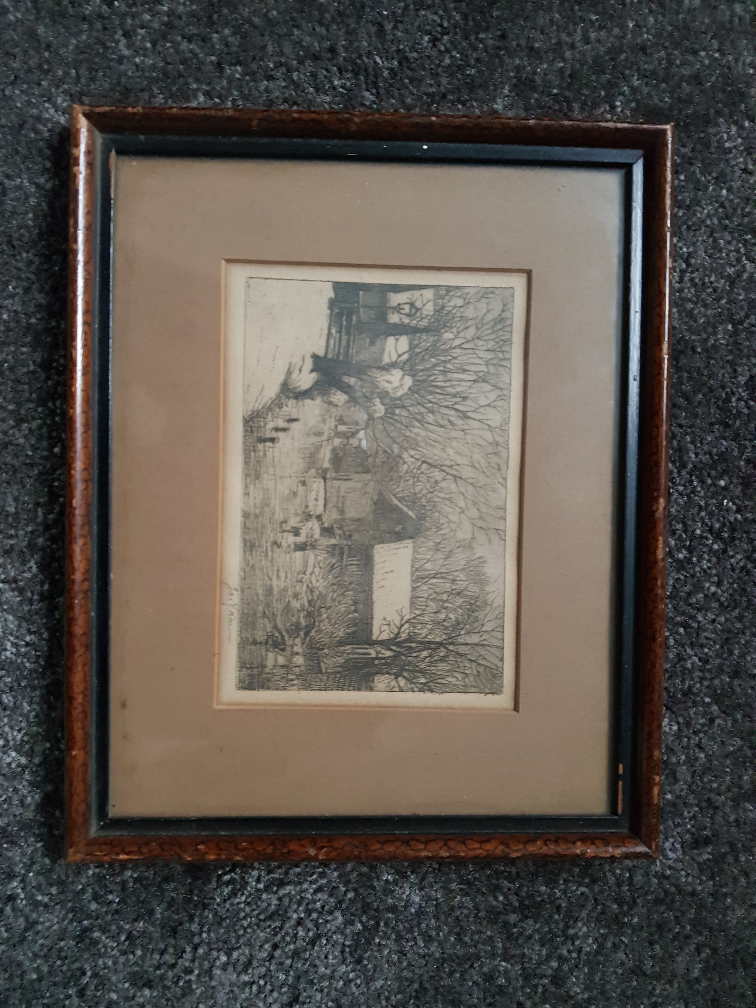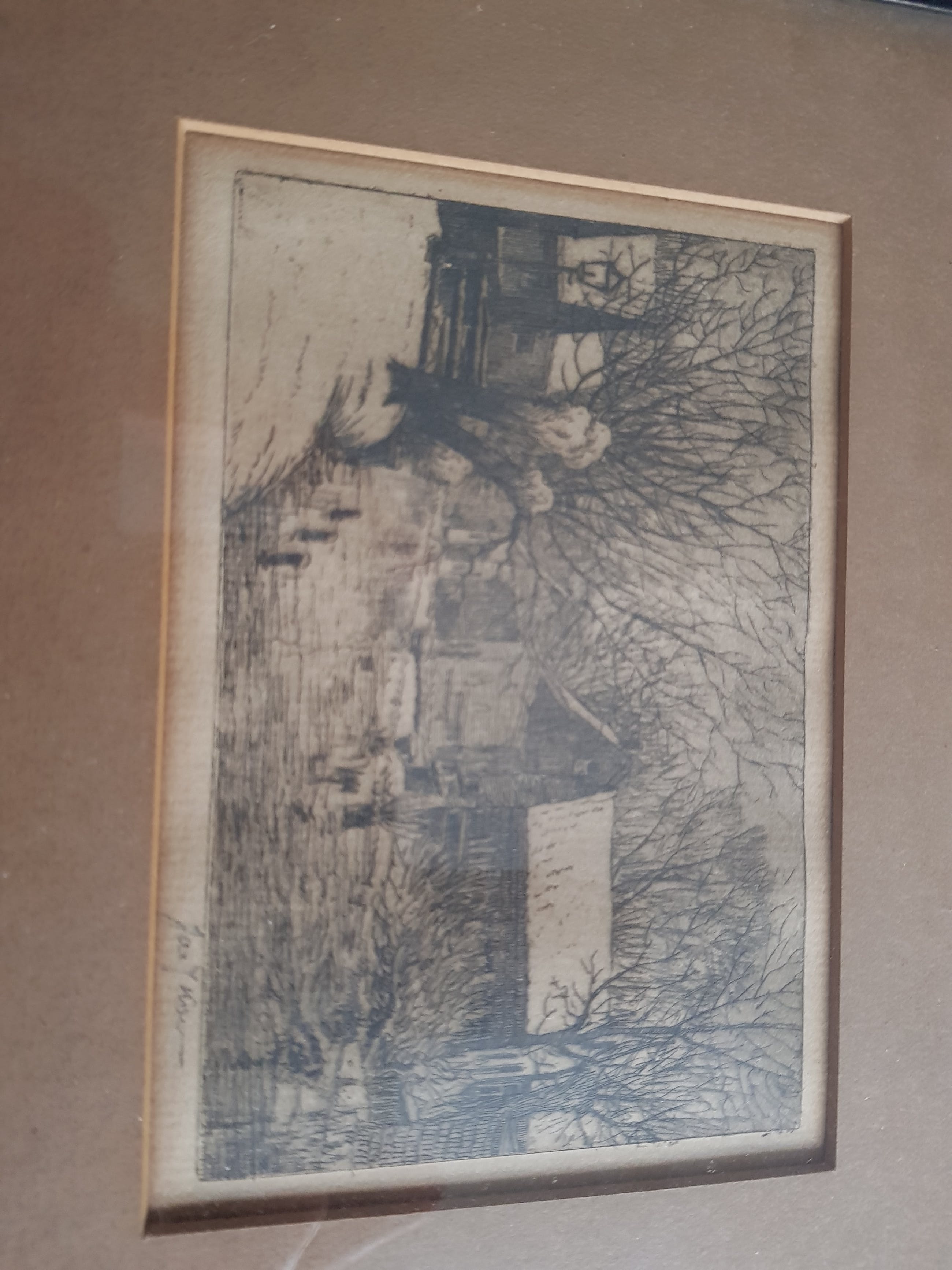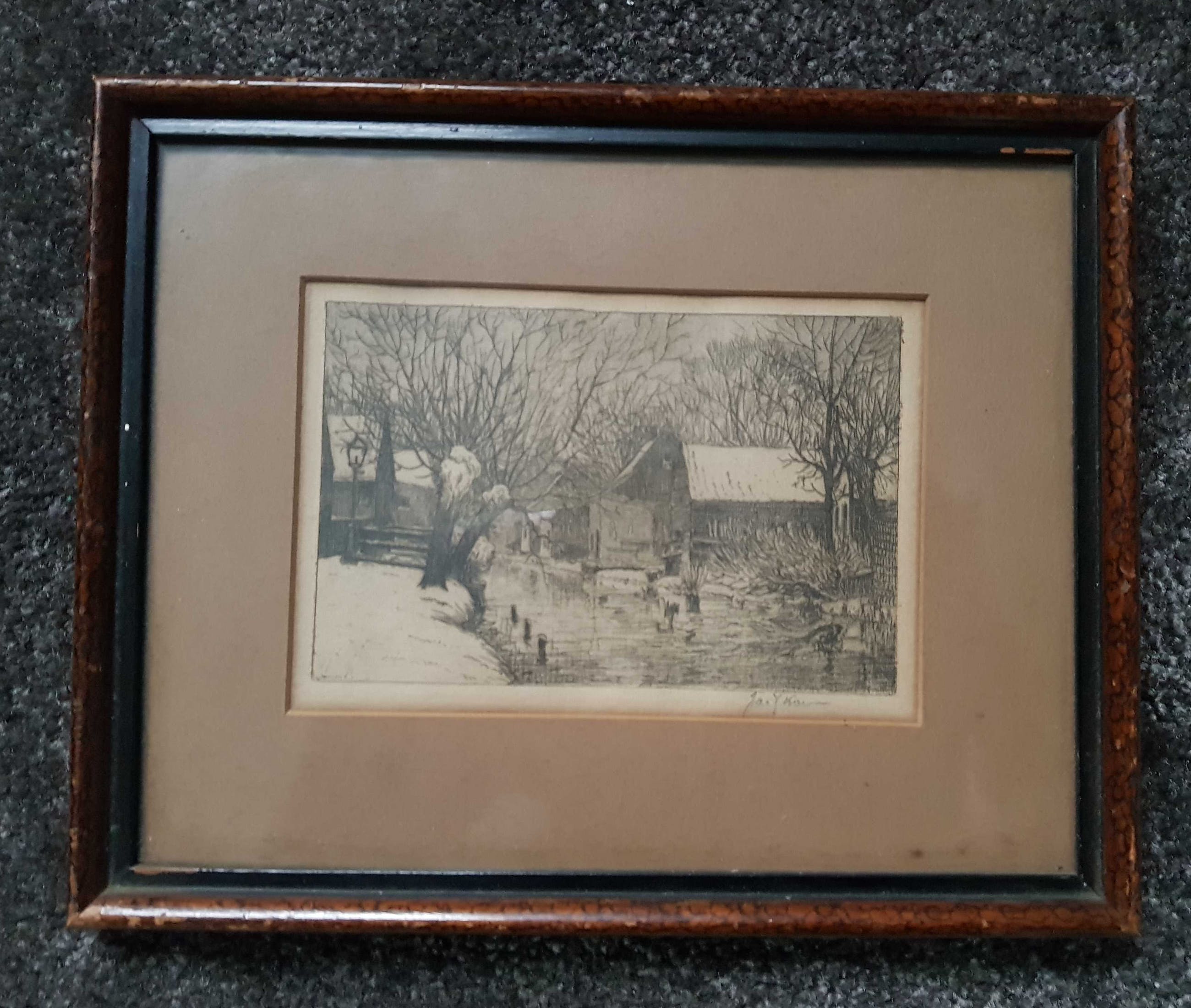 Sneeuwets. Mooie, kleine potlood gesigneerde ets. Signatuur ook in de plaat. Dubbel gesigneerd dus.