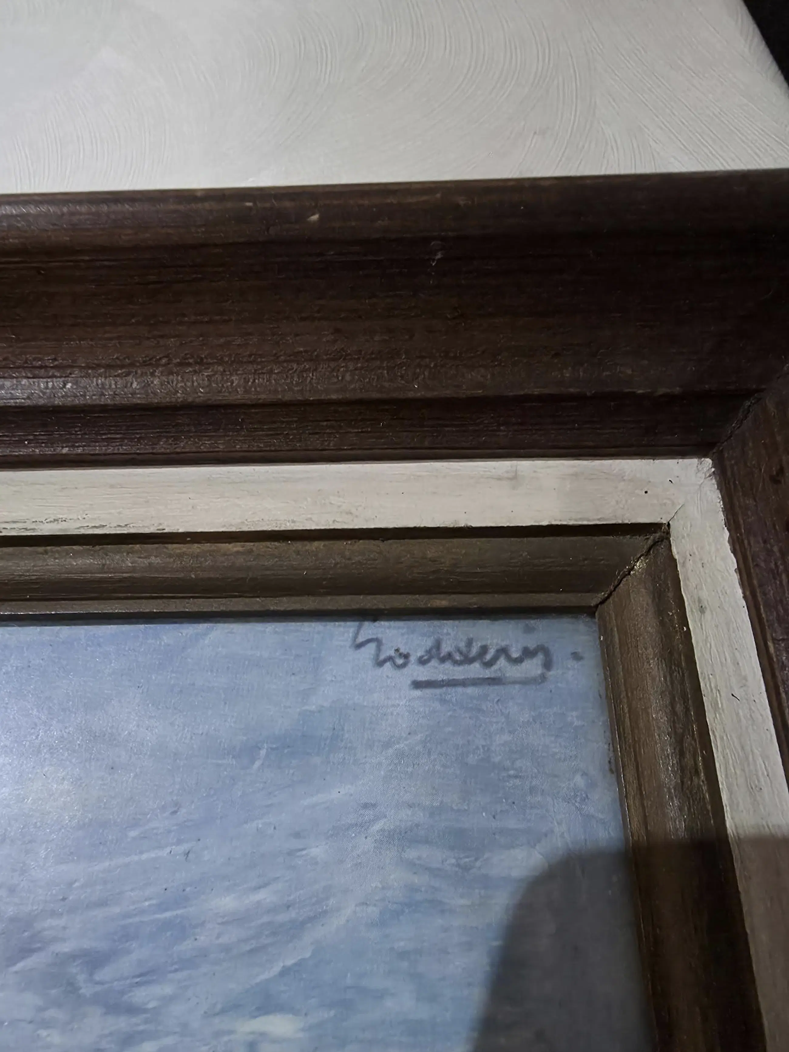 Schilderij in zeer goede staat, ingelijst achter glas.
