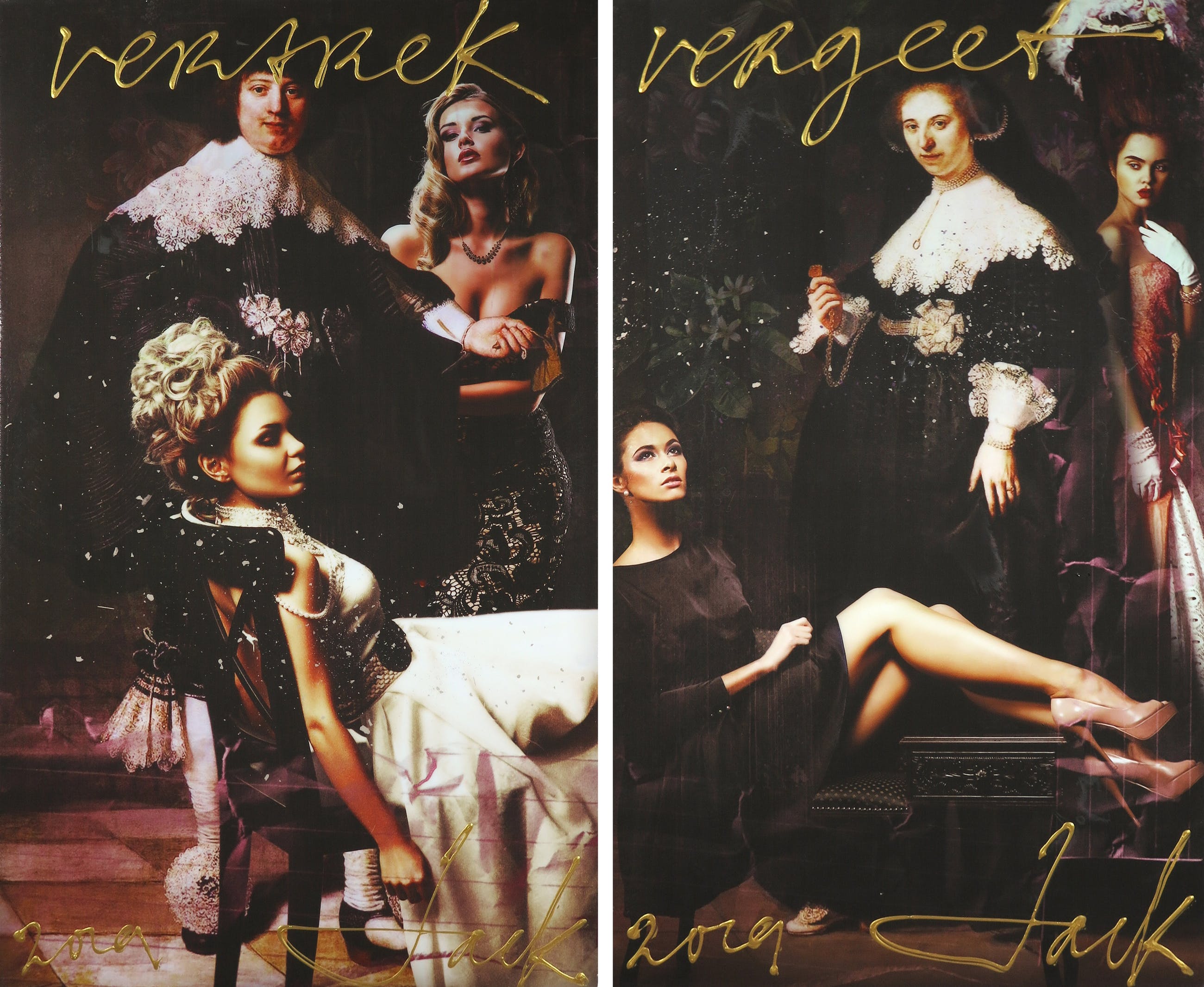 De afmetingen zijn van het twee-luik samengevoegd. Ieder werk is 60 cm breed.