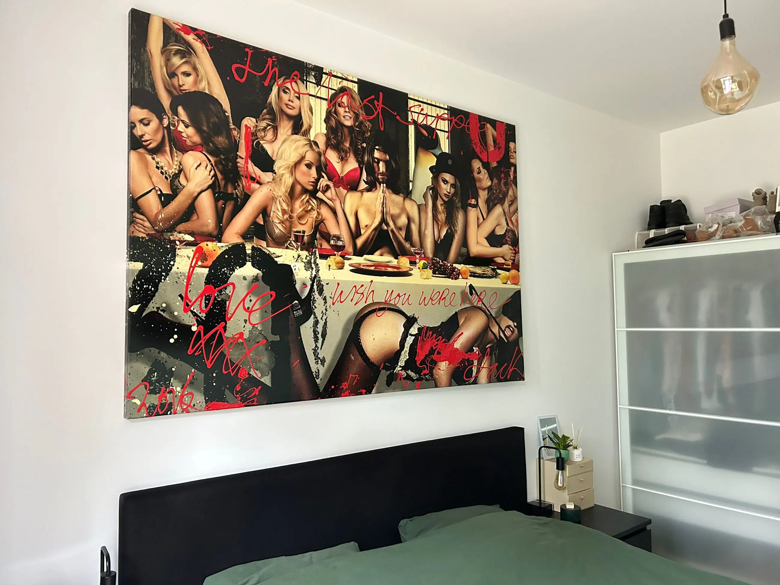 Print met royale epoxy laag en epoxy text over het doek geschreven. Uniek & hoge galeriewaarde - goede investering en kan direct aan de wand Nieuwprijs: 5975,-