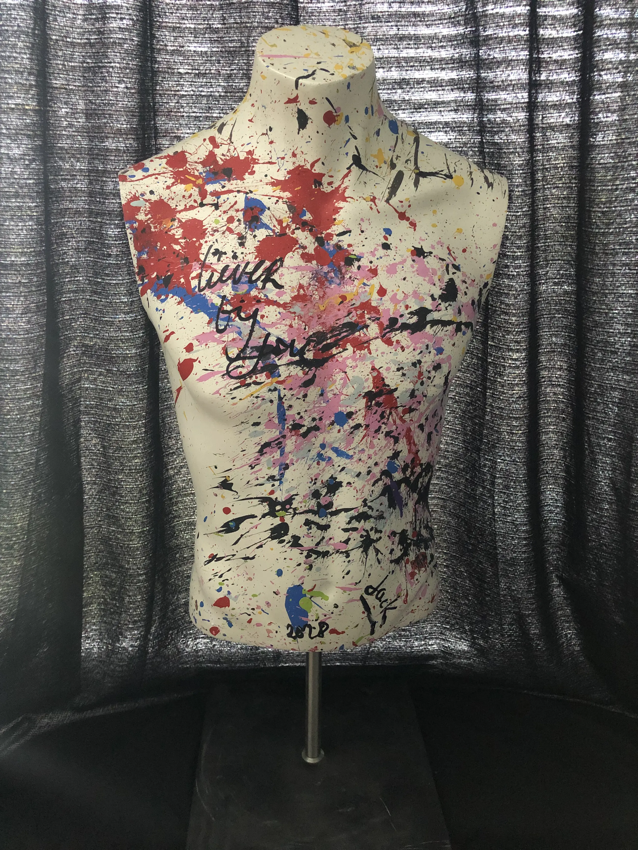 Jack Liemburg is bekend van zijn schilderijen maar heeft ook enkele objecten beschildert waaronder deze torso. Hand gesigneerd Uniek In hoogte verstelbaar