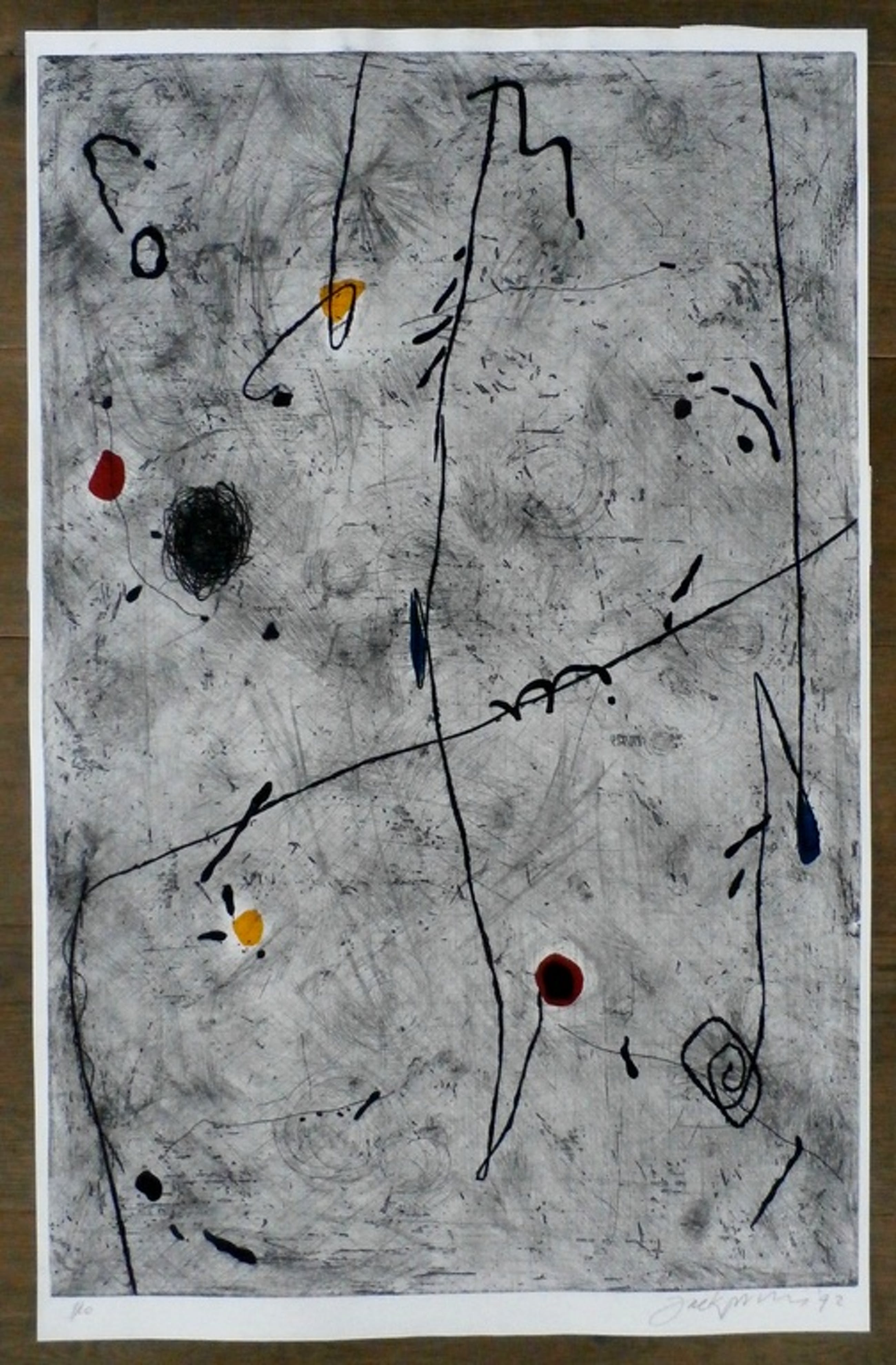 Grote ets van Jack Prins uit 1992. Nummer: 9/10. Afmetingen blad: H100 x b65. Afmetingen ets: H94 x b62,5 cm. Herkomst: collectie ABN AMRO. De authenciteit van het, aangeboden, werk wordt voor 100% gegarandeerd. Een certificaat van echtheid kan, op aanvraag, worden meegestuurd. Conditie: in goede staat. Onderaan het blad zitten 2 kleine scheurtjes. Deze tasten de voorstelling niet aan.