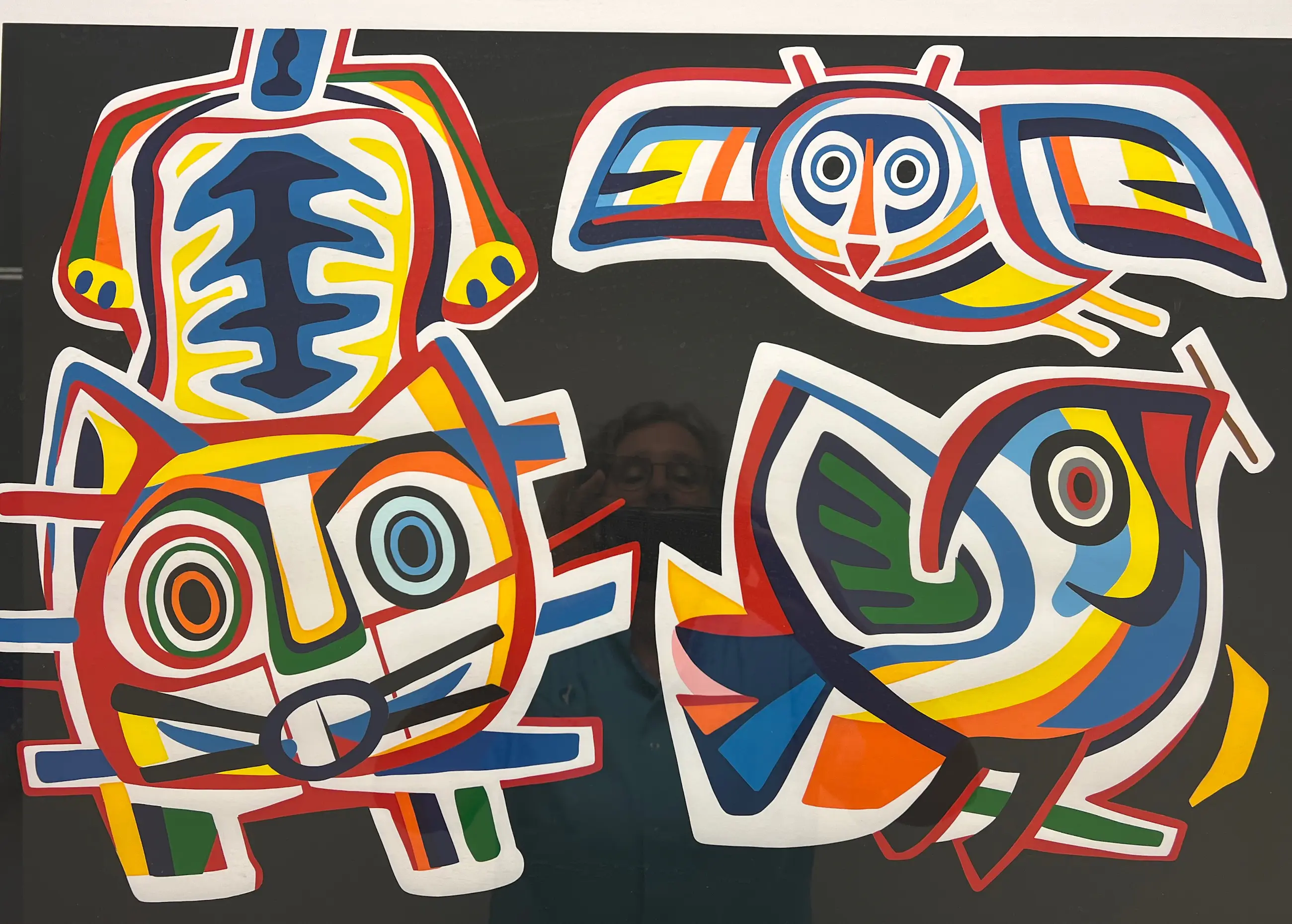 Titel: Abstracte diercompositie in felle kleuren (gesigneerde zeefdruk, 2010)