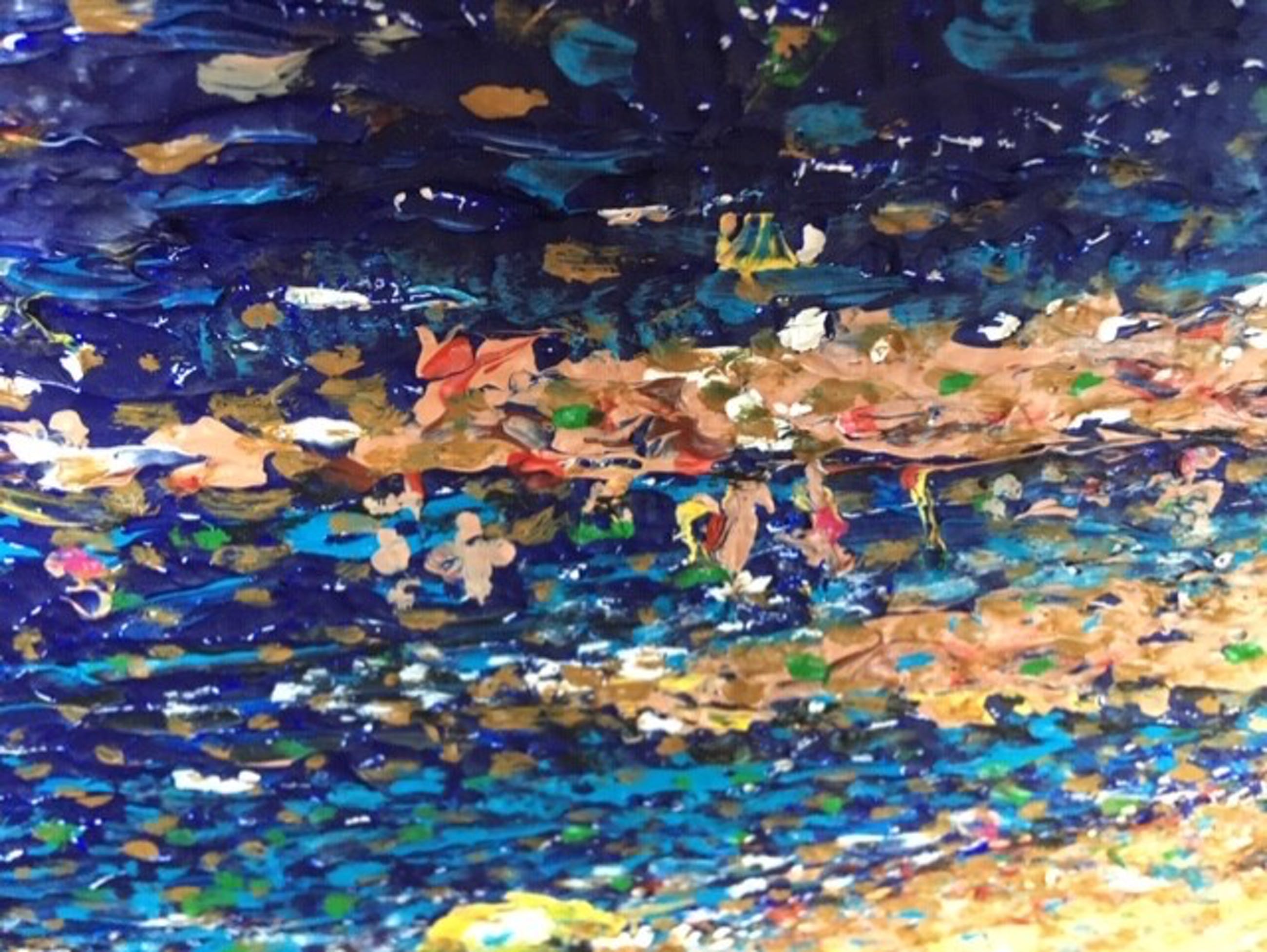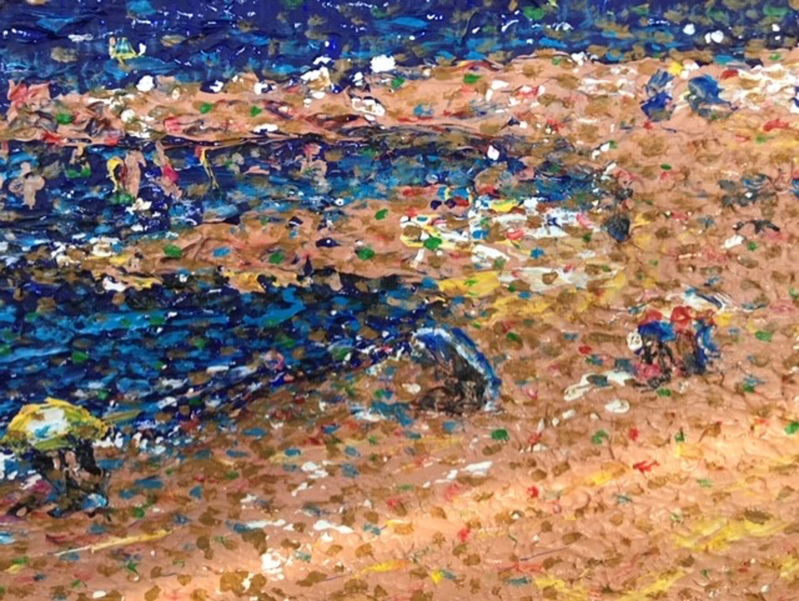 Uit de serie 'Ordinary Landscapes' van Jack Vissers: Aan het strand. Acryl op geprepareerd paneel. R.o. gesigneerd, 2017. In fraaie vergulde lijst, formaat incl. 35 x 45 cm.