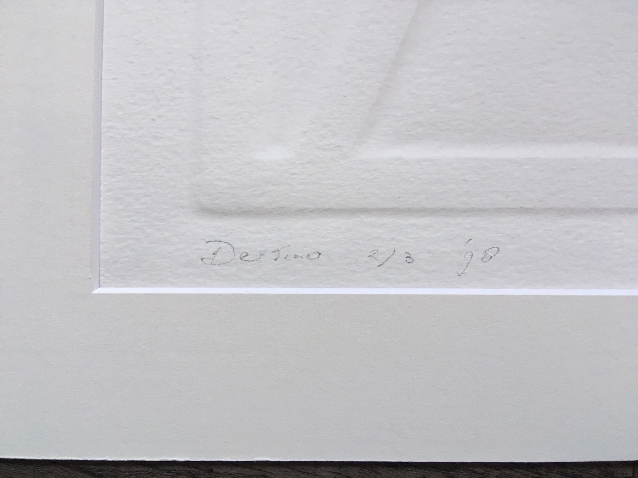 Jack Vissers - uit de serie CONSTELLATIES is dit een van de weinige preegdrukken:Destino.Betreft oplage nr. 2/3 uit 1998.Incl. passepartout formaat 60 x 42 cm.Onderin met potlood gesigneerd en genummerd.