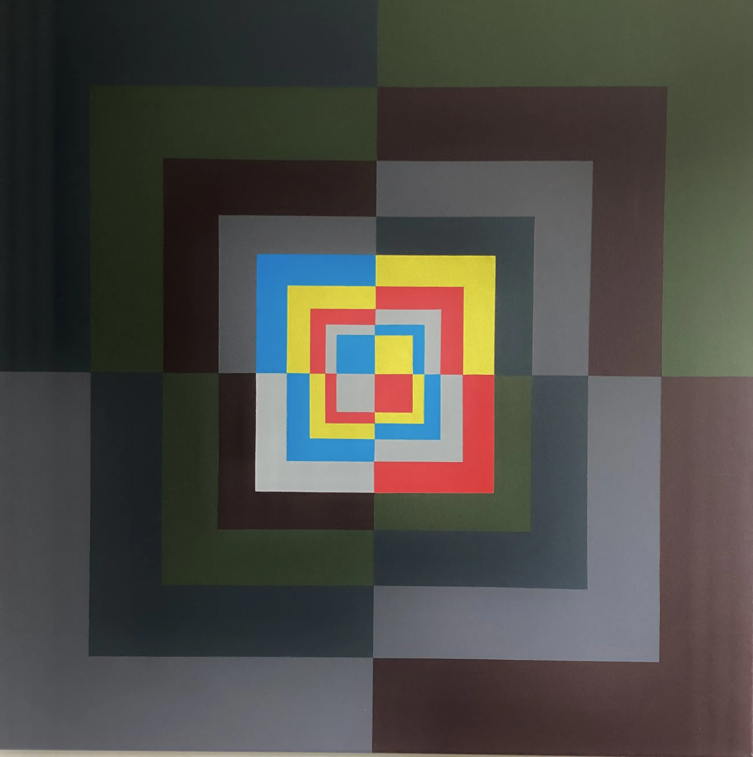 Jack Vissers Illusio Optica Forma (Quadrata II) Acryl op canvas, formaat 80 x 80 cm. Achterop hand gesigneerd, 2023.