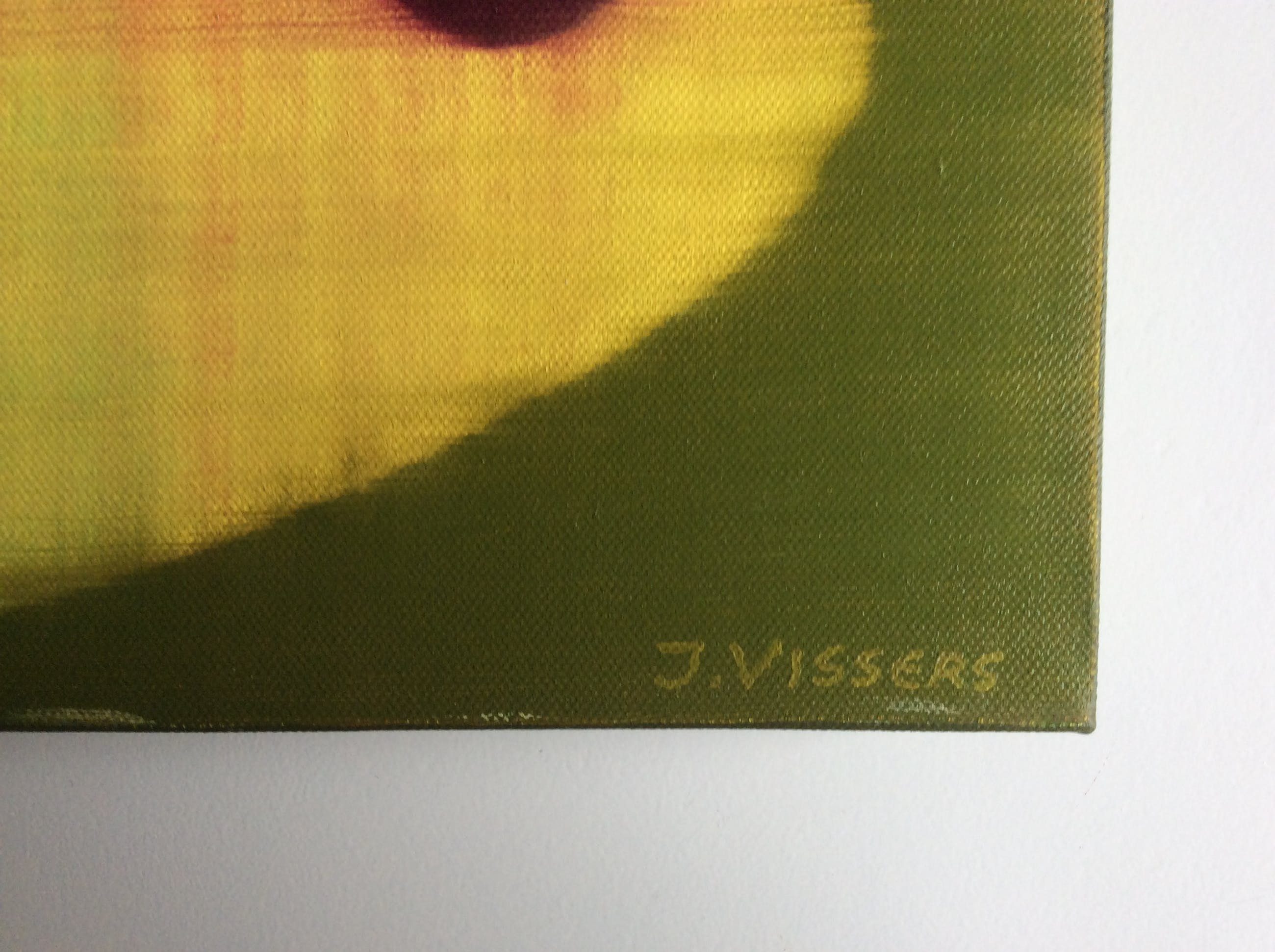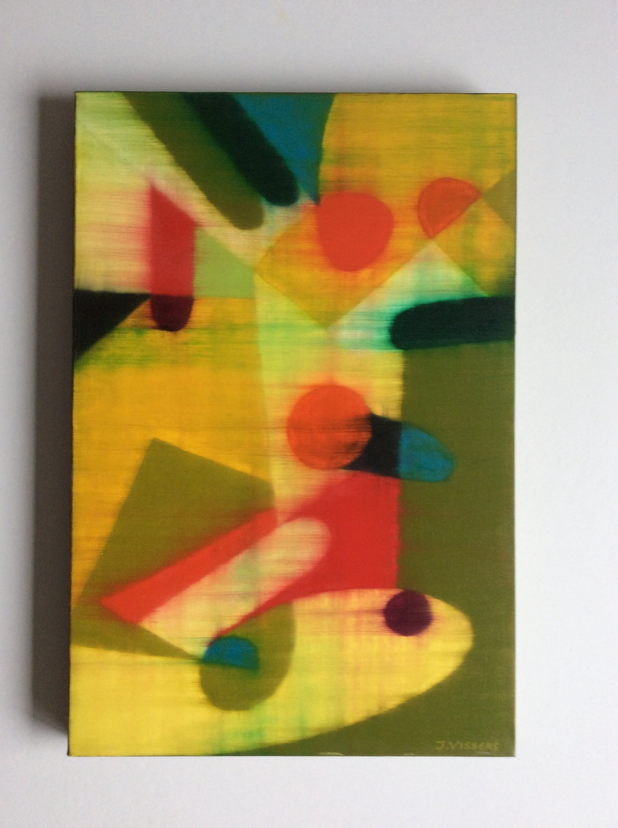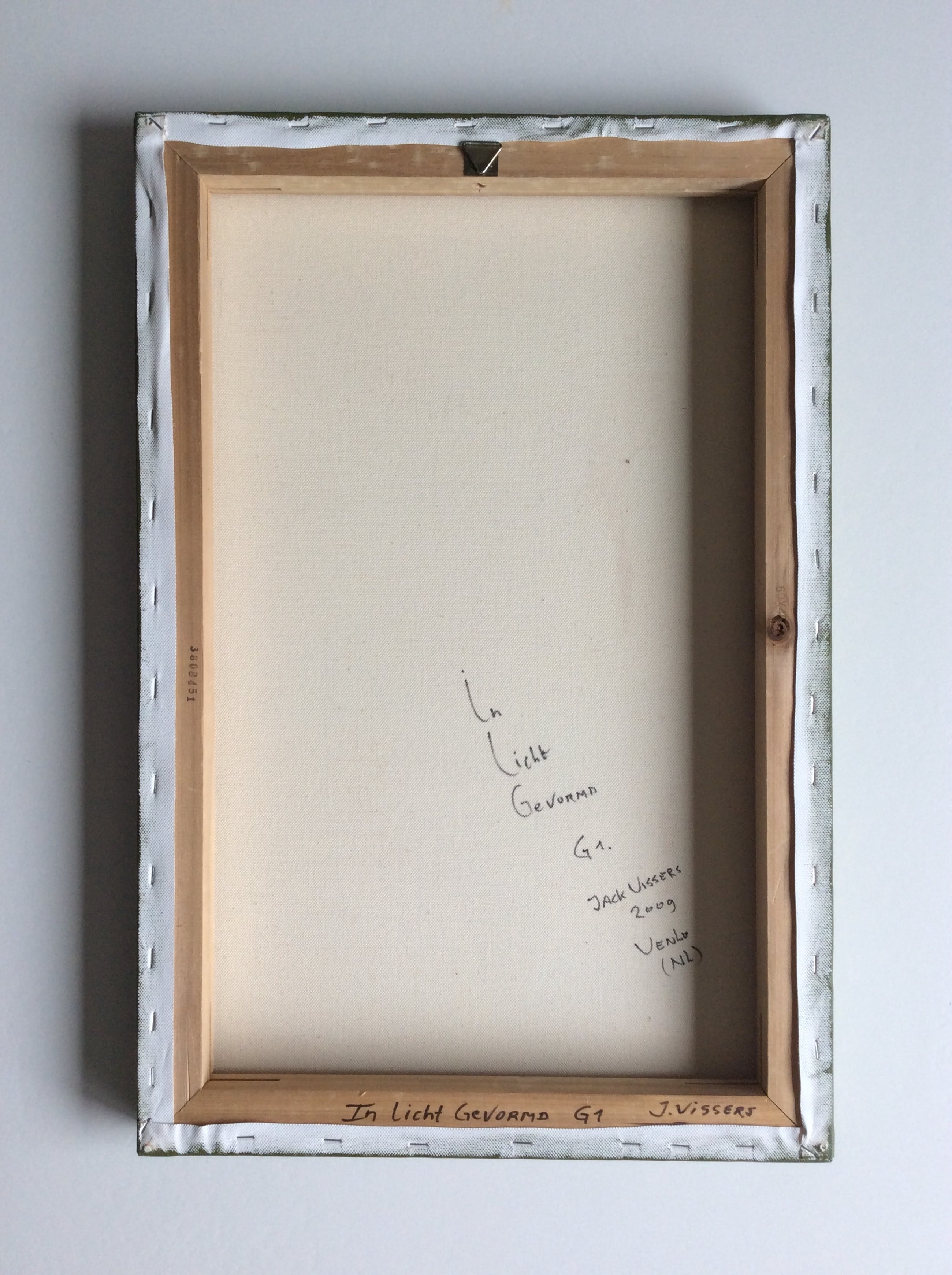 Fraai schilderij van Jack Vissers uit de serie “Constellaties”. Dit kunstwerk is getiteld ‘ In Licht Gevormd’ (geel) uit 2009. Formaat 60 x 40 x 4 cm. Voor- en achterzijde hand gesigneerd.