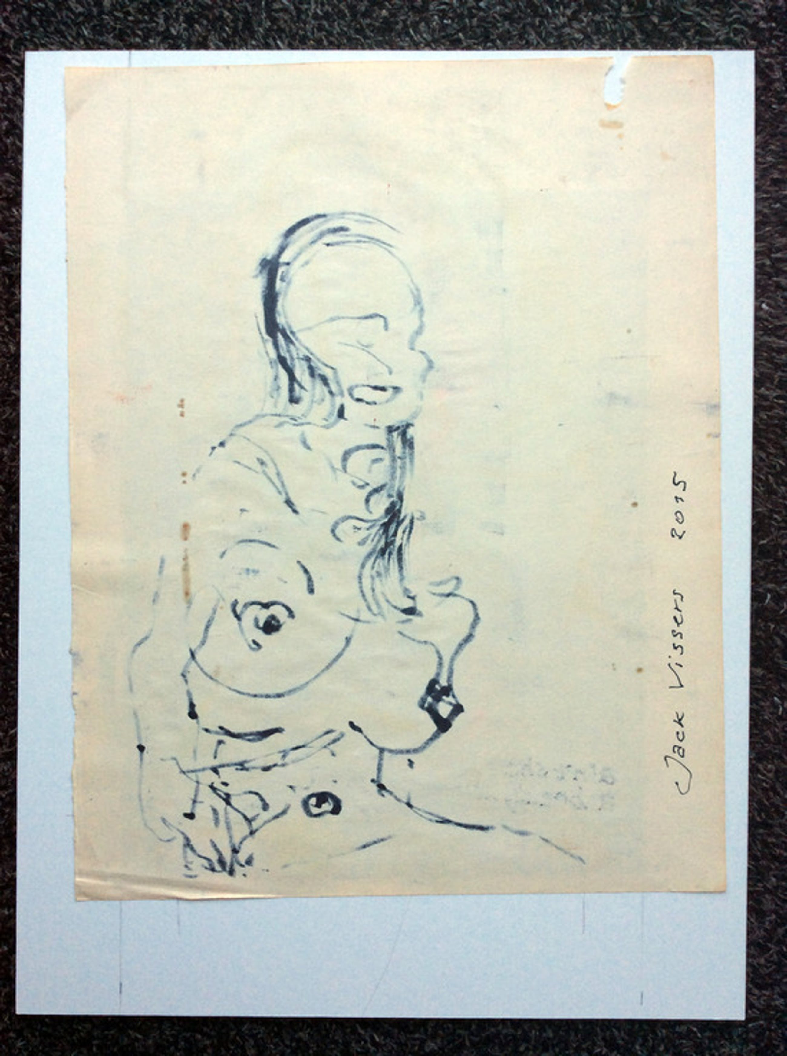 Origineel werk van Jack Vissers: Ain't she a beauty... Acryl op papier, incl. passepartout 31,5 x 42 cm. Gesigneerd op voor- en achterzijde, 2015.