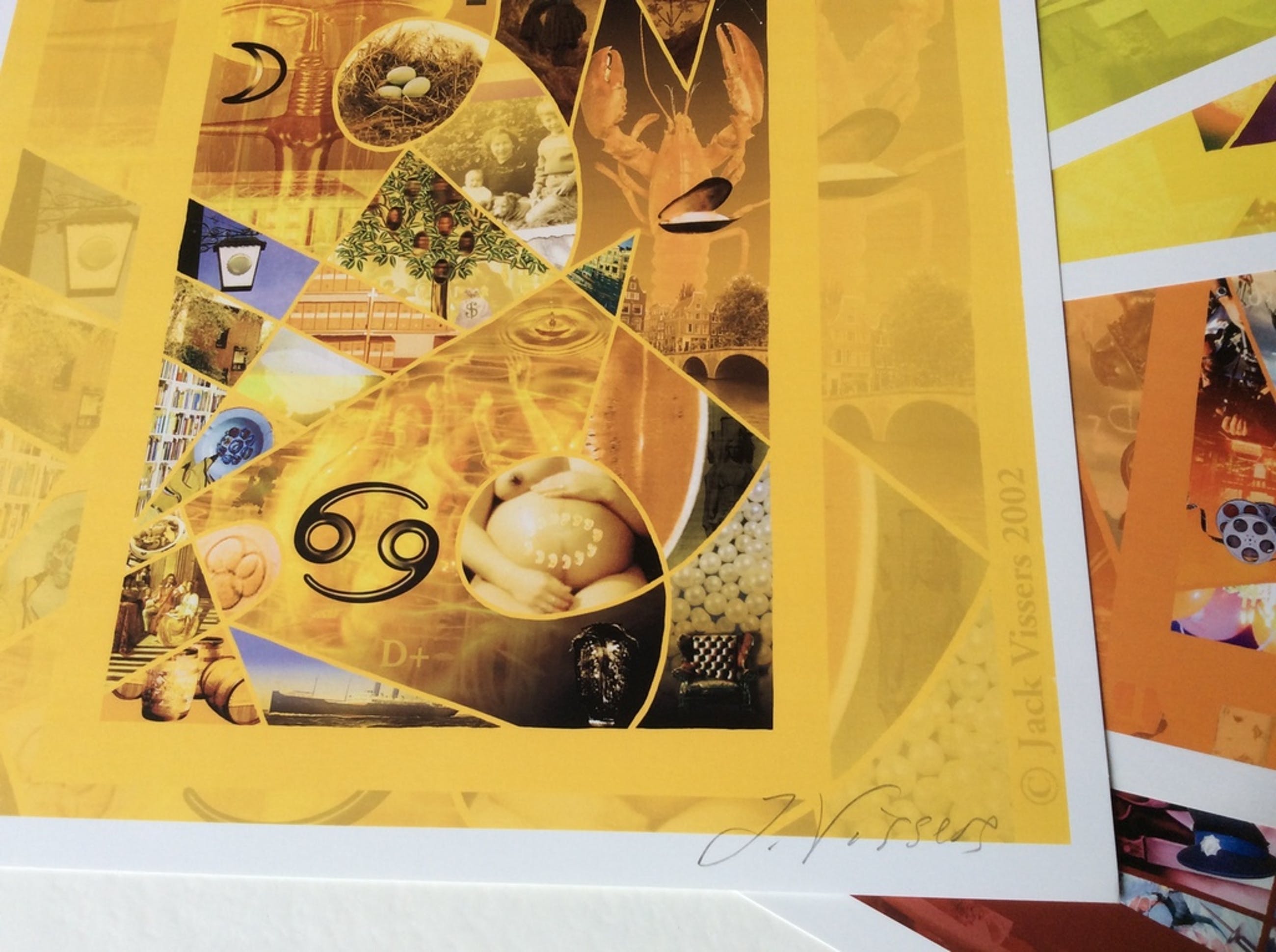 N.a.v. Deelname door Jack Vissers aan Tentoonstelling "Tussen Kunst en Kist" in museum Van Bommel Van Dam te Venlo, 2002. Uitgebrachte serie offset litho's onder de noemer "AstroArts", in kleine oplage van 50 stuks per prent. 'AstroArts' - een fotografisch project met een allegorische cyclus van 12 verschillende stadia, samengesteld volgens astrologische en artistieke principes door de eeuwen heen. Aangeboden wordt een serie van 11 handgesigneerde verschillende prints (in deze reeks ontbreekt het niet meer verkrijgbare teken Stier/Taurus). Formaat elk ca. 30 x 30 cm.