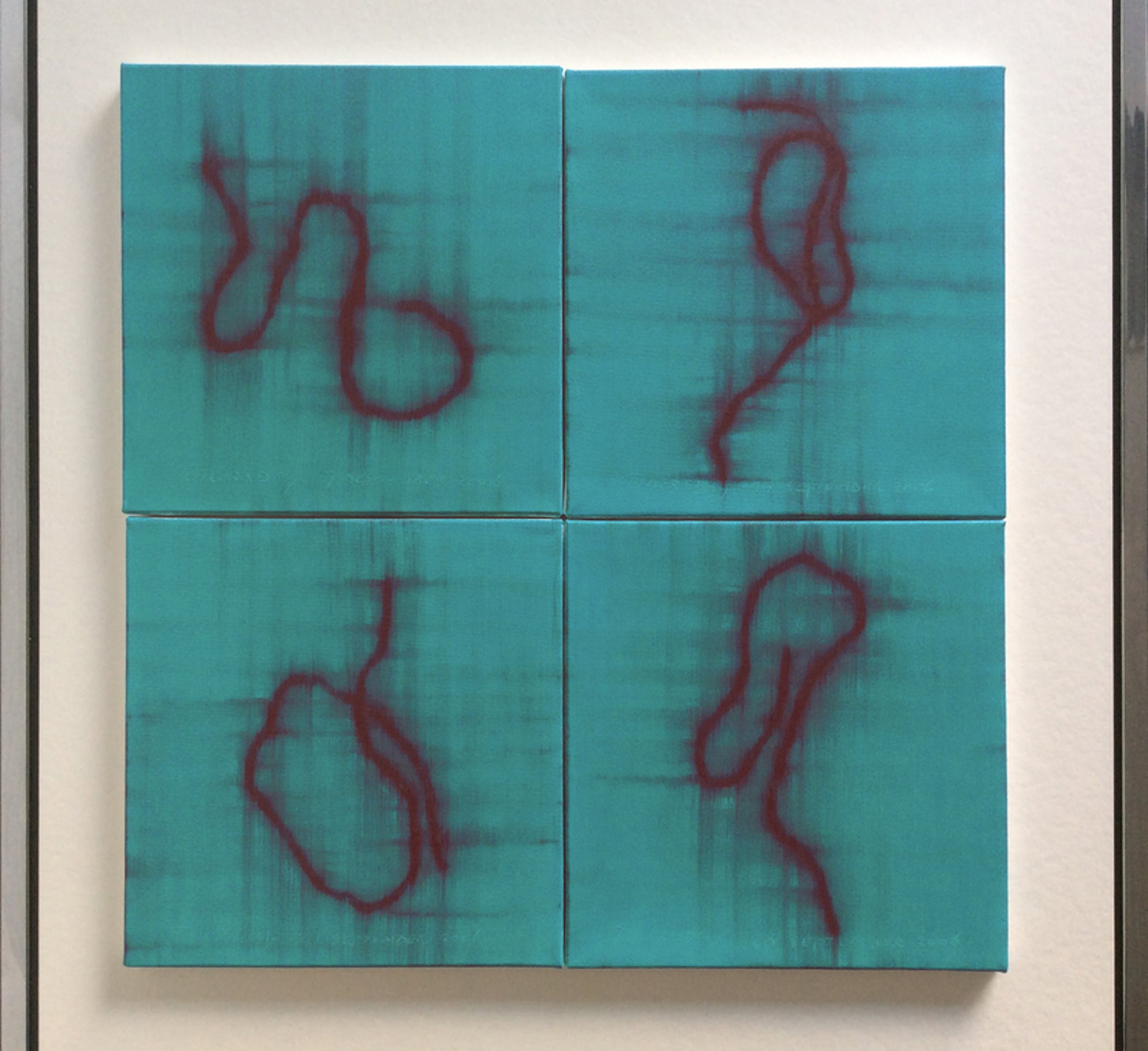 Tableau van 4 schilderijen uit het project "Day Threads" van Jack Vissers uit 2006, kleur licht blauw.
