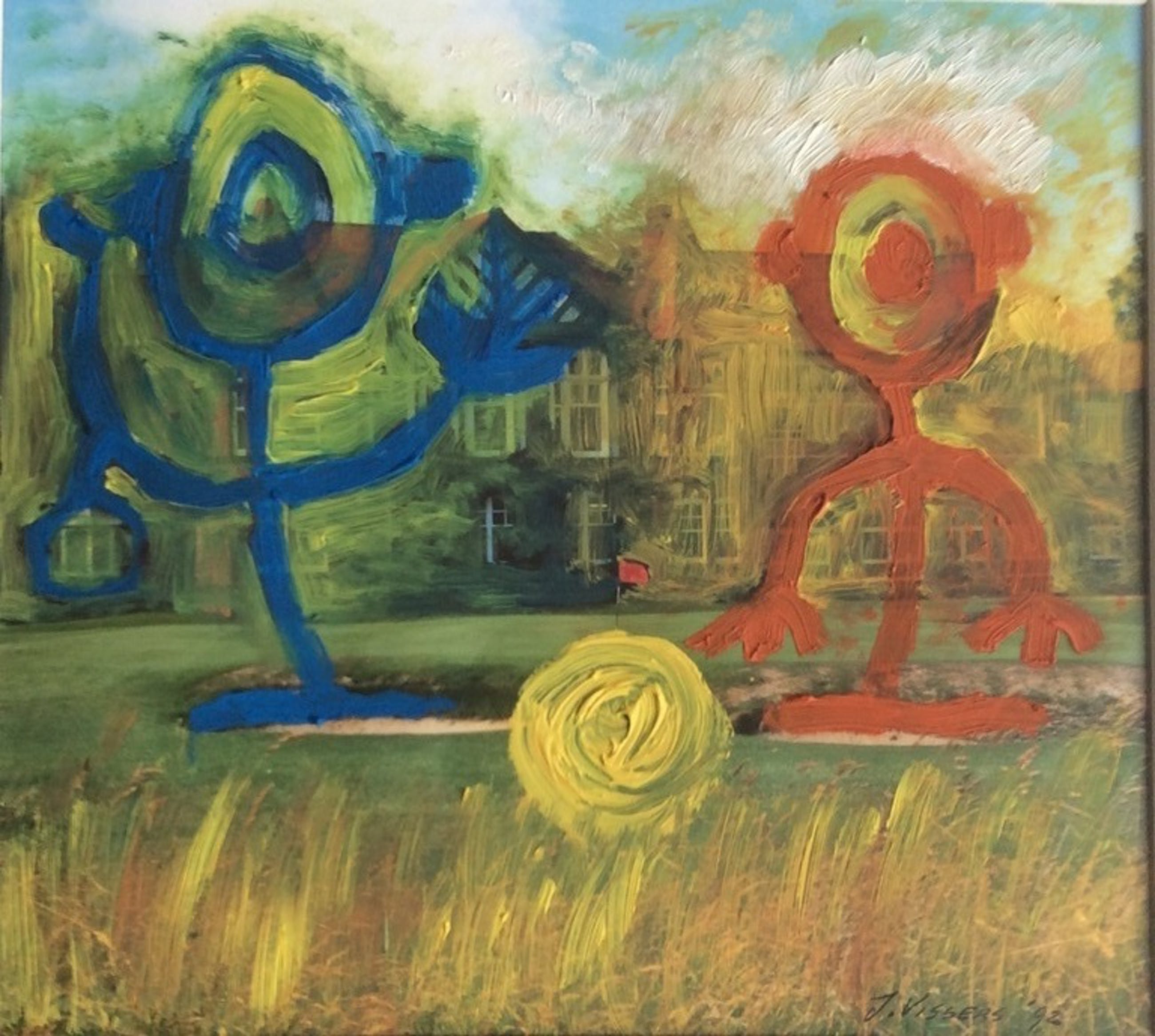 Werk uit 1992 van de Limburgse kunstenaar Jack Vissers, gemengde techniek op papier, zonder titel.