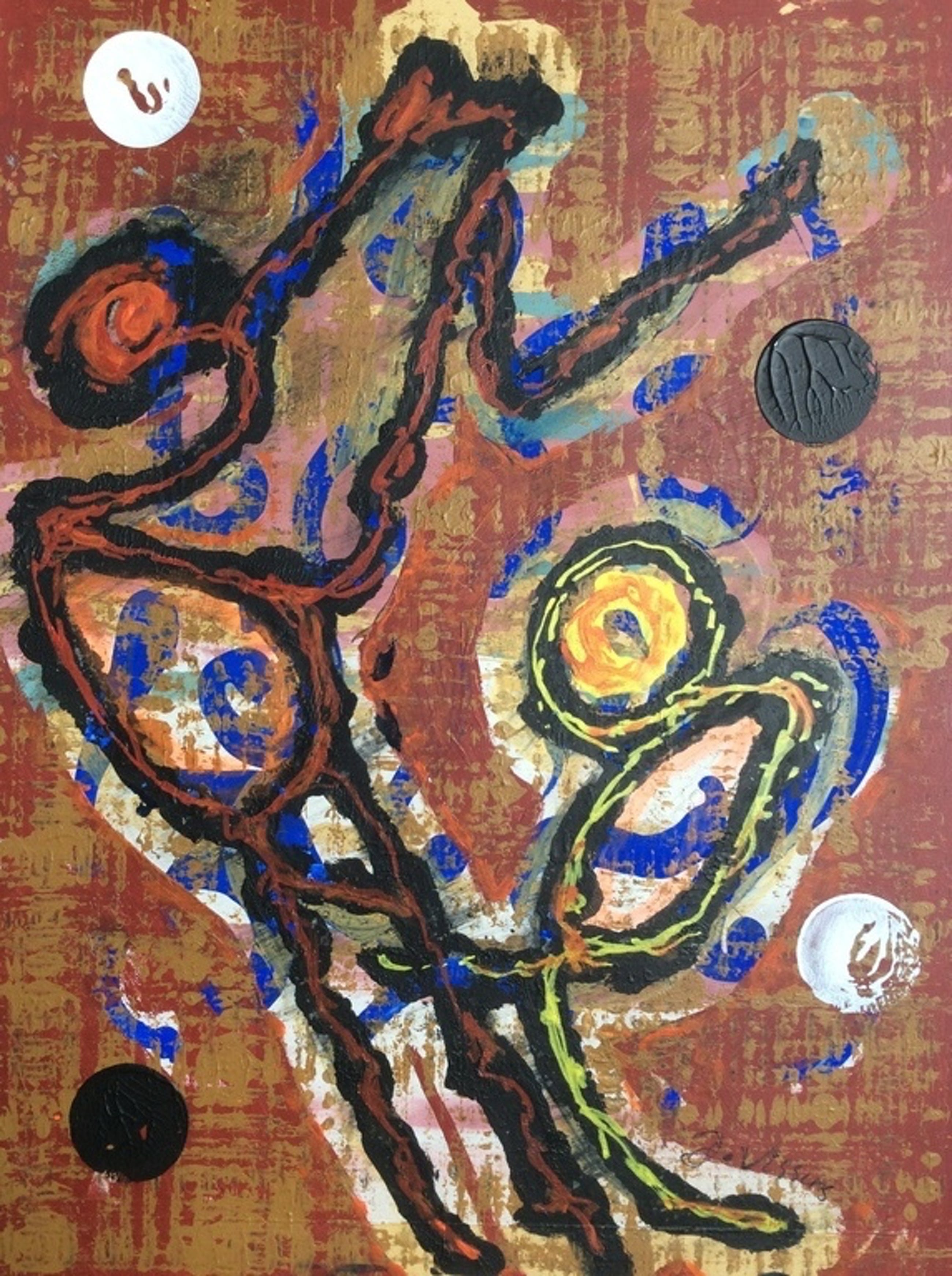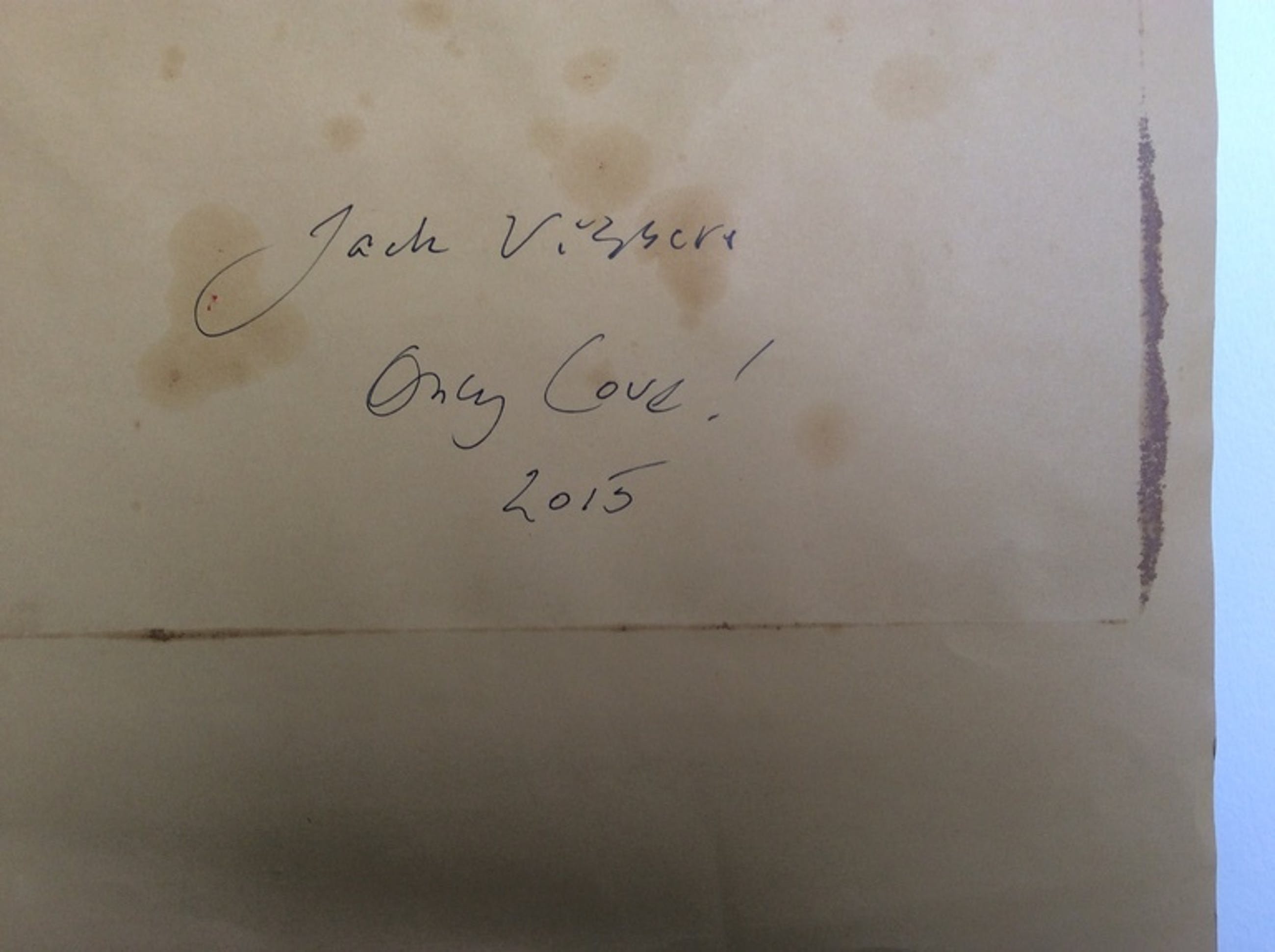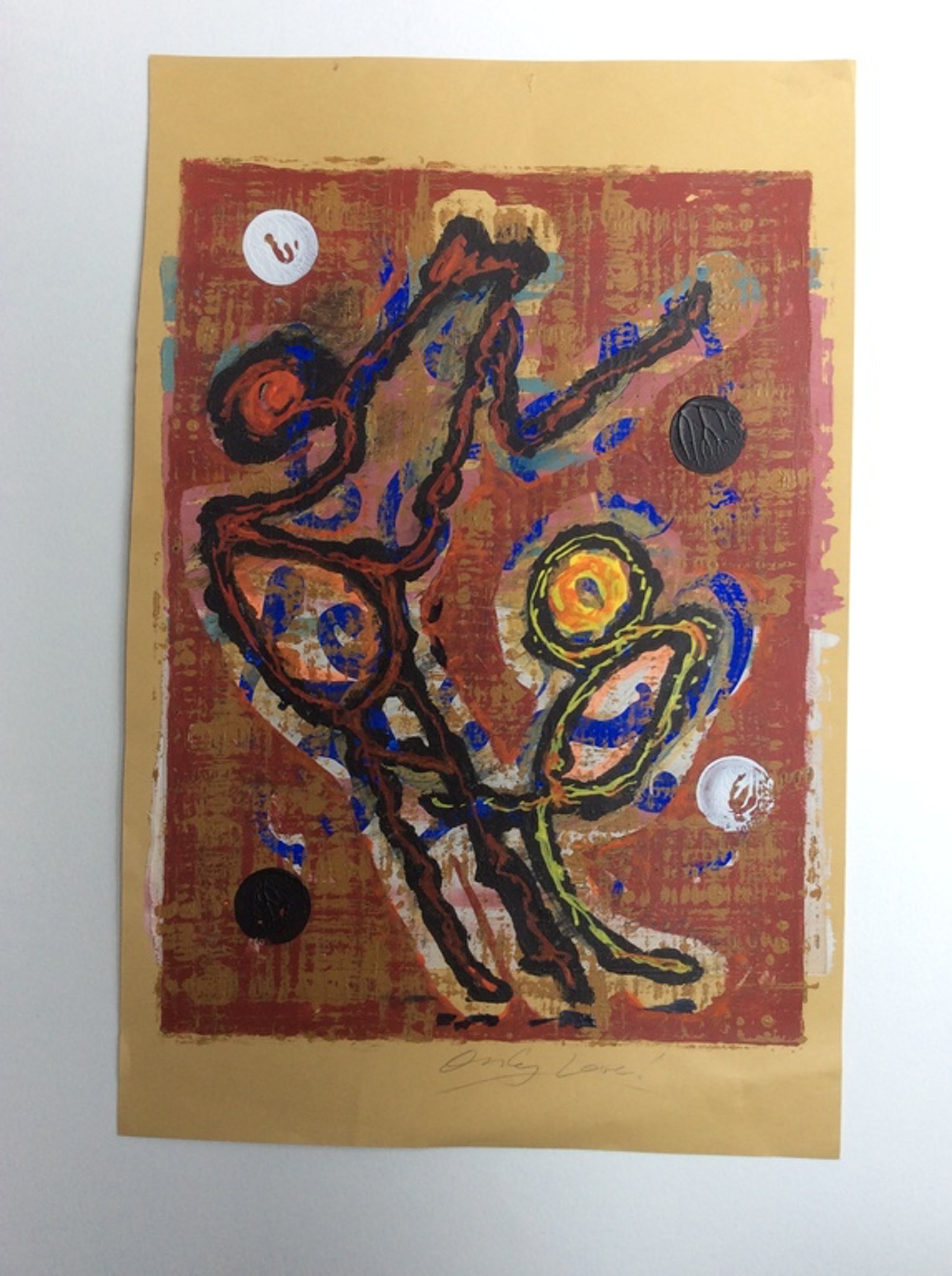 Jack Vissers: Only Love, acryl op papier. Incl. afm 33 x 50 cm. Gesigneerd r.o. plus achterop, 2015