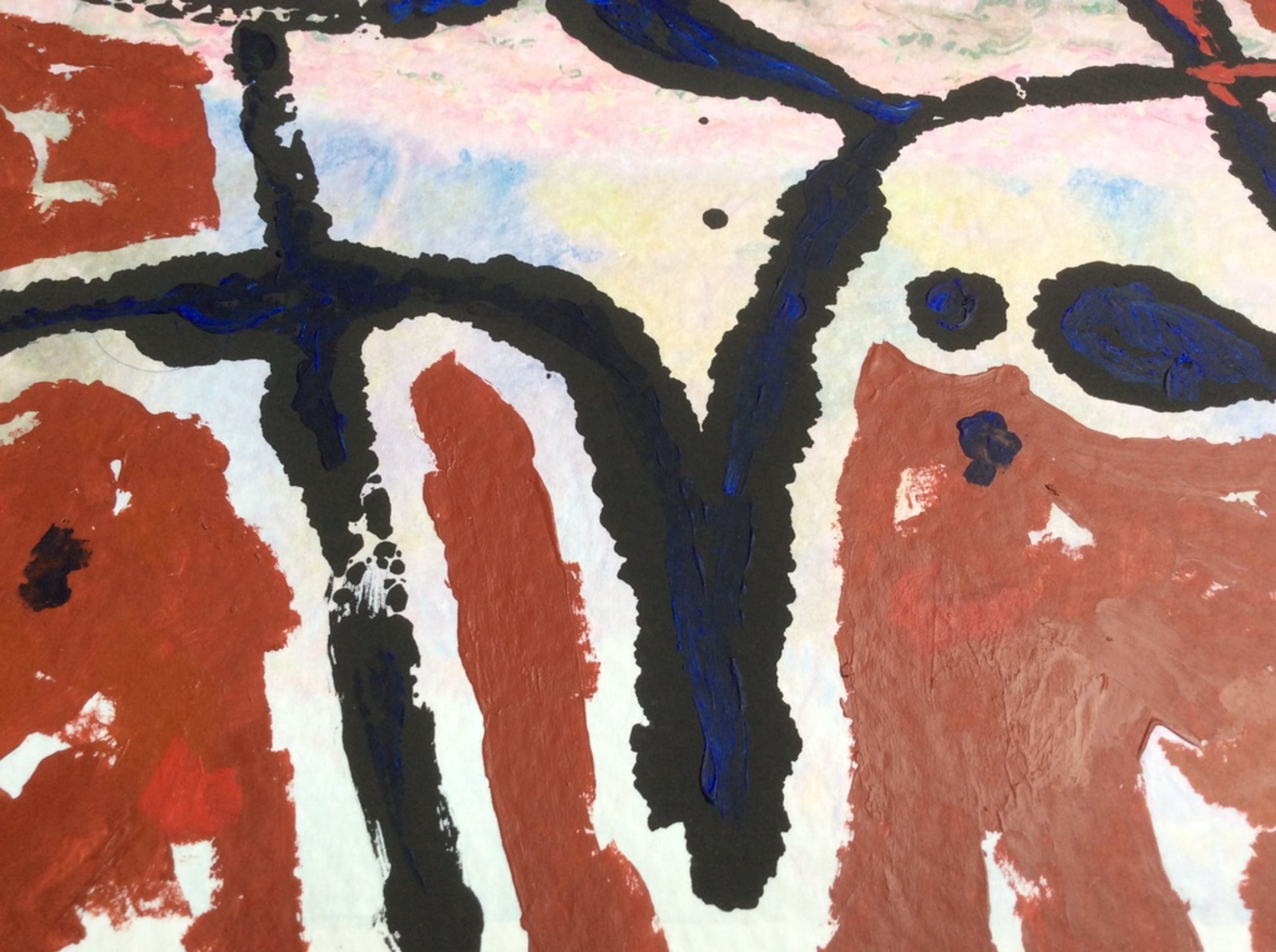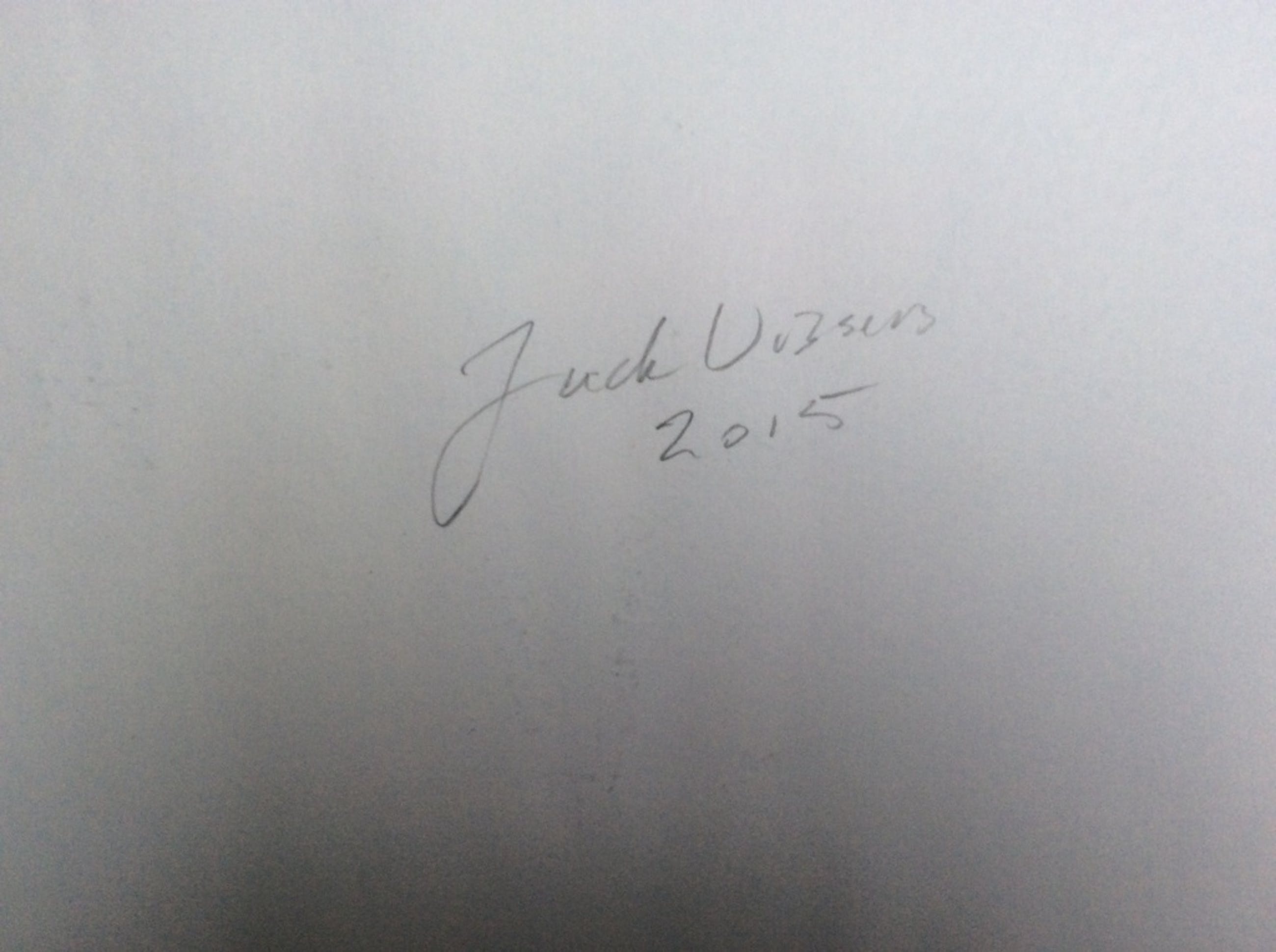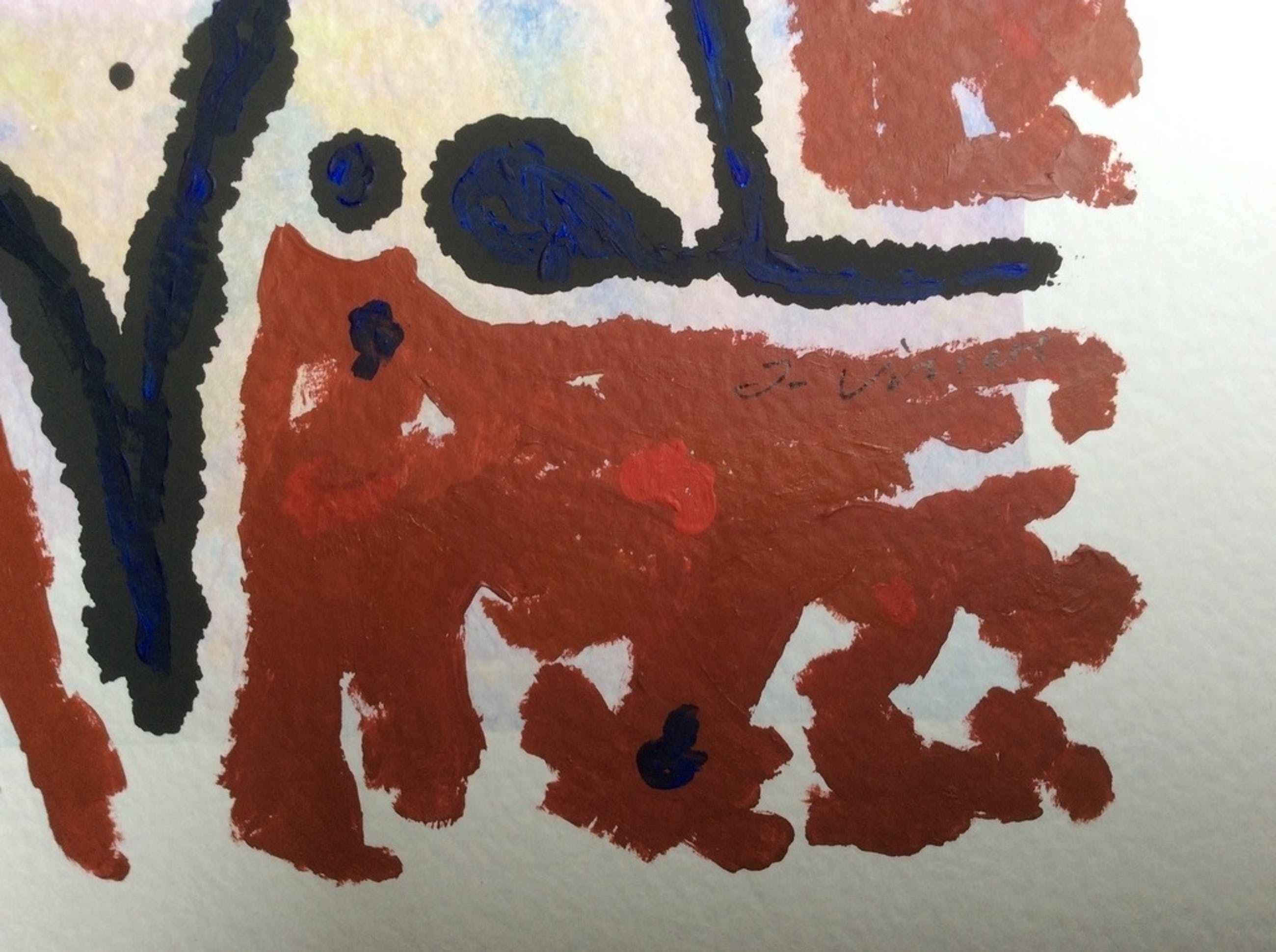 Jack Vissers: abstracte constellatie, acryl op stevig papier. Incl. afm 35 x 47 cm. Gesigneerd r.o. plus achterop, 2015