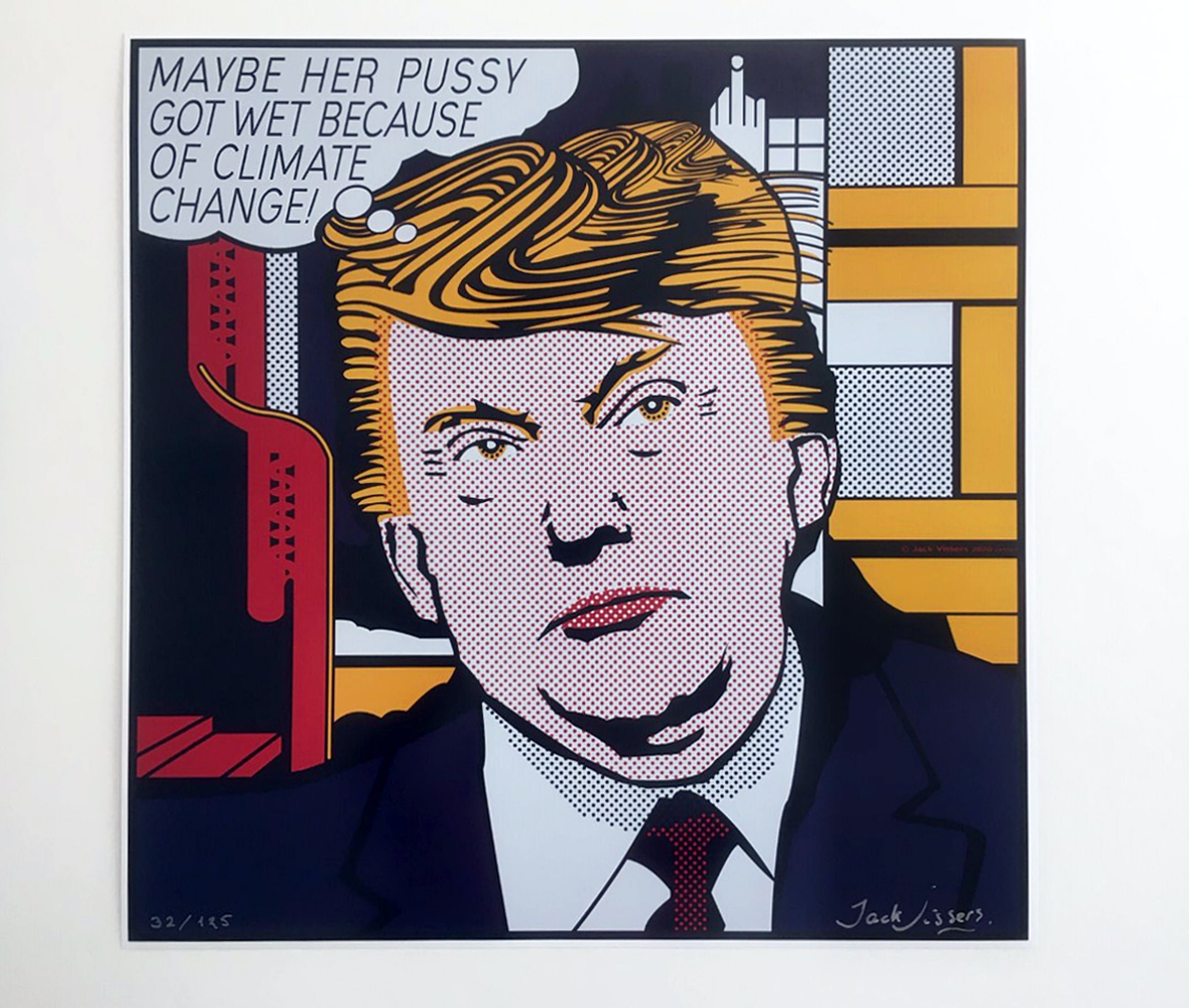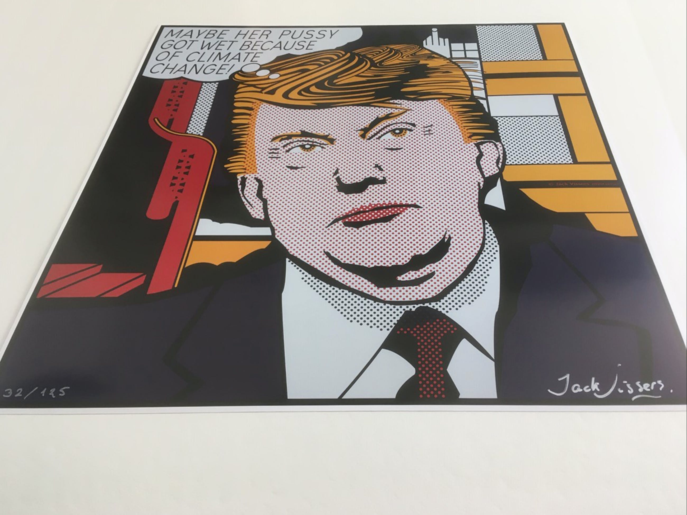 Jack vissers - 'Maybe her pussy got wet because of climate change'. Hand gesigneerde offset lithografie, oplage nr. 32/125, 250 grams stevig papier.