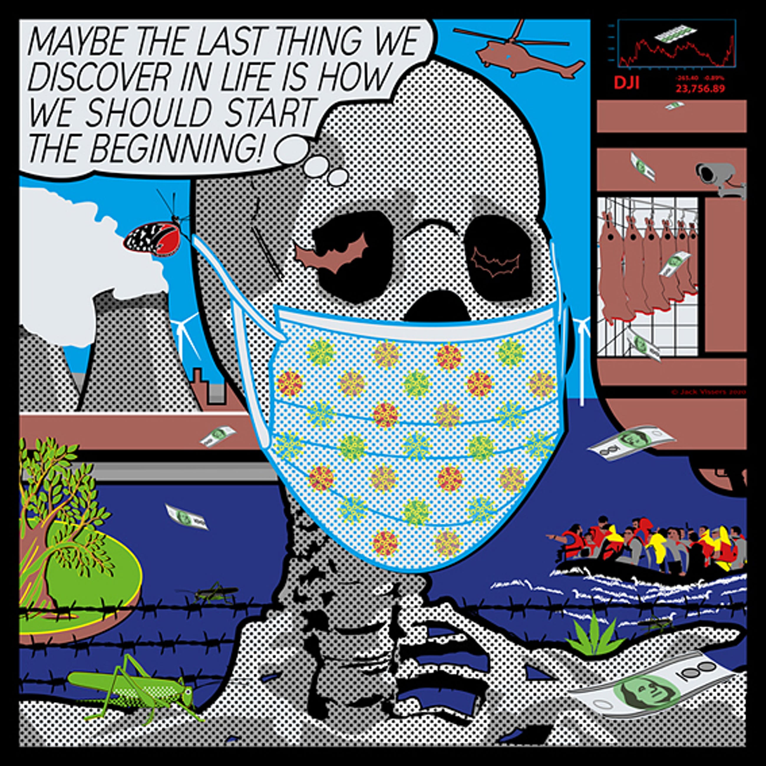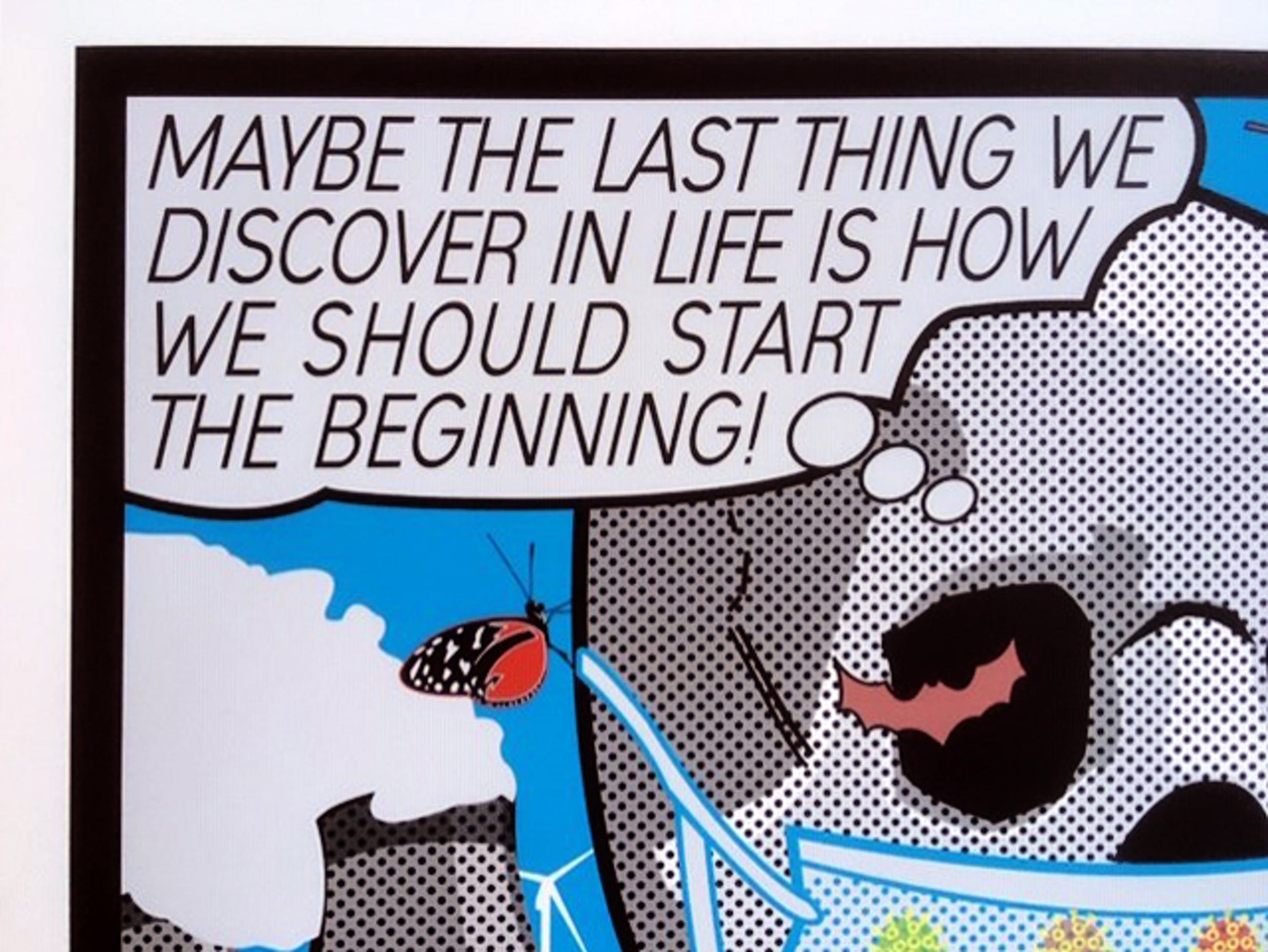 Computerprint van Jack Vissers: Maybe the last thing we discover in life is how we should start the beginning. Hand gesigneerd r.o. plus in de druk. Formaat incl. 59,4 x 84 cm, beeld 44 x 44 cm.